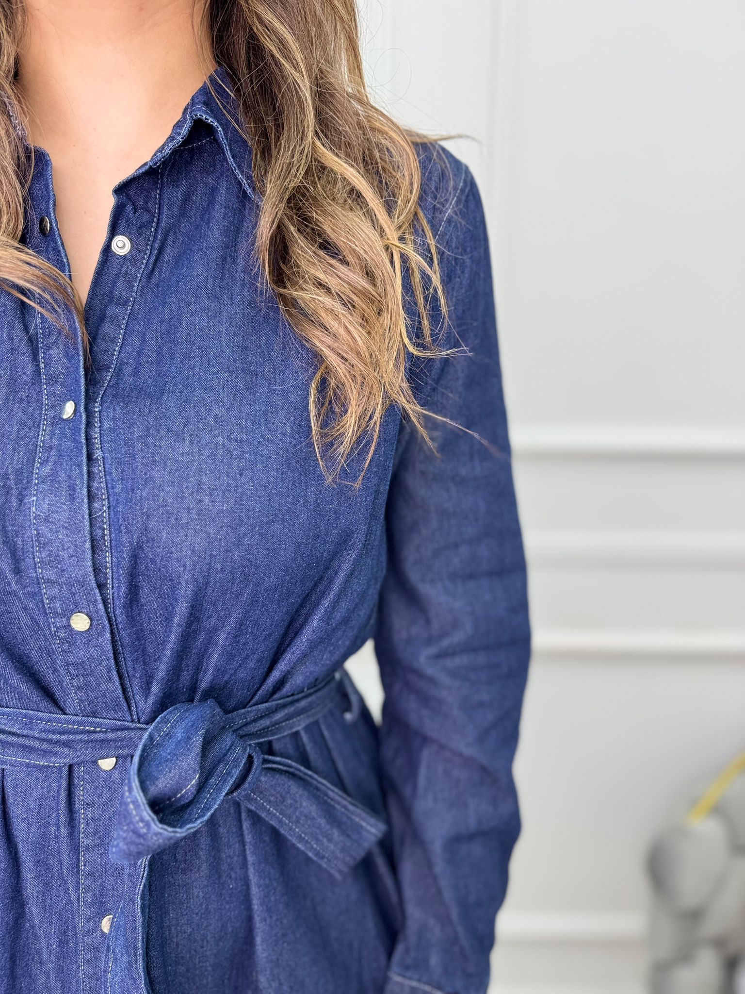 Vestito lungo in lycra con collo effetto camicia