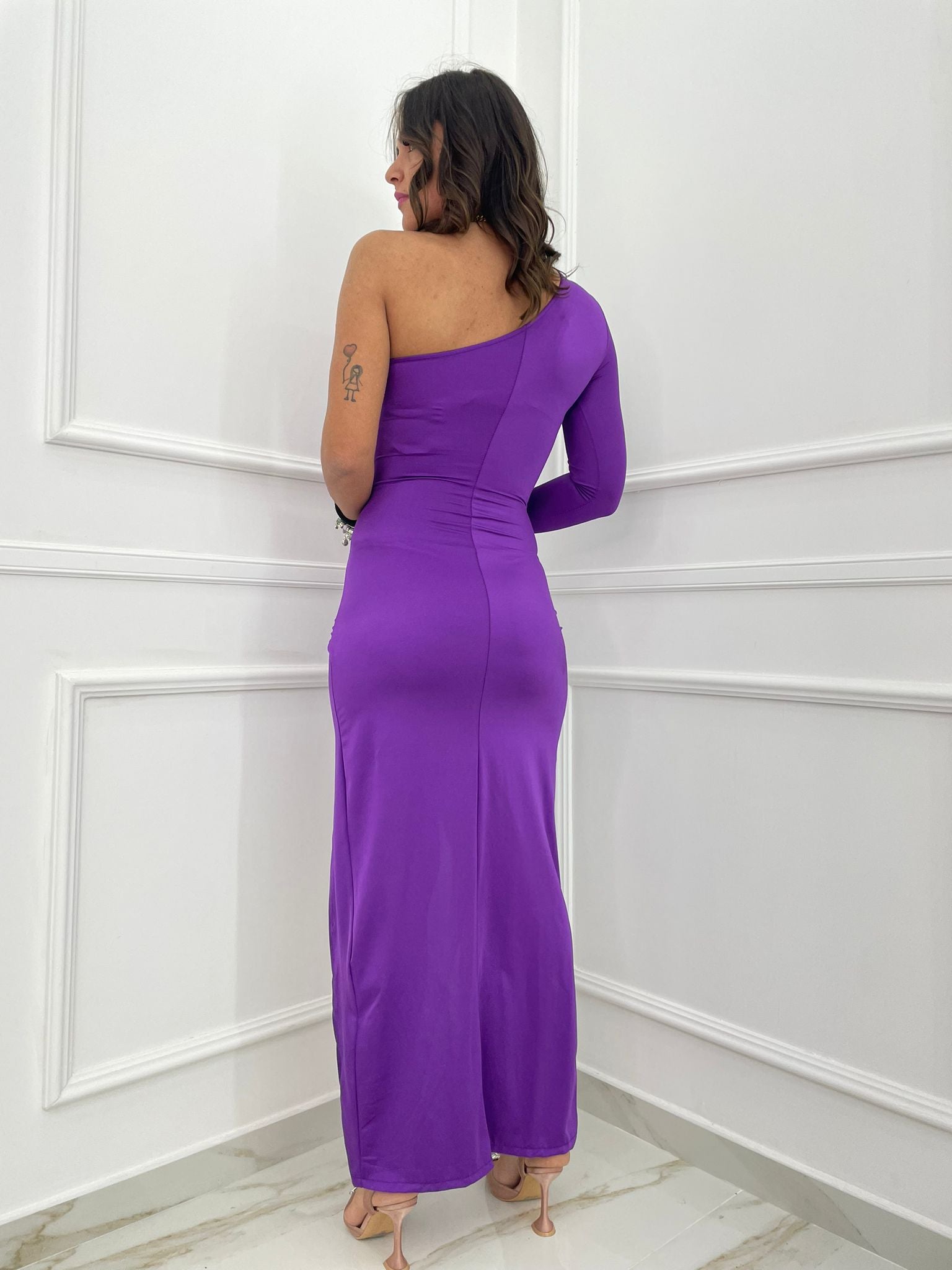 Abito lungo mono spalla con spacco laterale