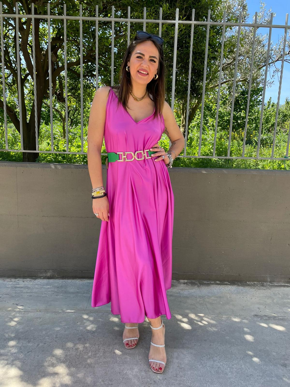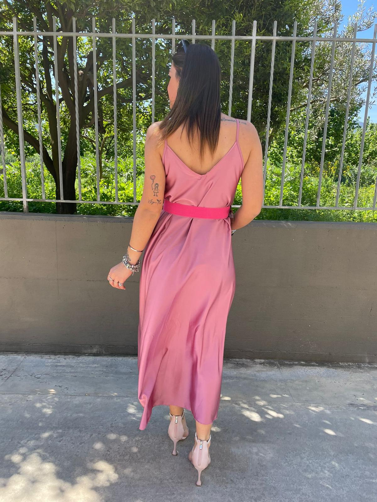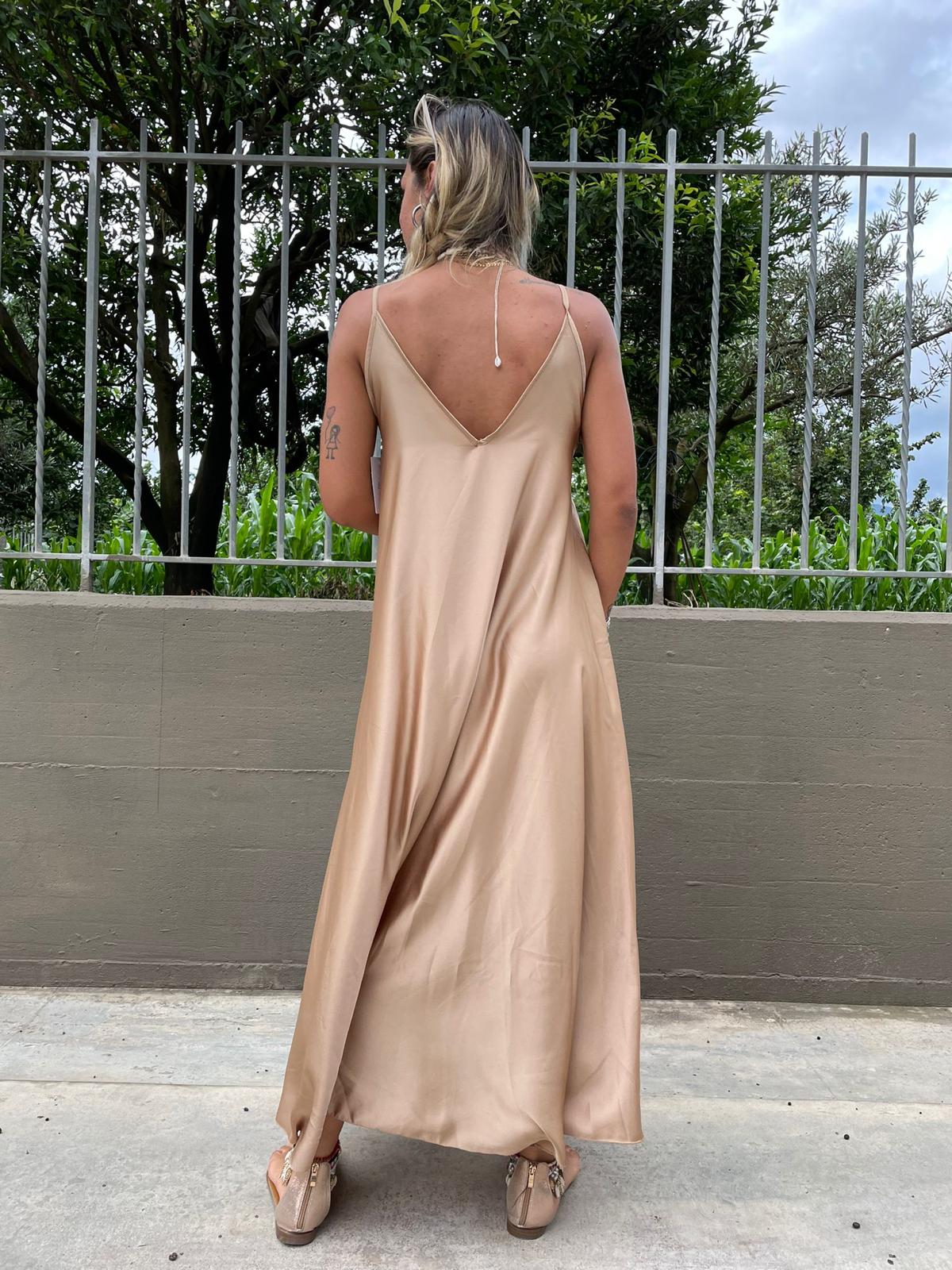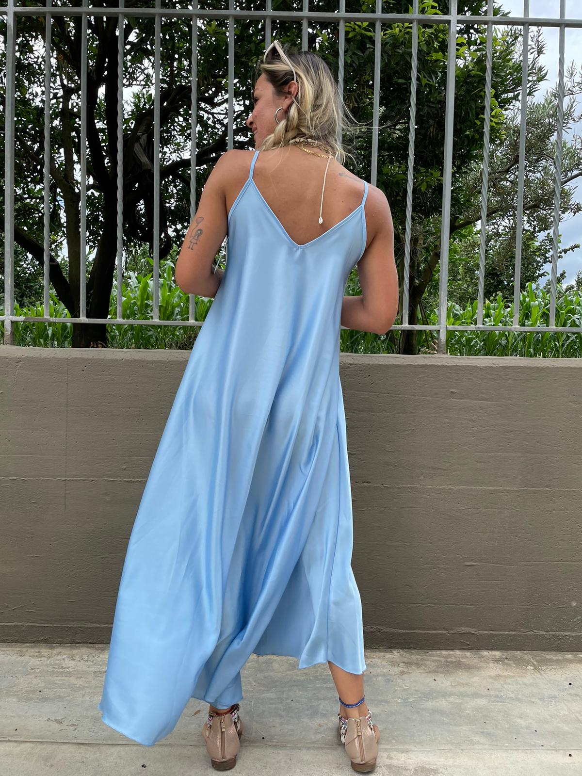 vestito lungo, effetto seta, modello semplice, scollato dietro, disponibile in diversi colori, taglia unica, veste tranquillamente fino ad unta taglia "L", la modella è alta 1.79
