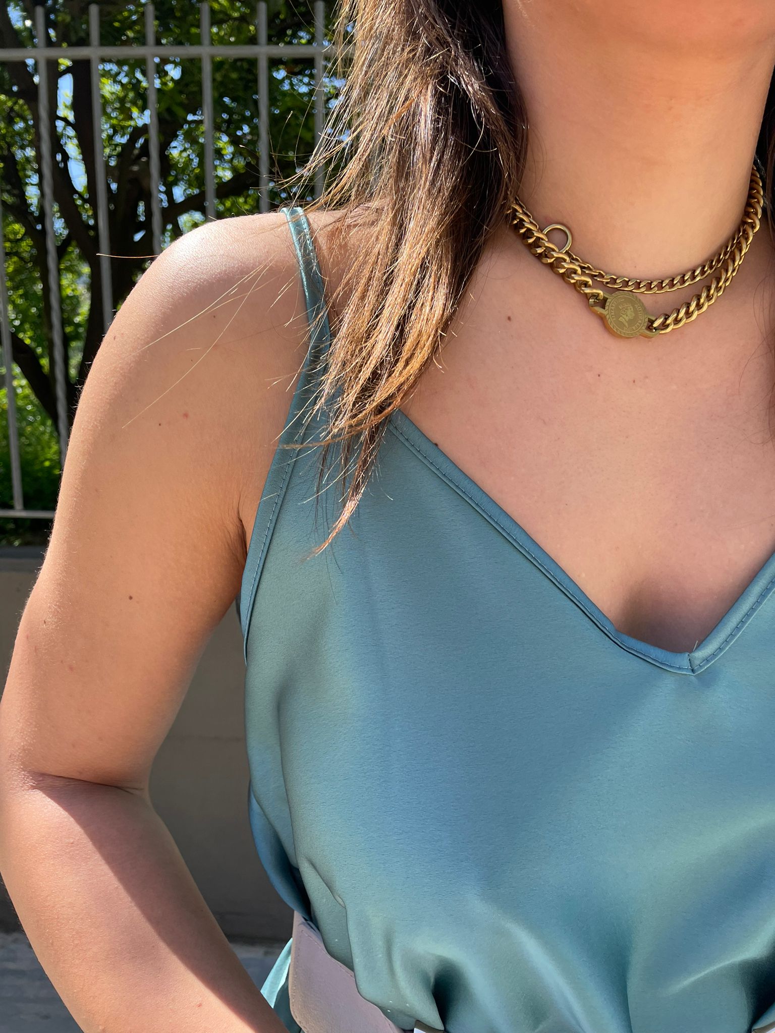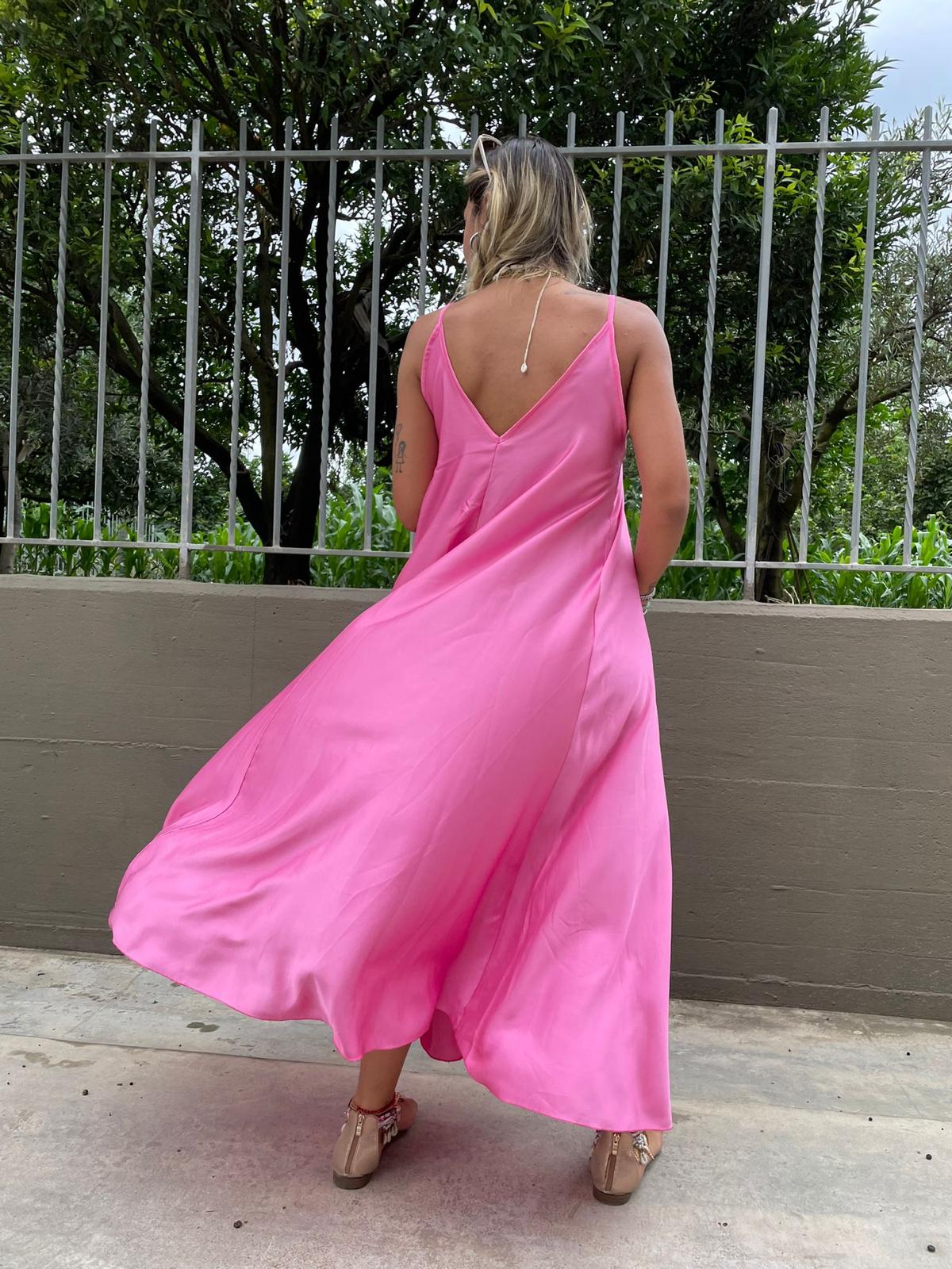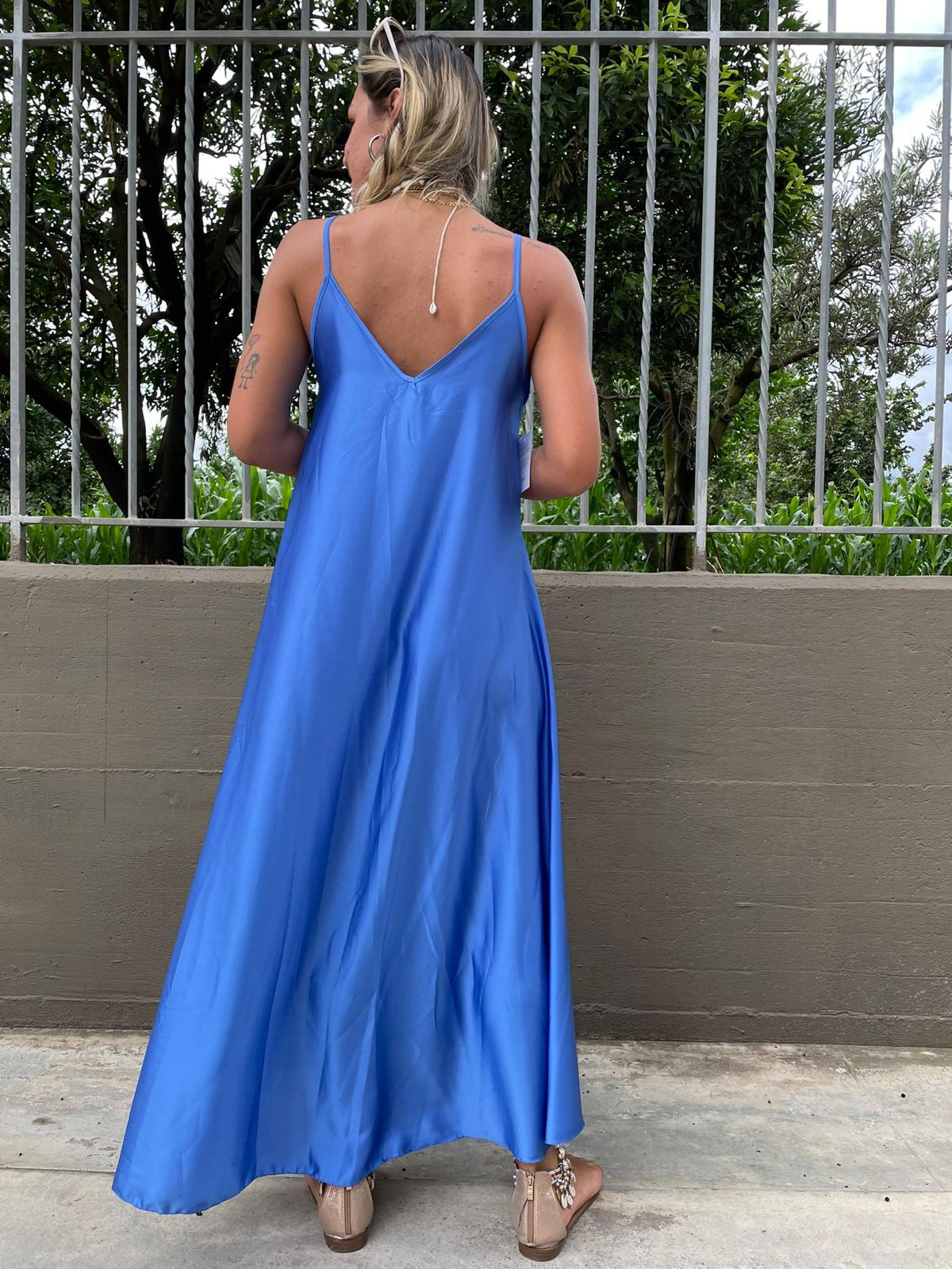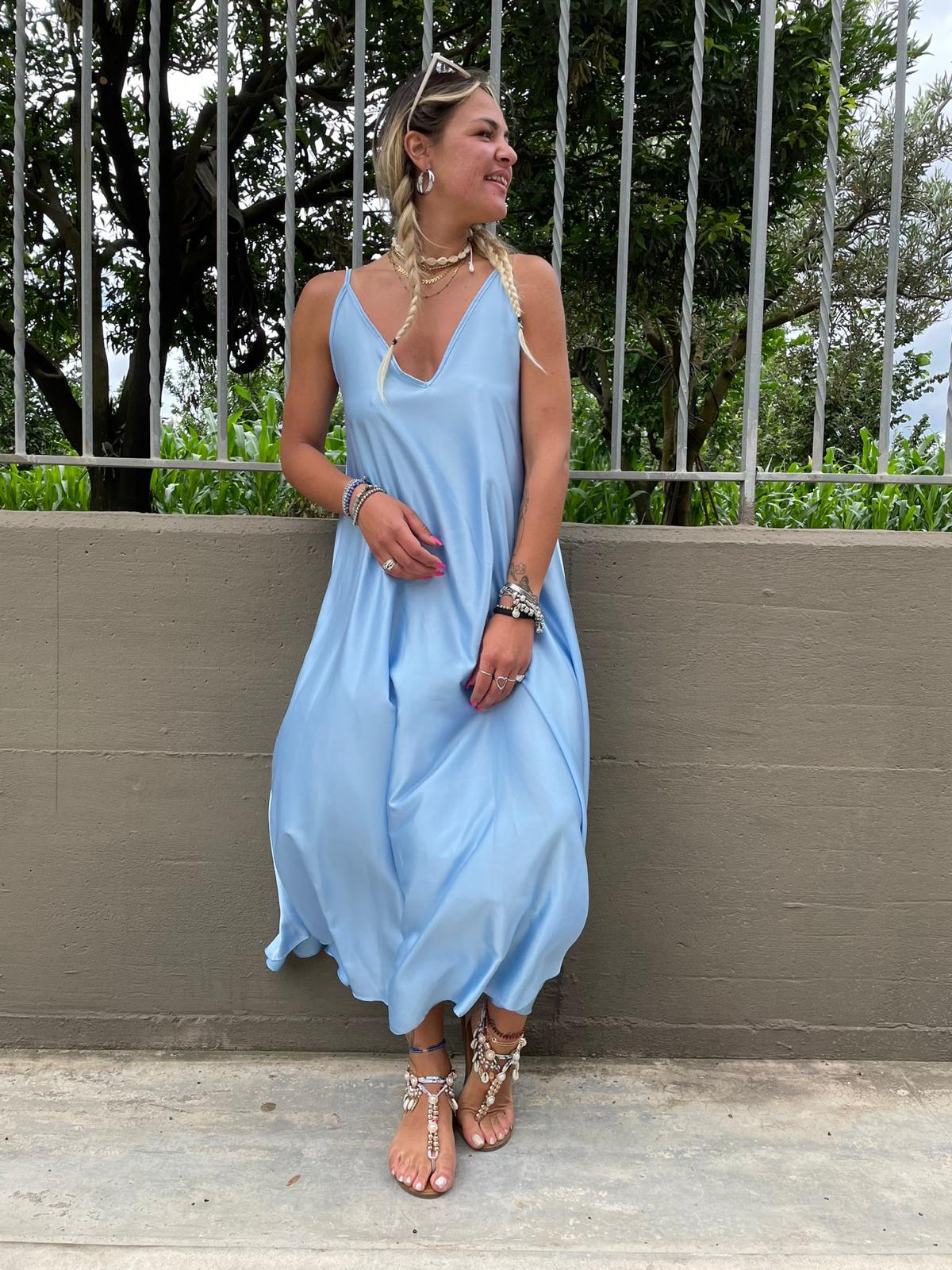 vestito lungo, effetto seta, modello semplice, scollato dietro, disponibile in diversi colori, taglia unica, veste tranquillamente fino ad unta taglia "L", la modella è alta 1.79