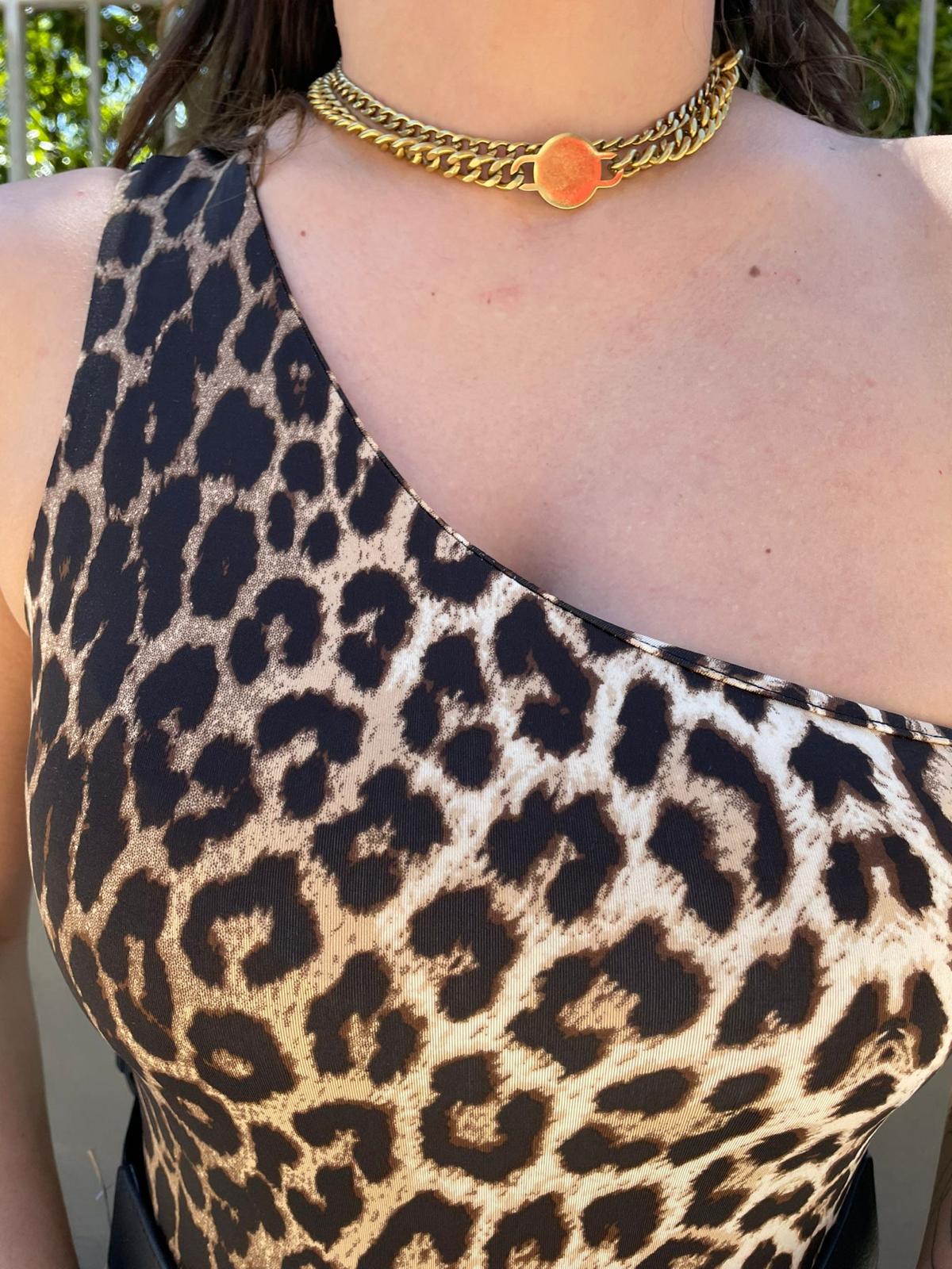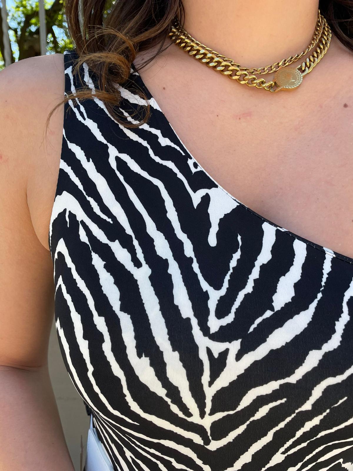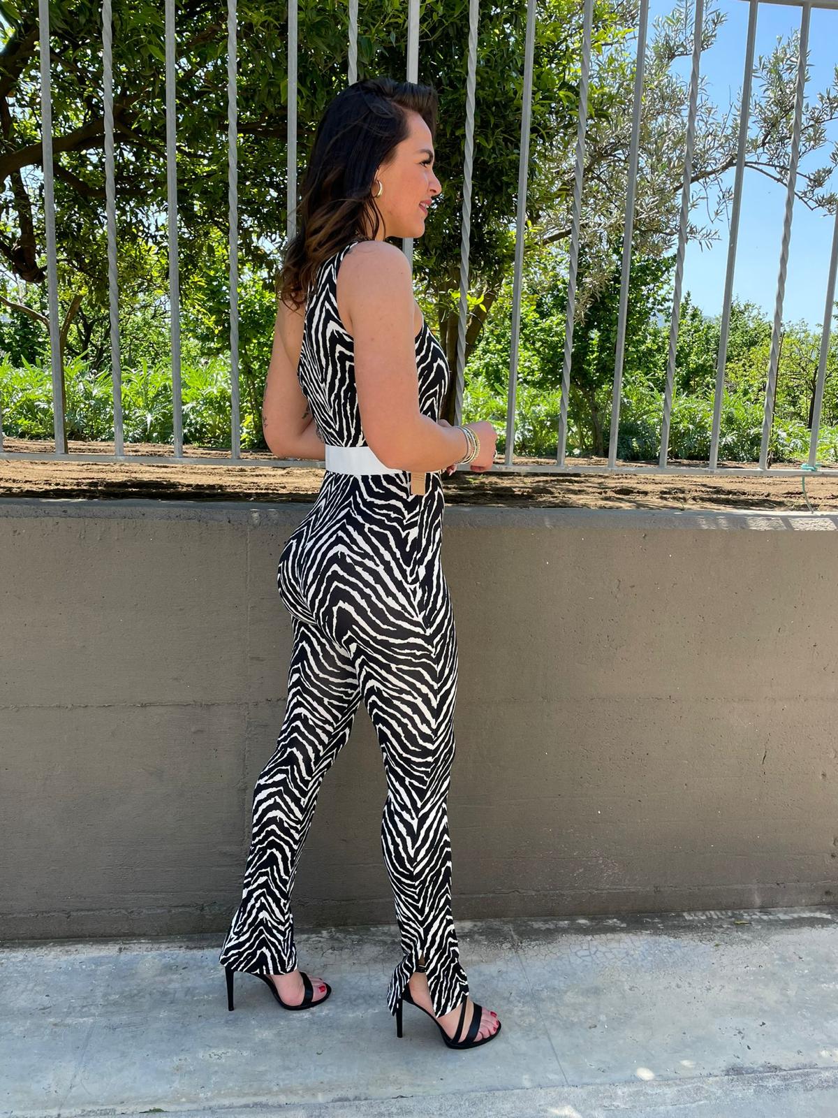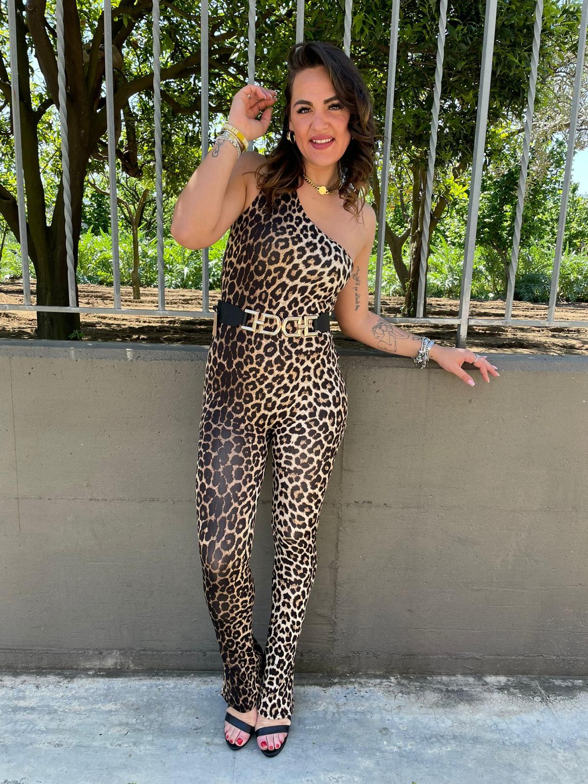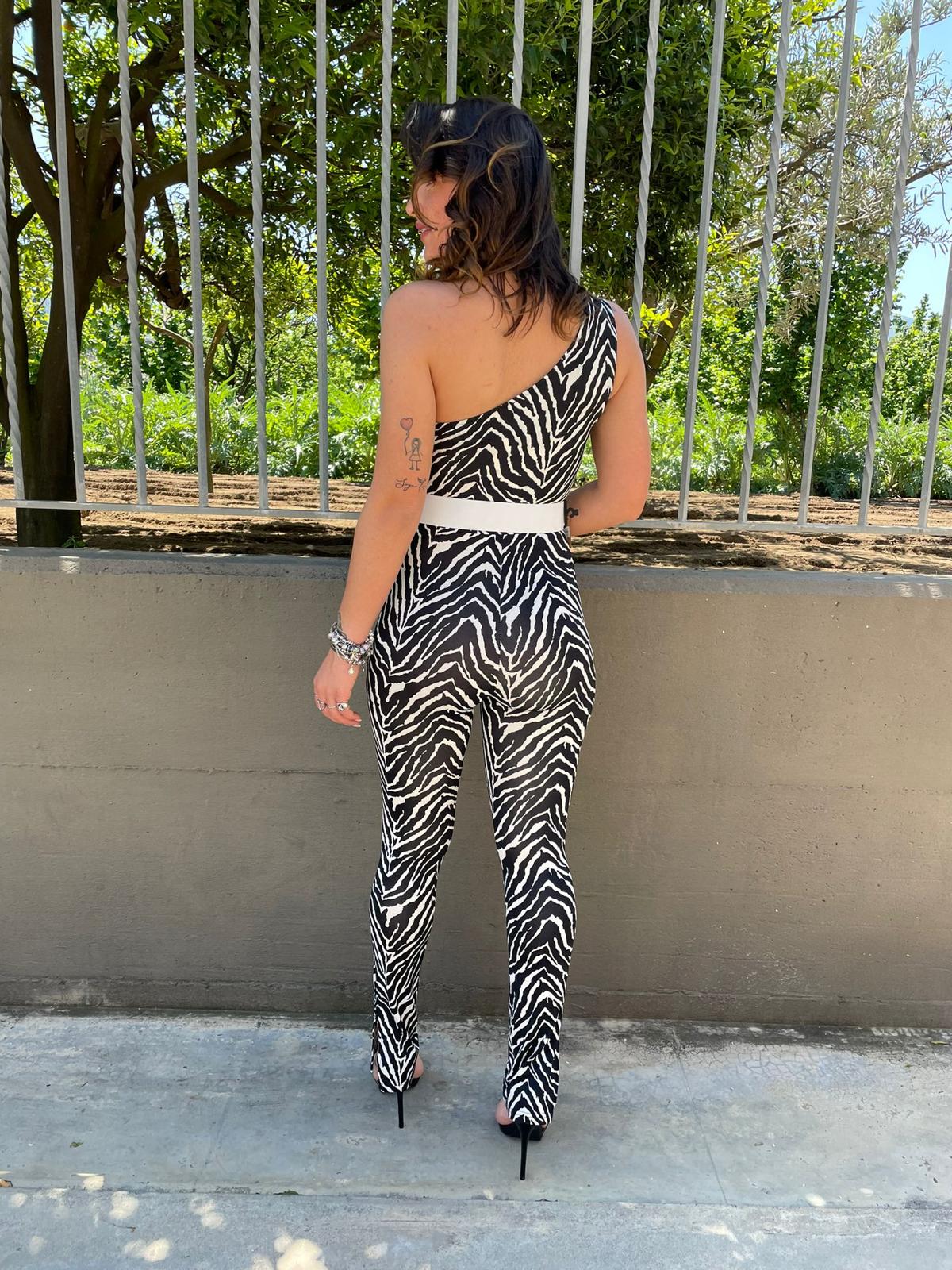 Tuta intera animalier mono spalla con spacchetti alle caviglie