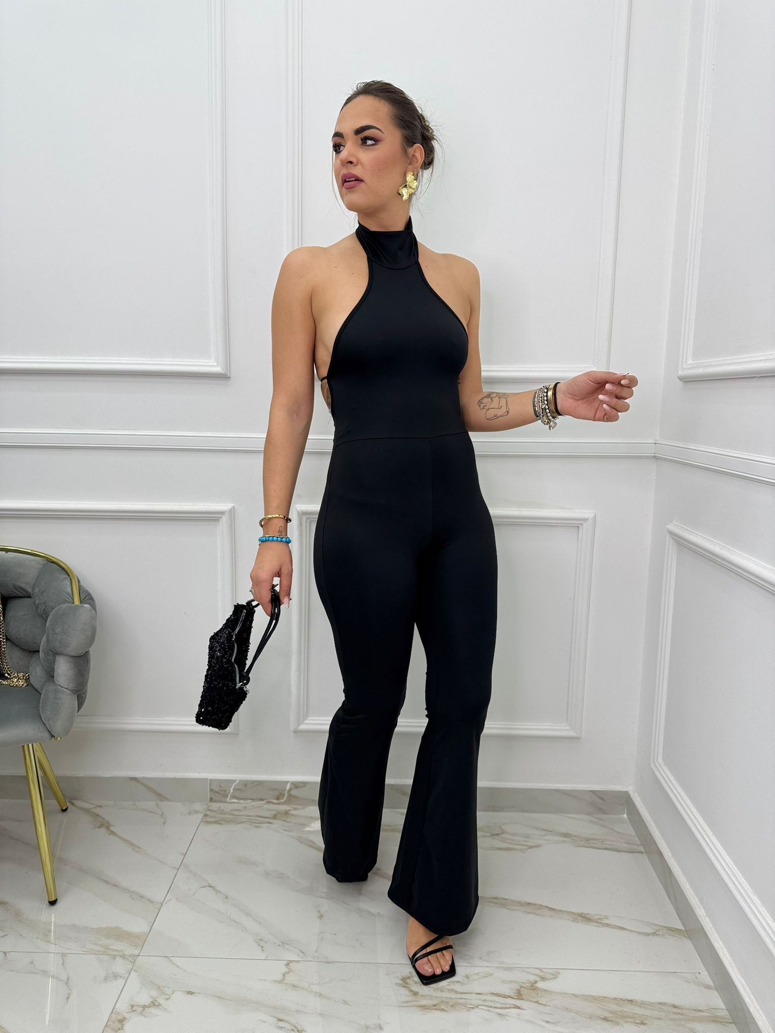 Tuta intera con scollo halter e schiena scoperta