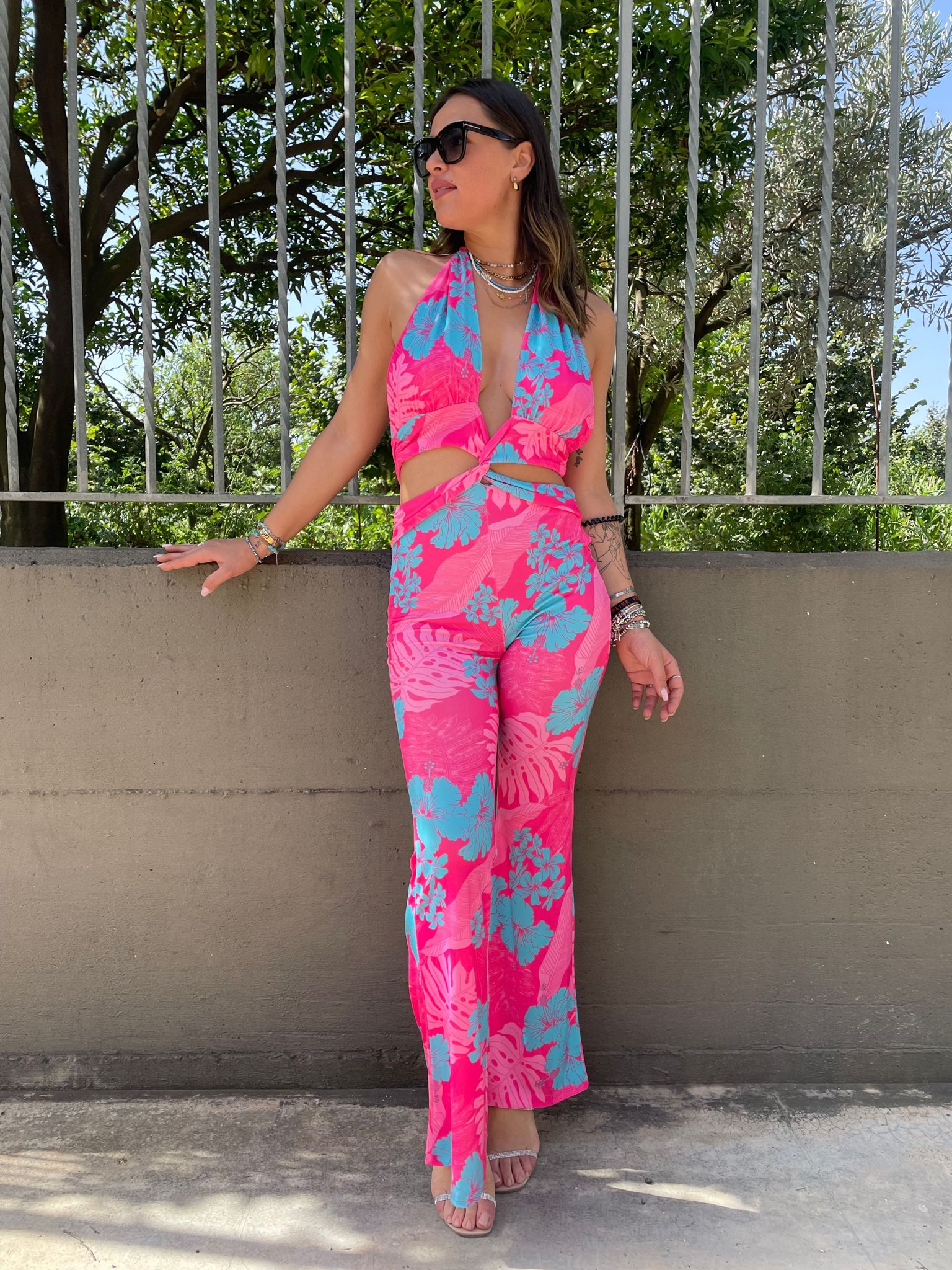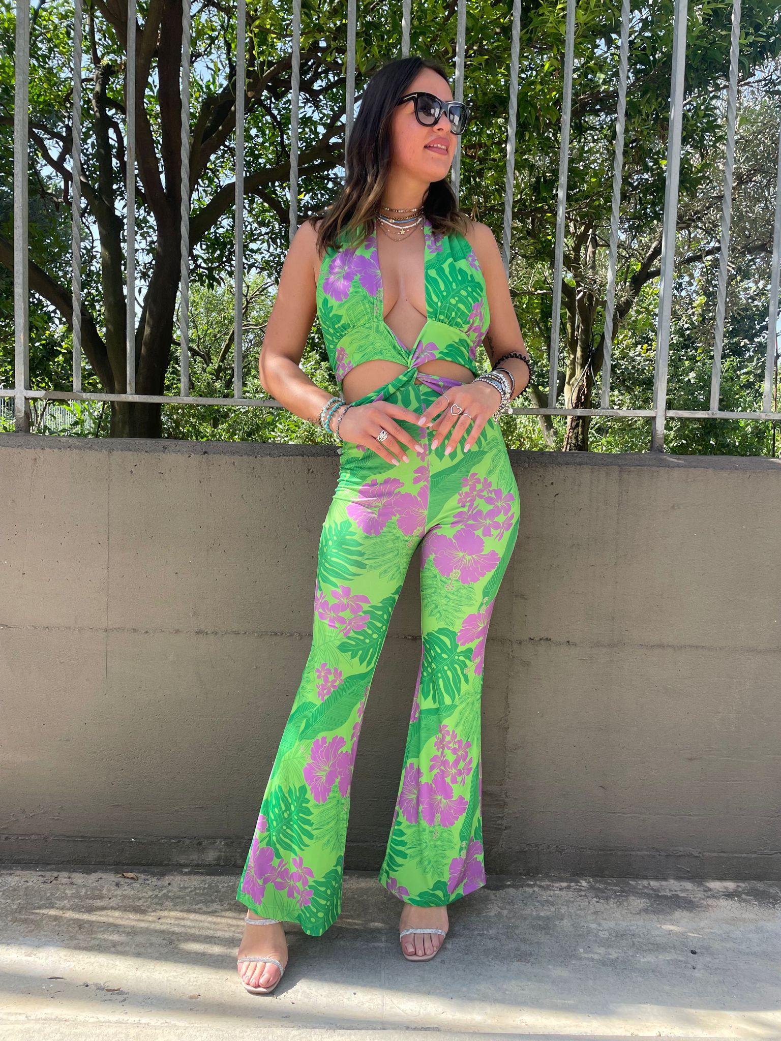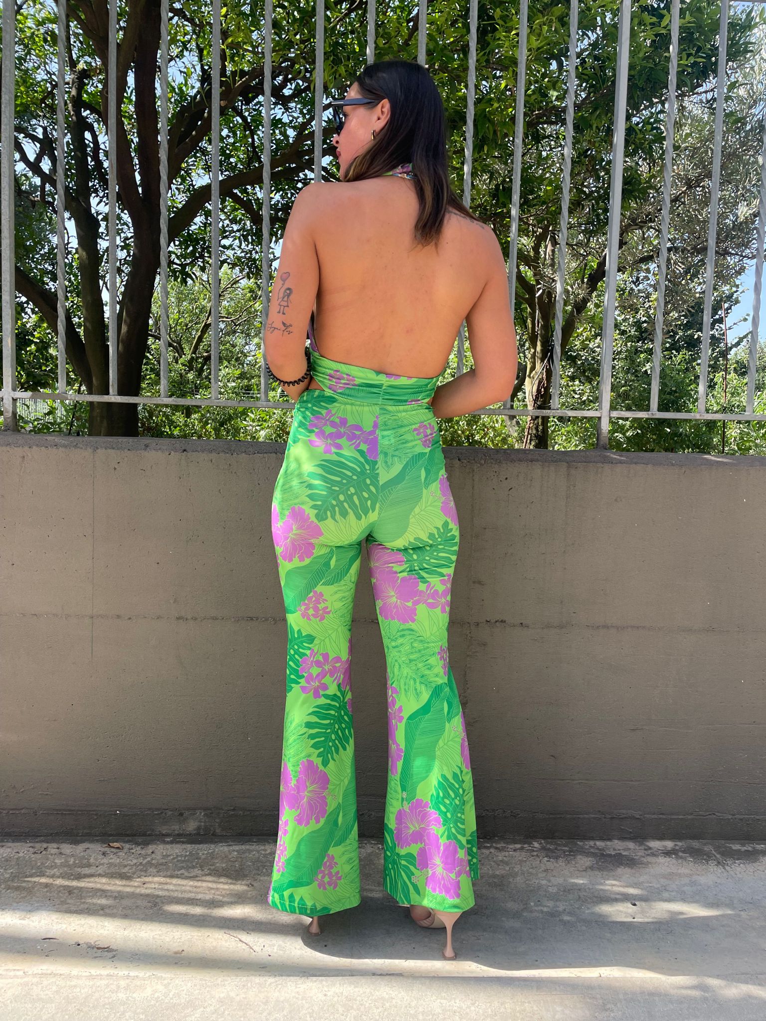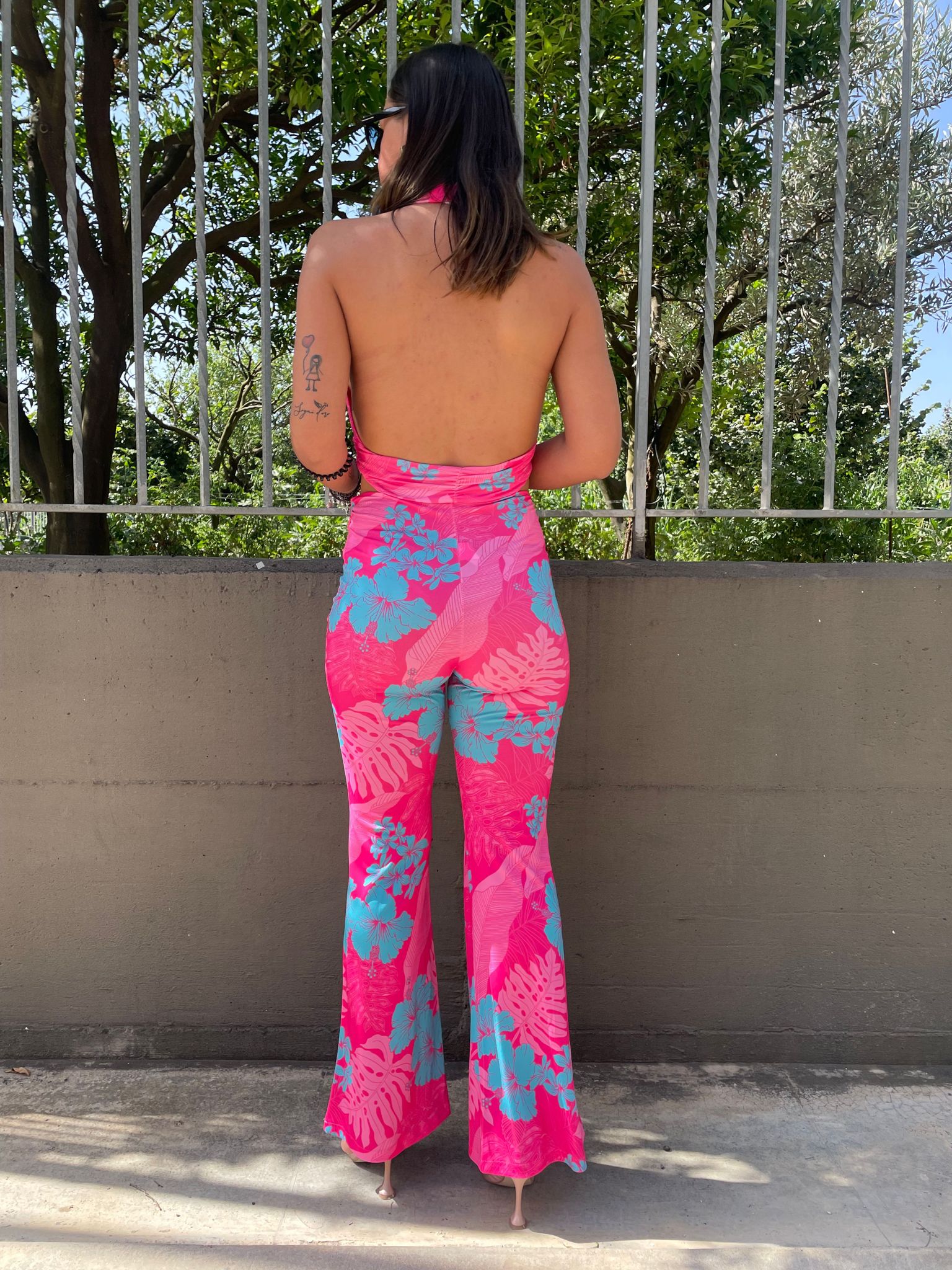 Tuta intera floreale cut-out con schiena scoperta