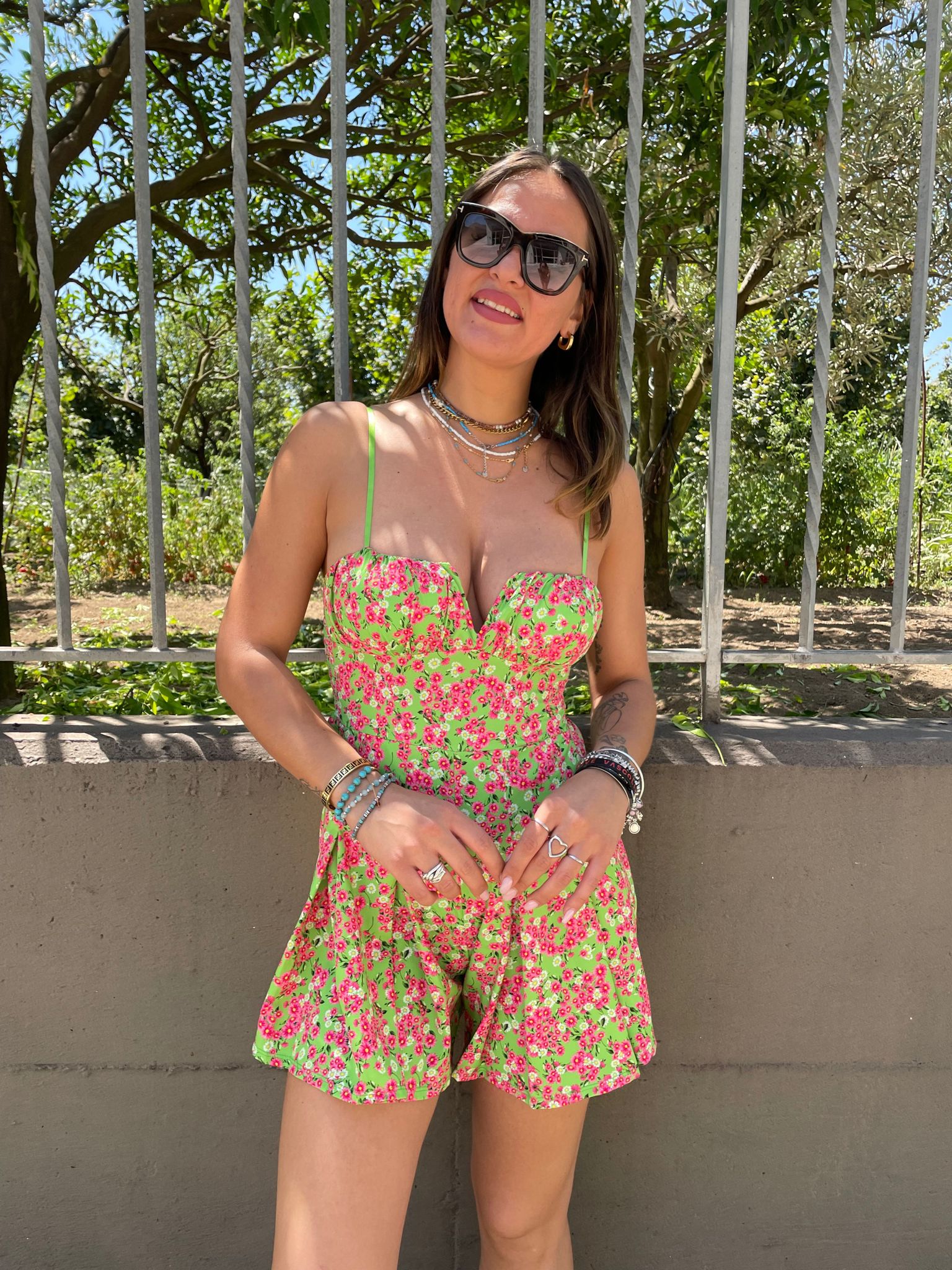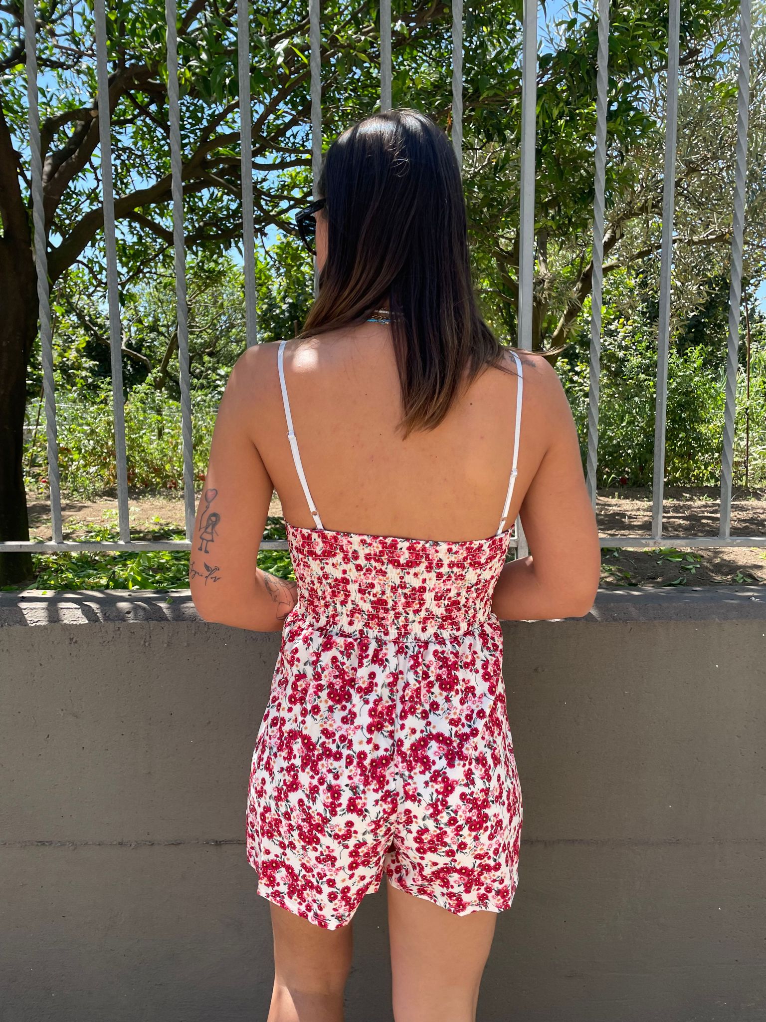 Tutina a fiori con scollo strutturato