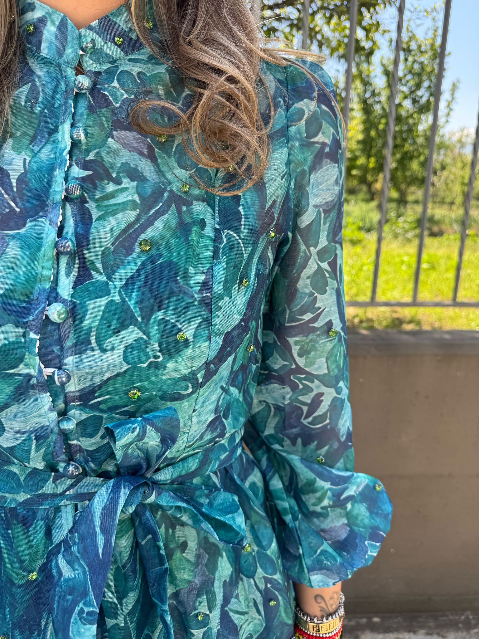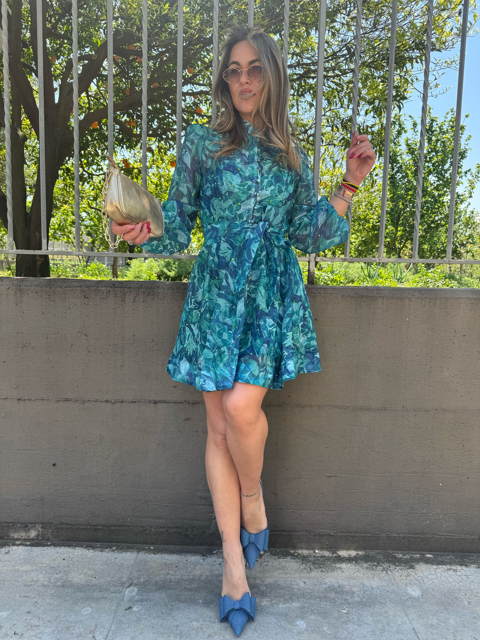 Vestitino a fantasia con bottoncini e maniche a sbuffo