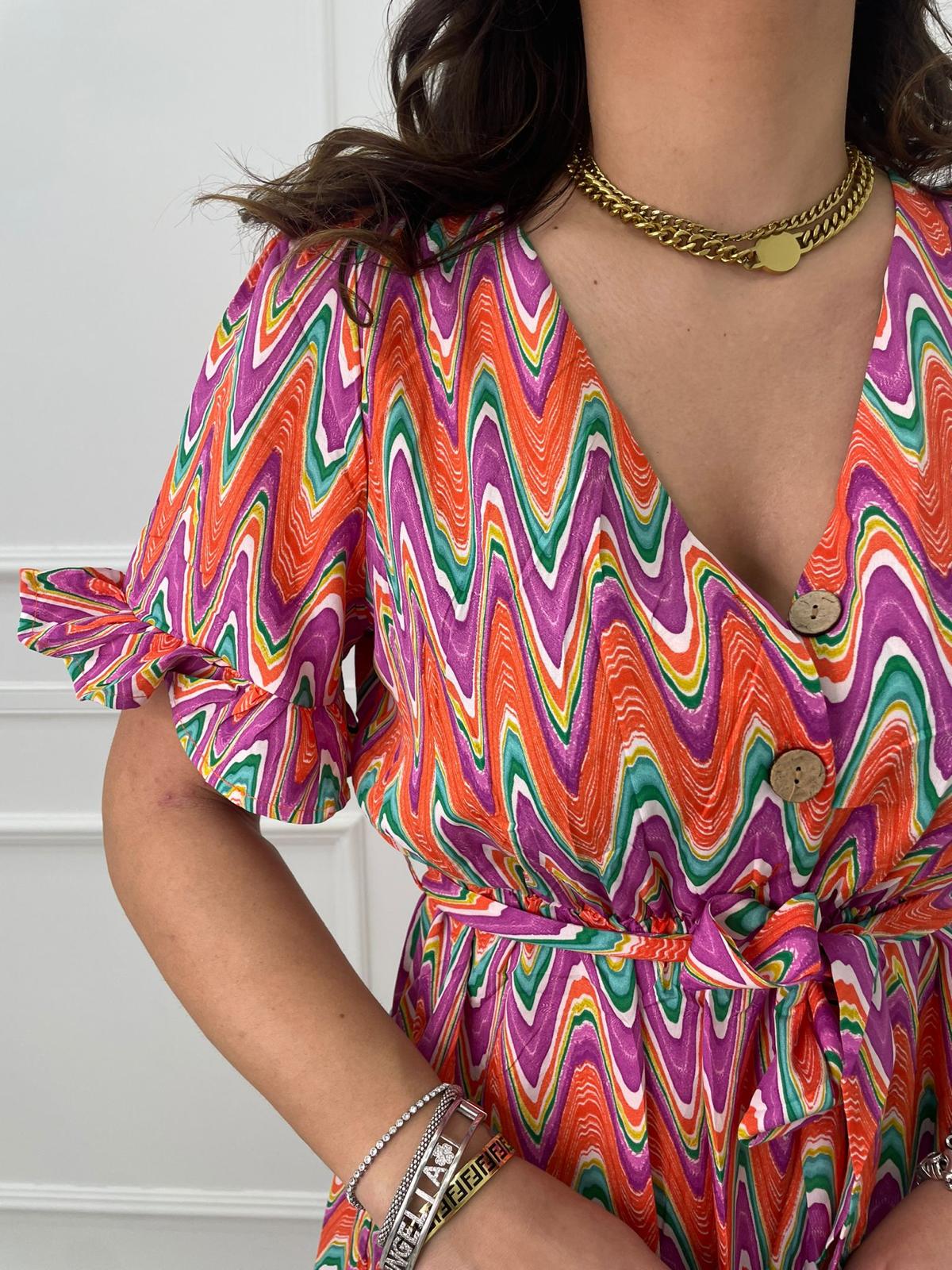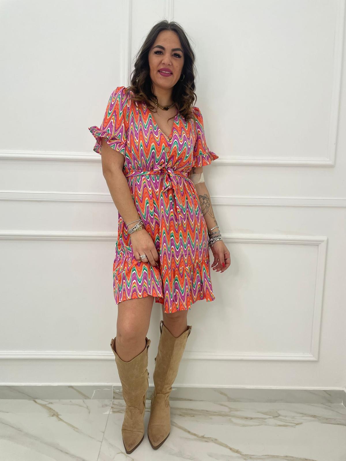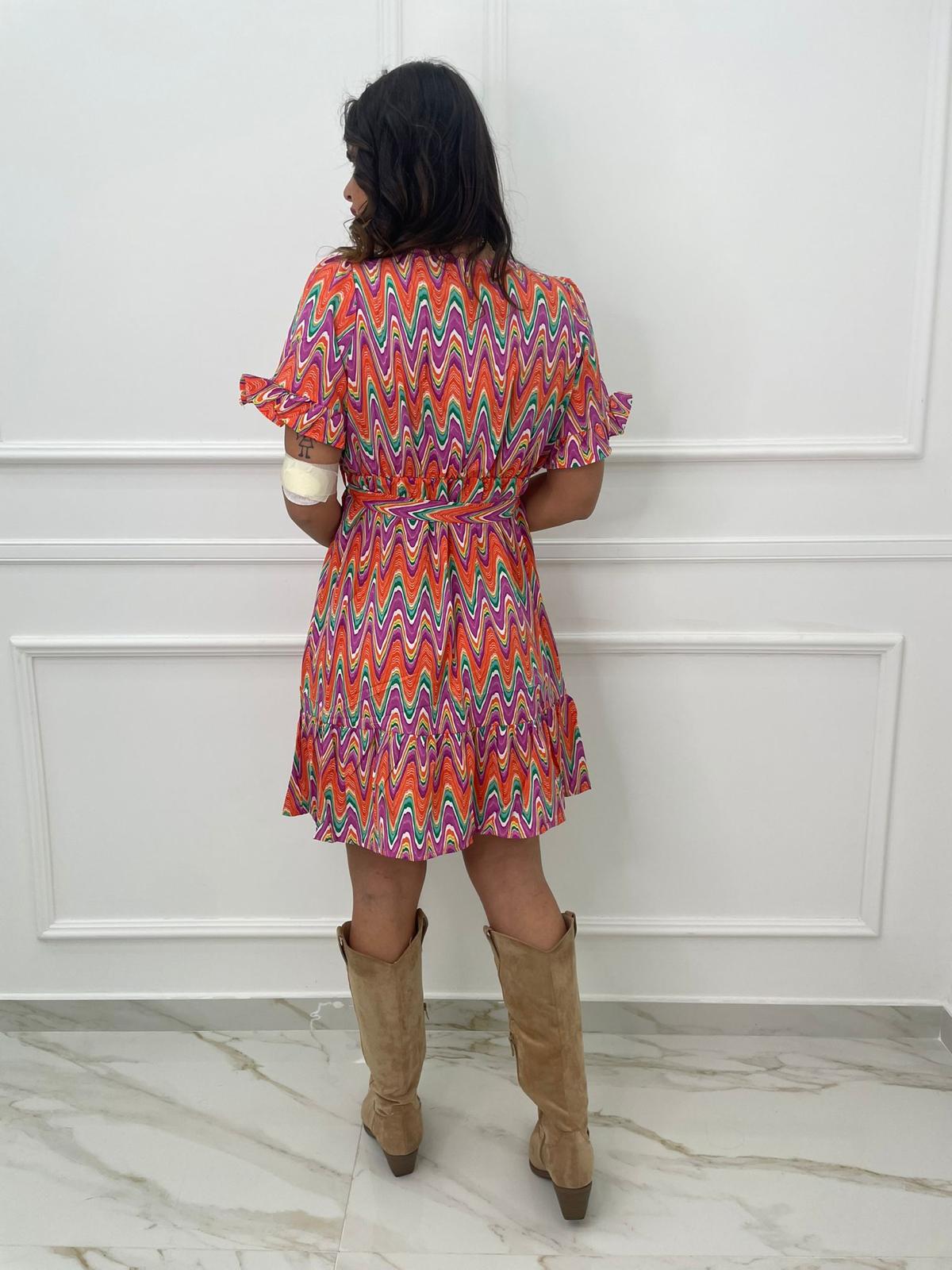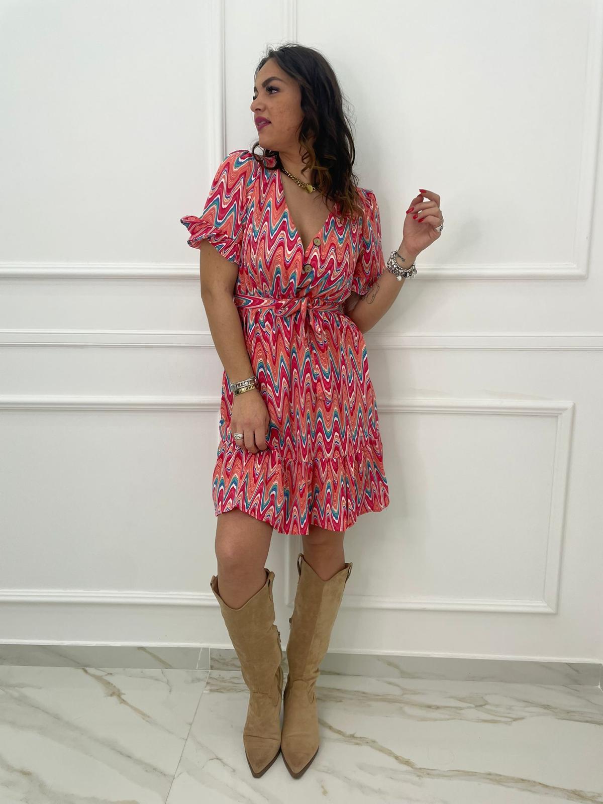 Vestitino a fantasia astratta con bottoncini