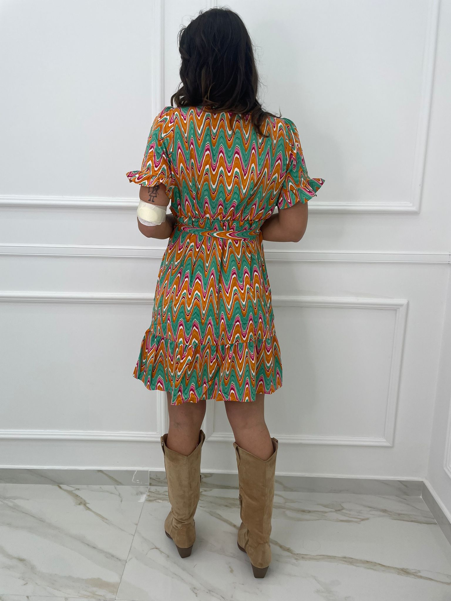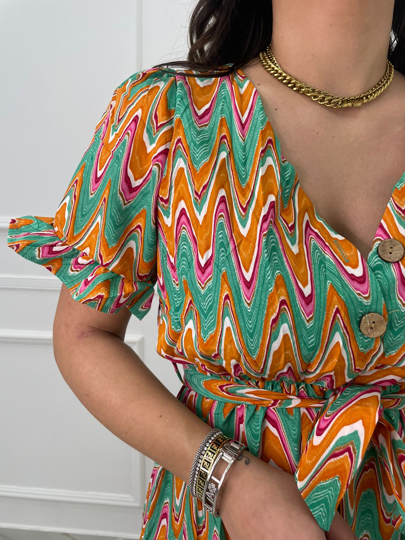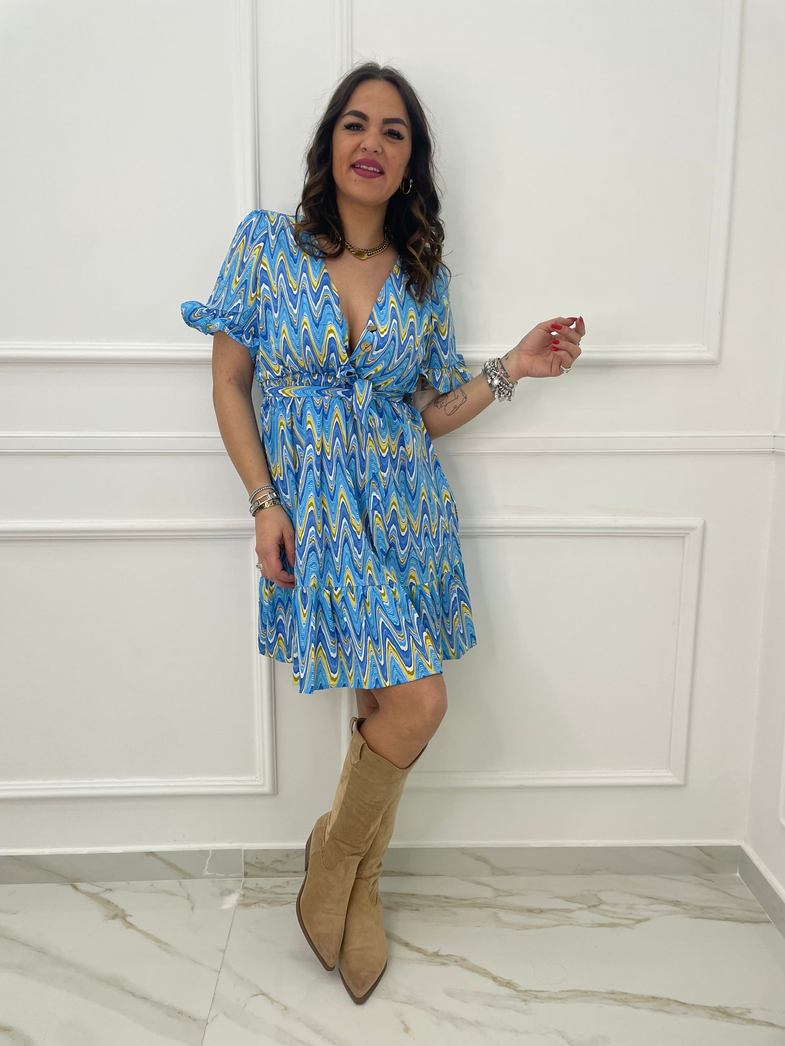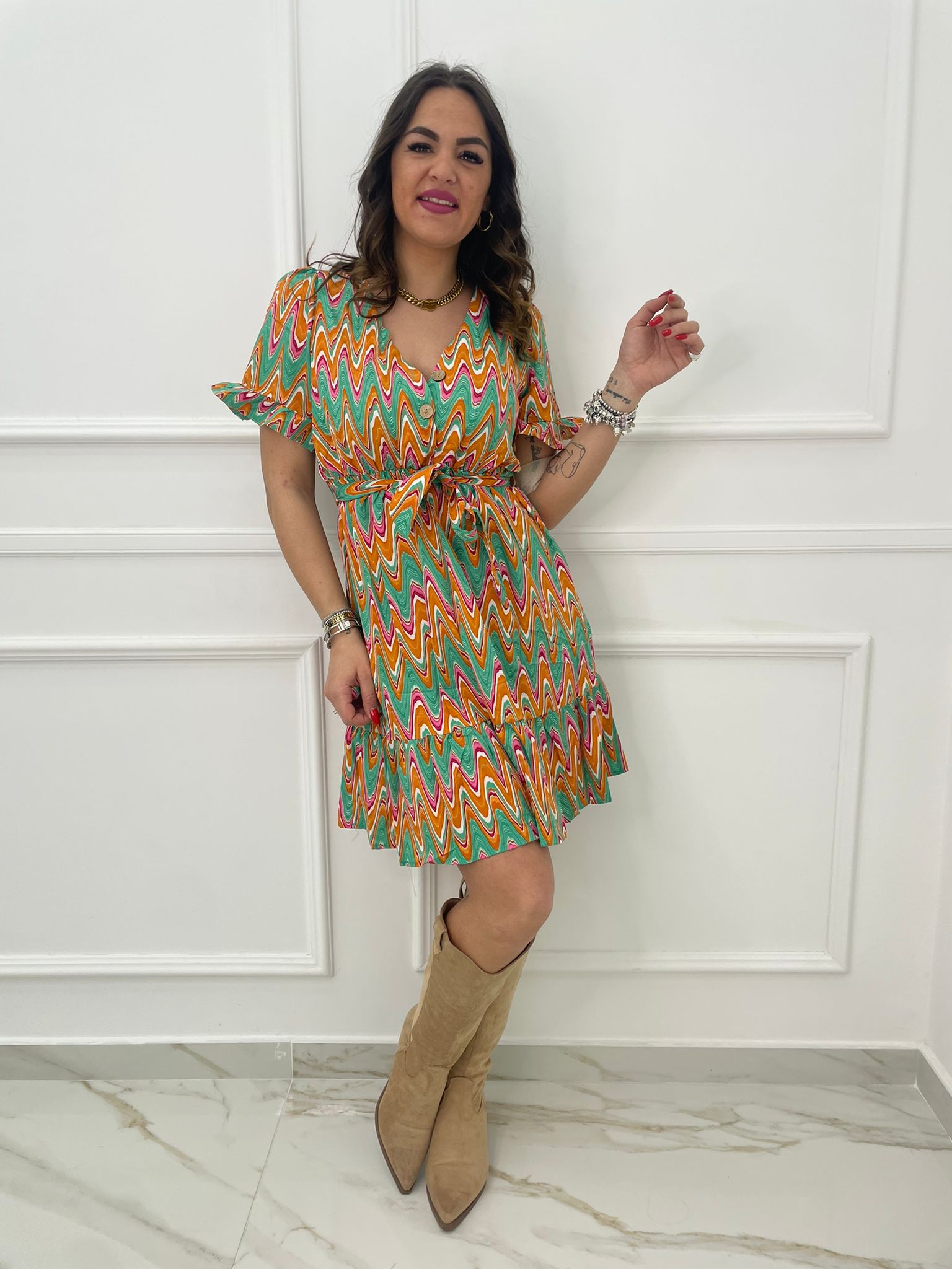 Vestitino a fantasia astratta con bottoncini