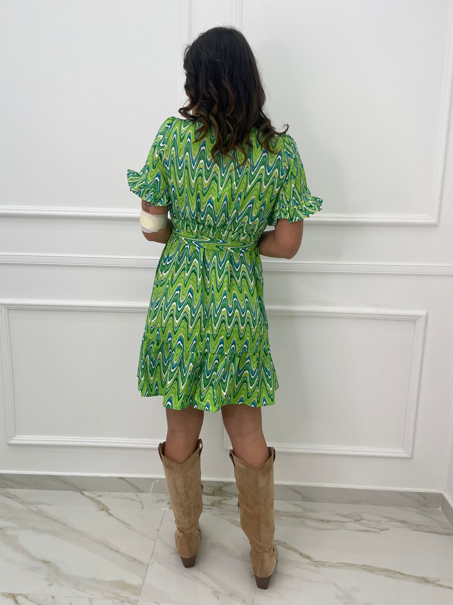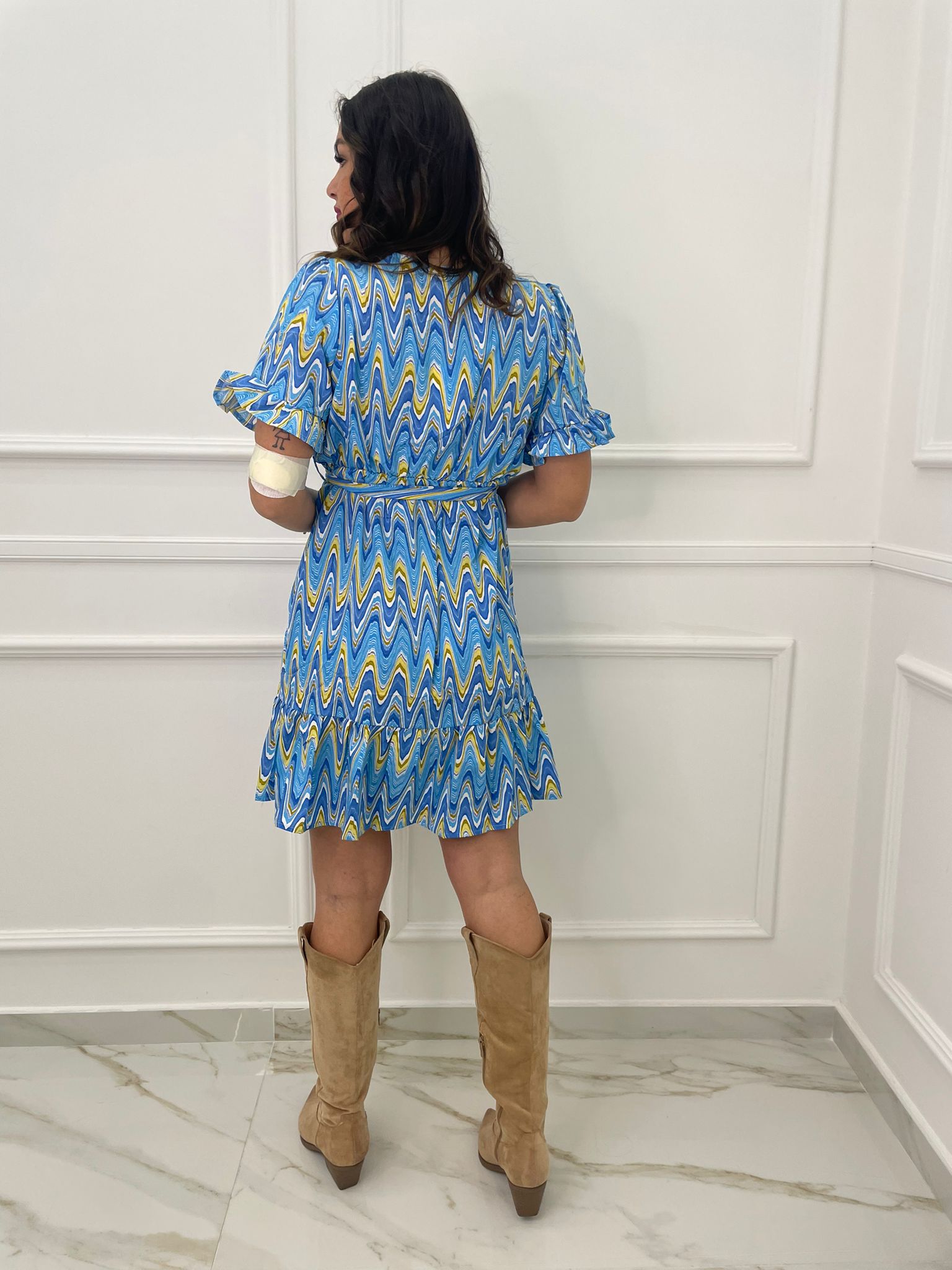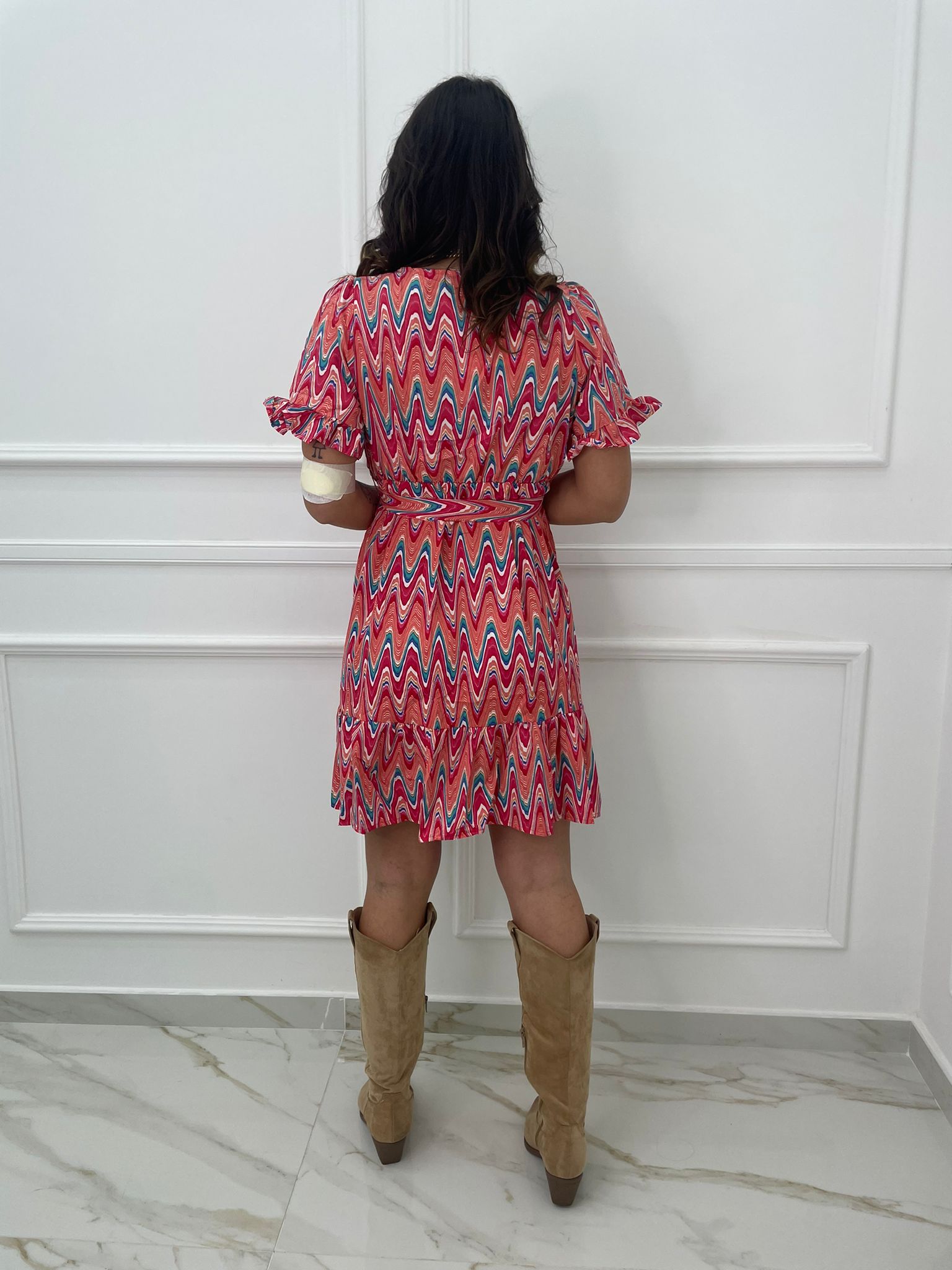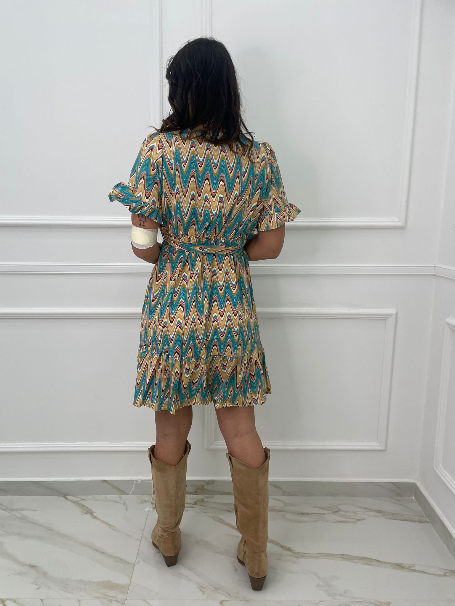 Vestitino a fantasia astratta con bottoncini