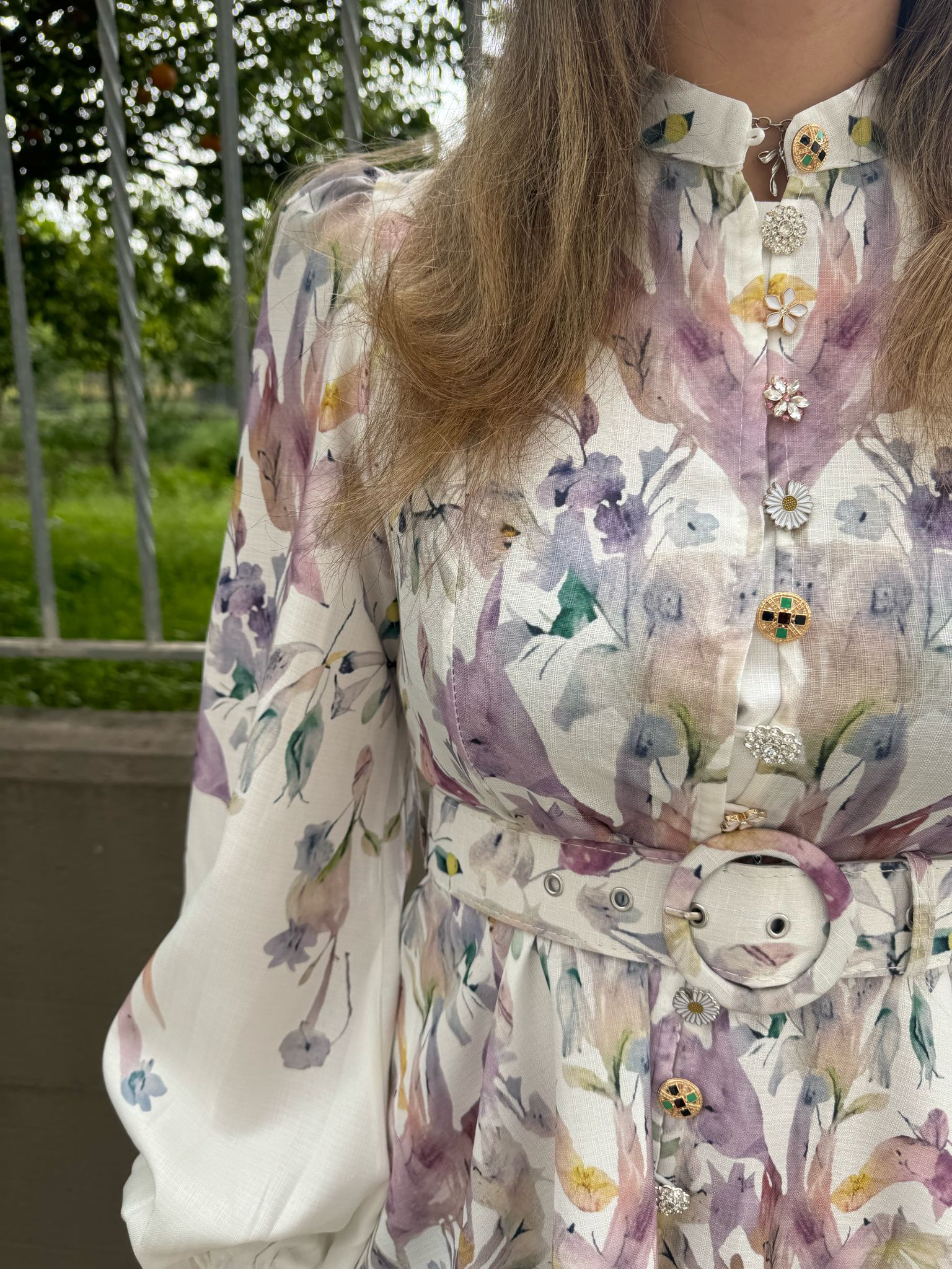 - La modella è una taglia 44, alta 1,79m e indossa la taglia "M/L"