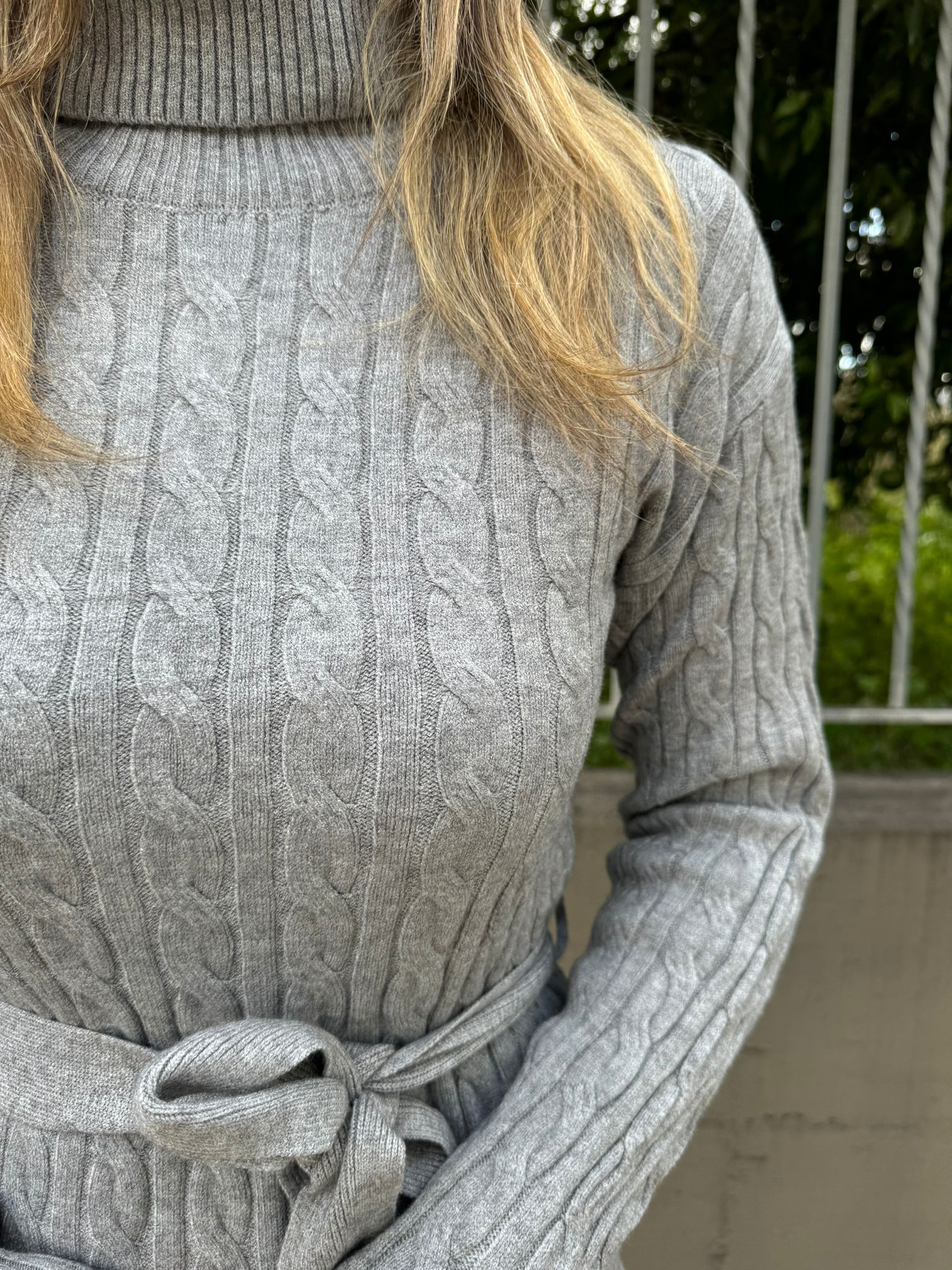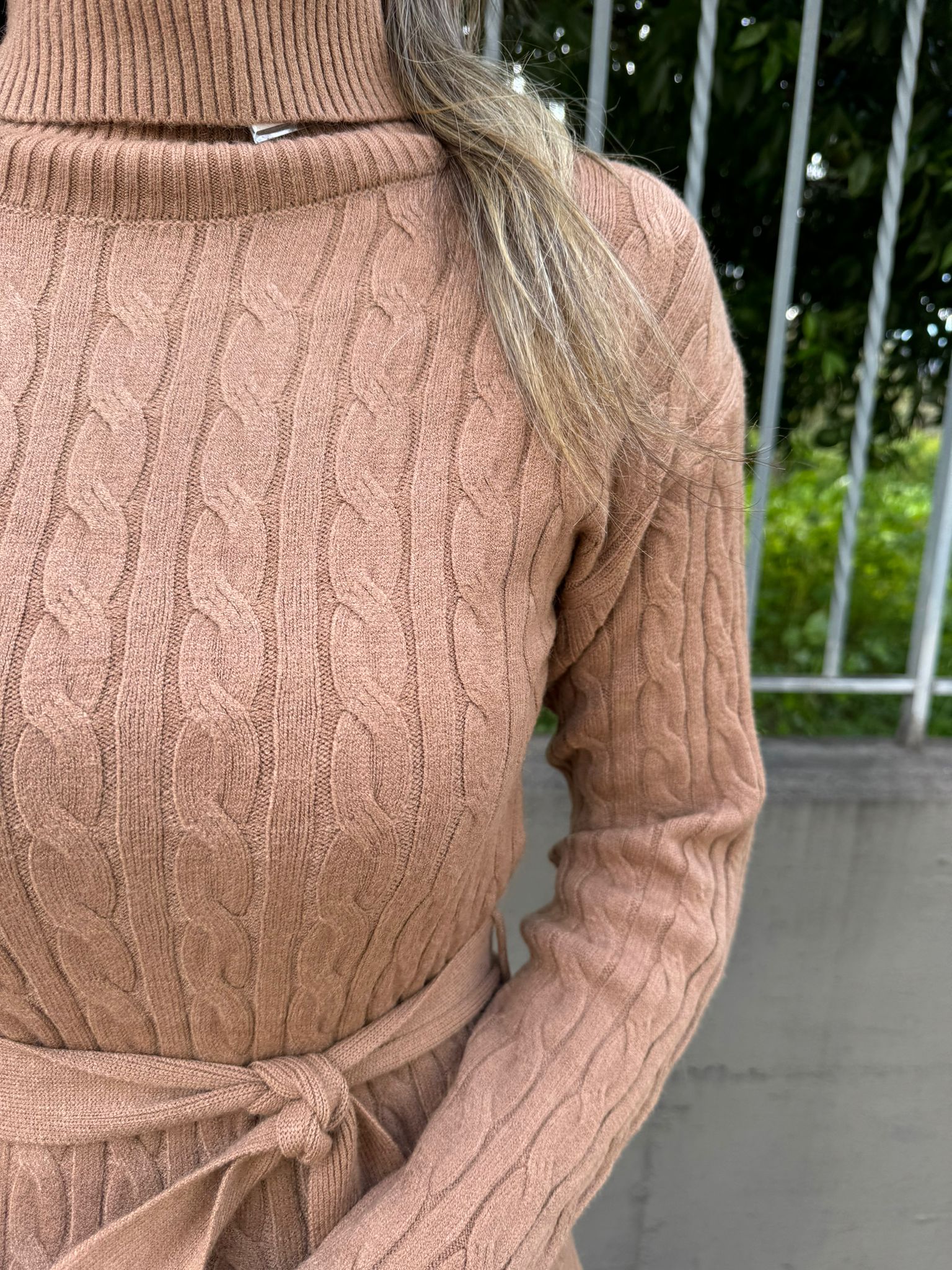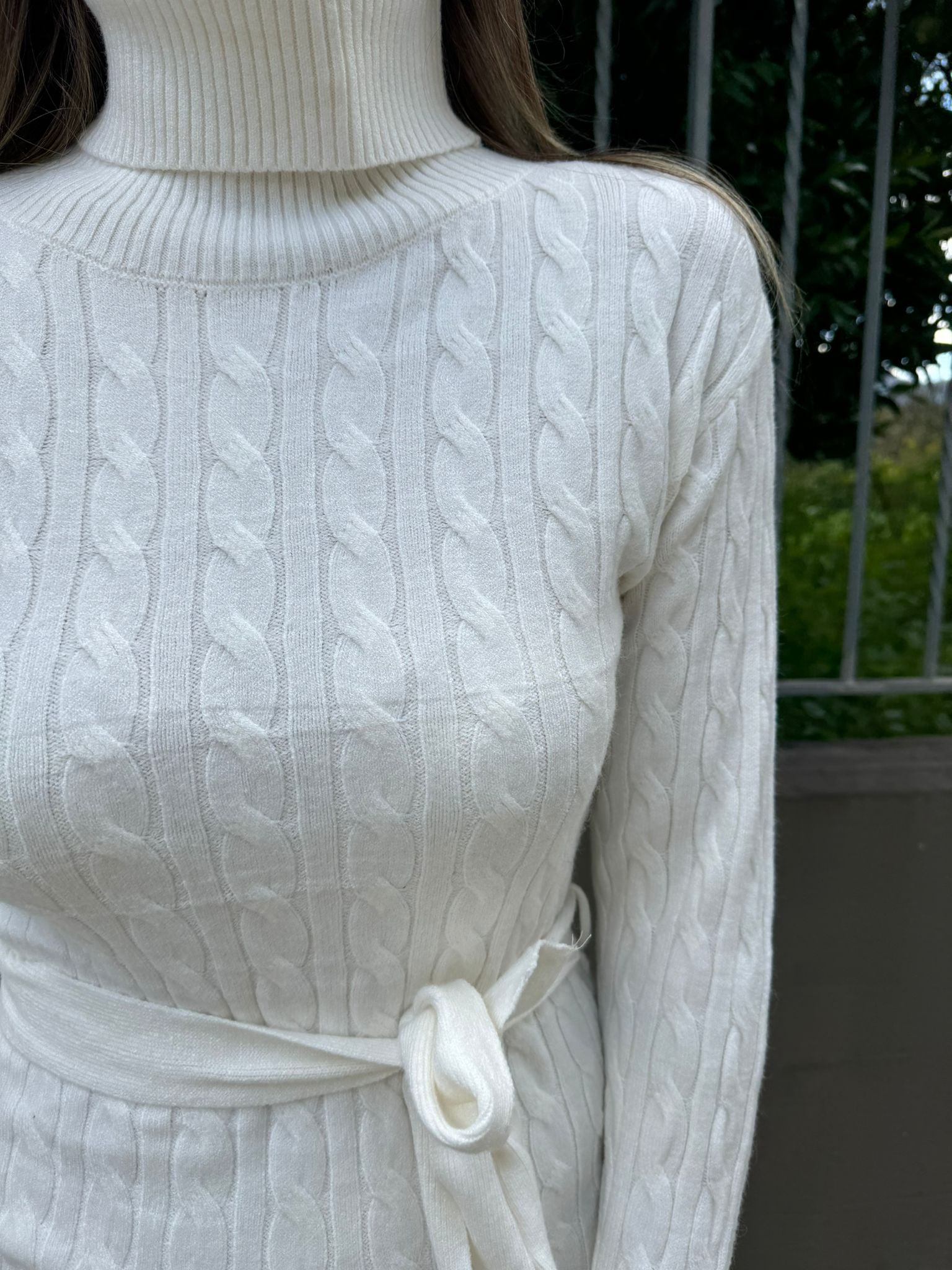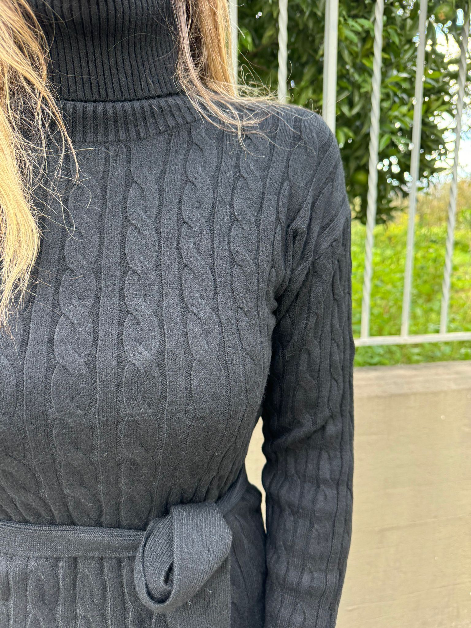Vestito in simil lana trama treccia con cintura