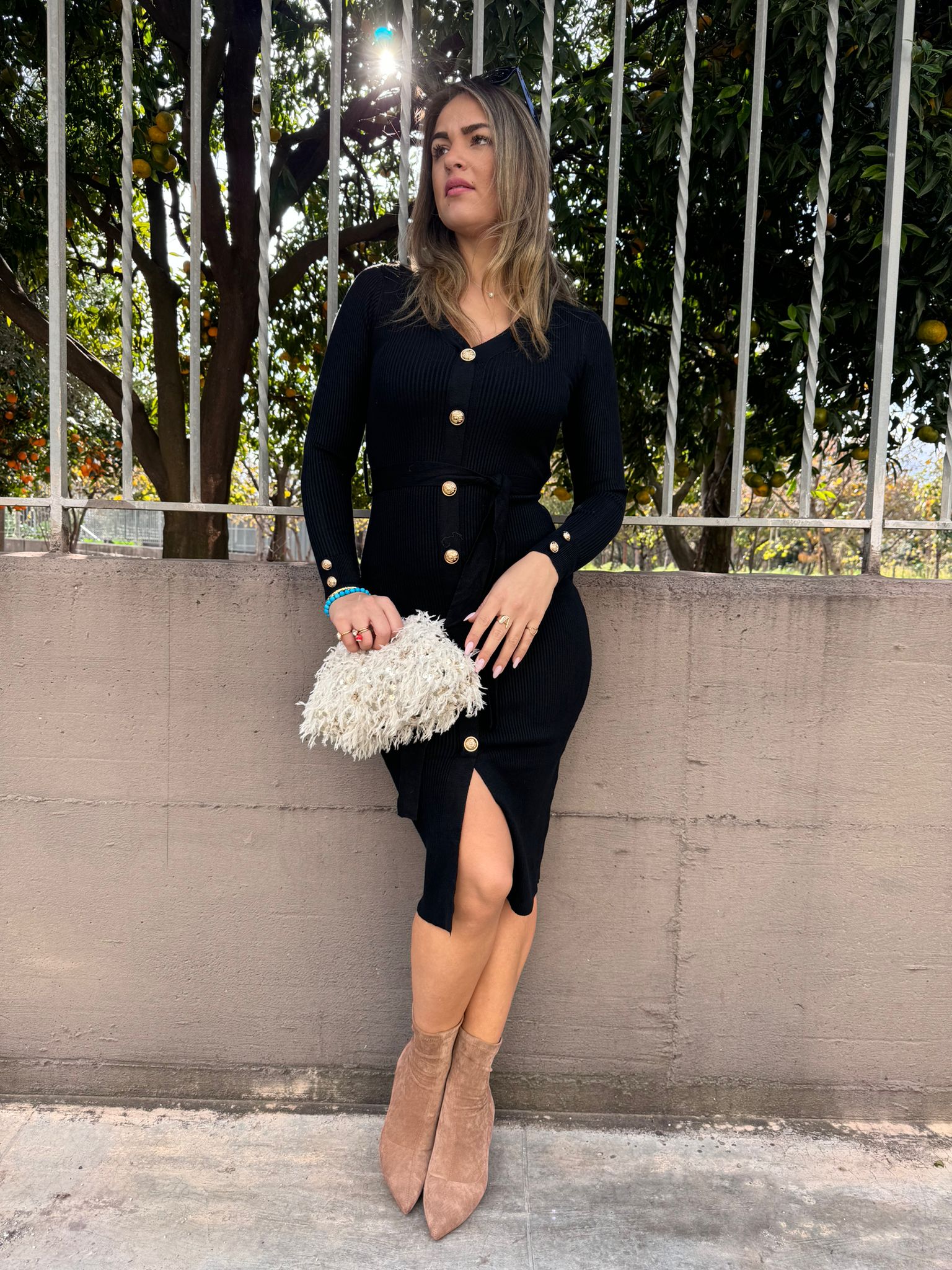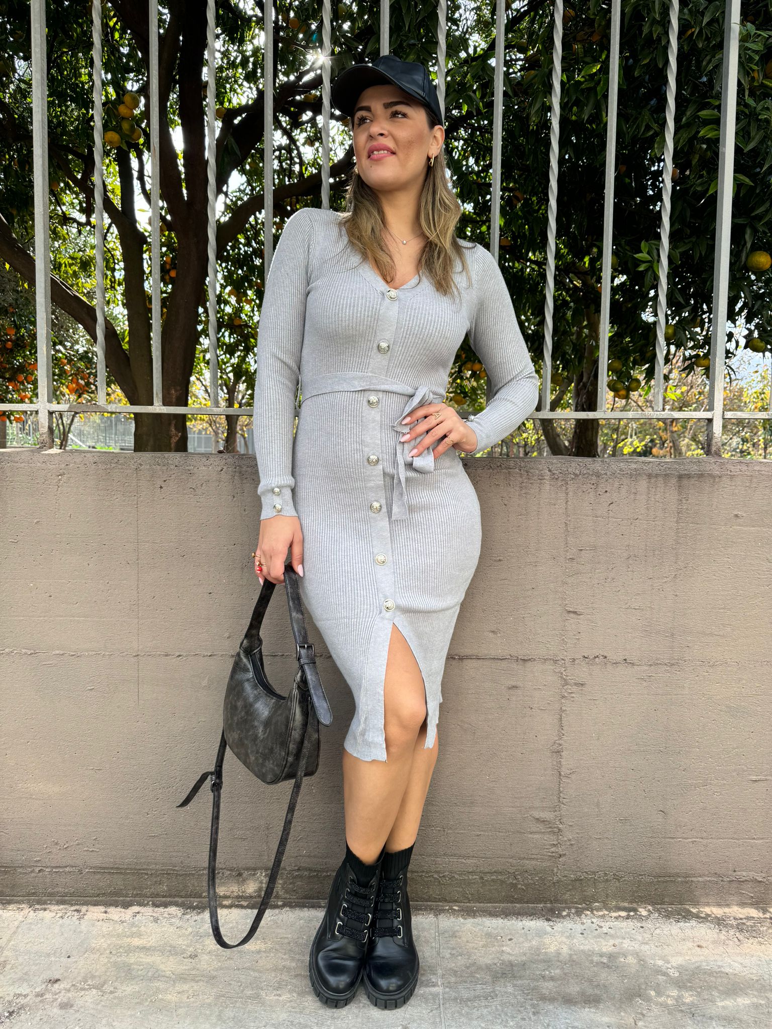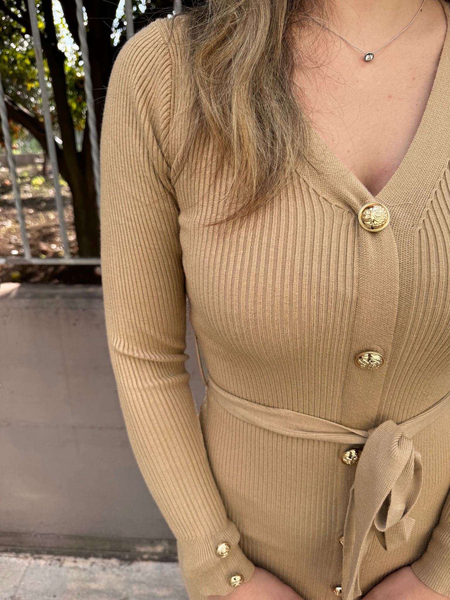 Vestito lungo a coste con bottoni oro