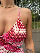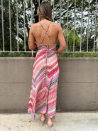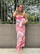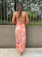 Vestito lungo a fantasia con laccetti alla schiena