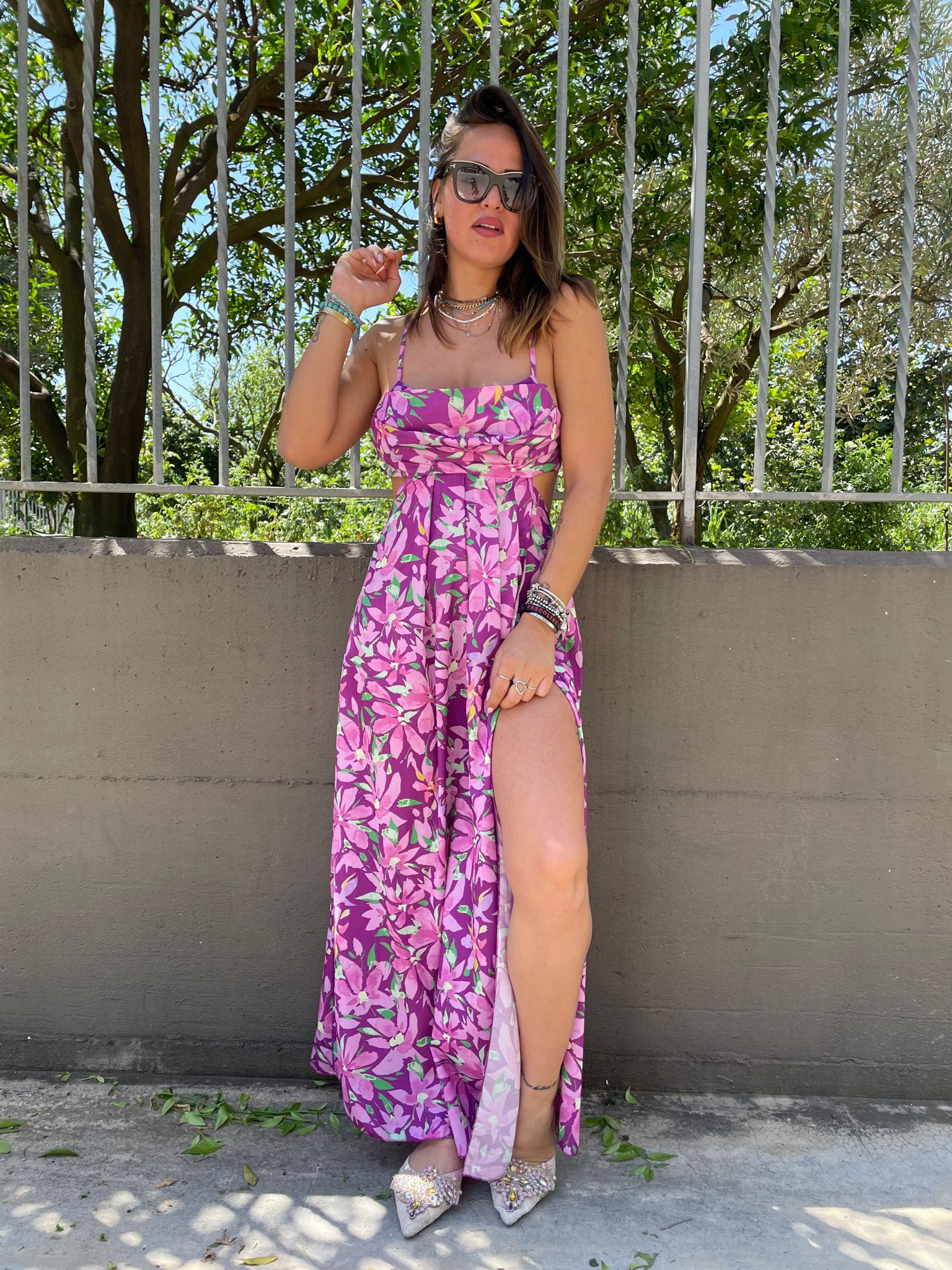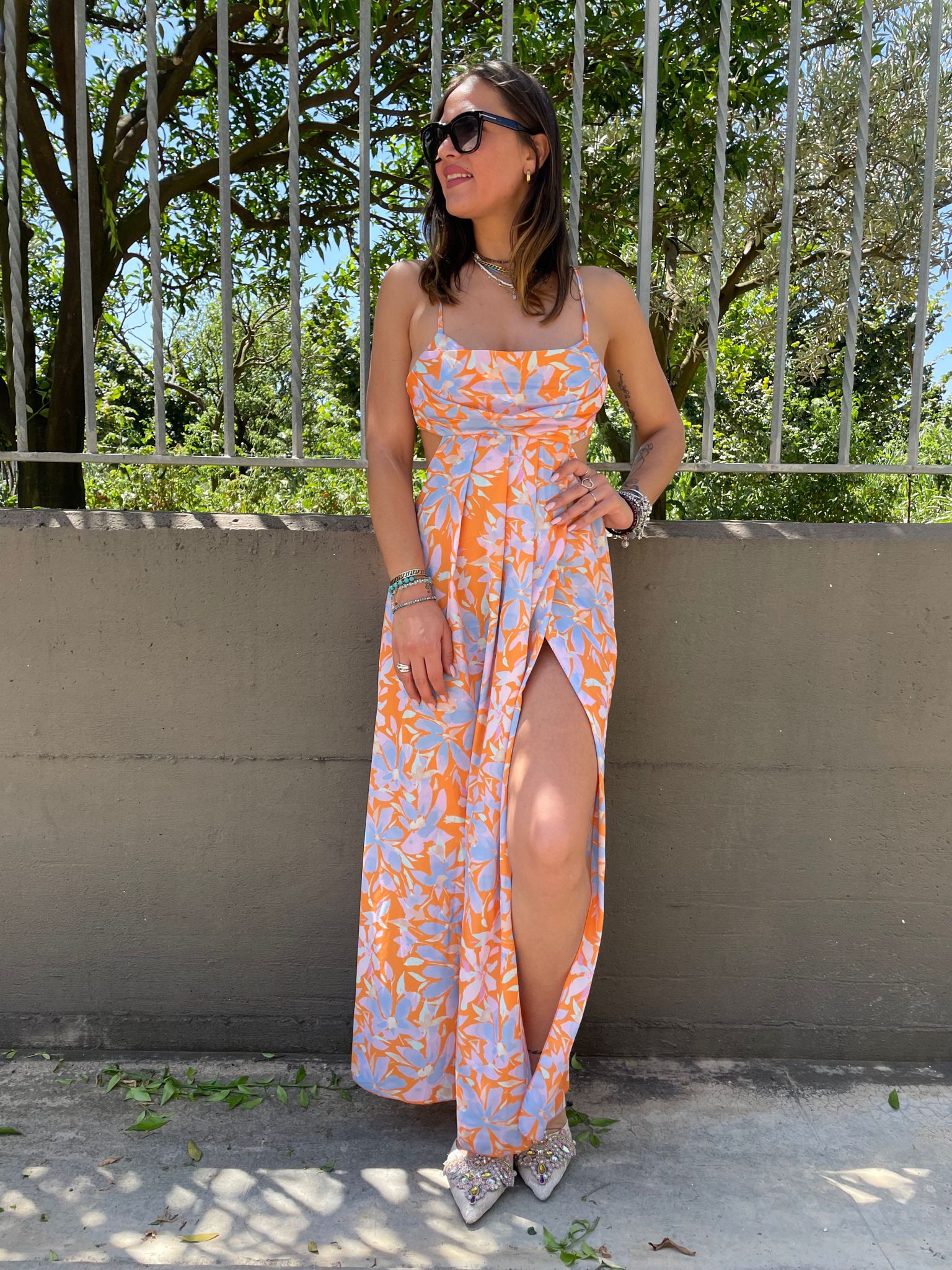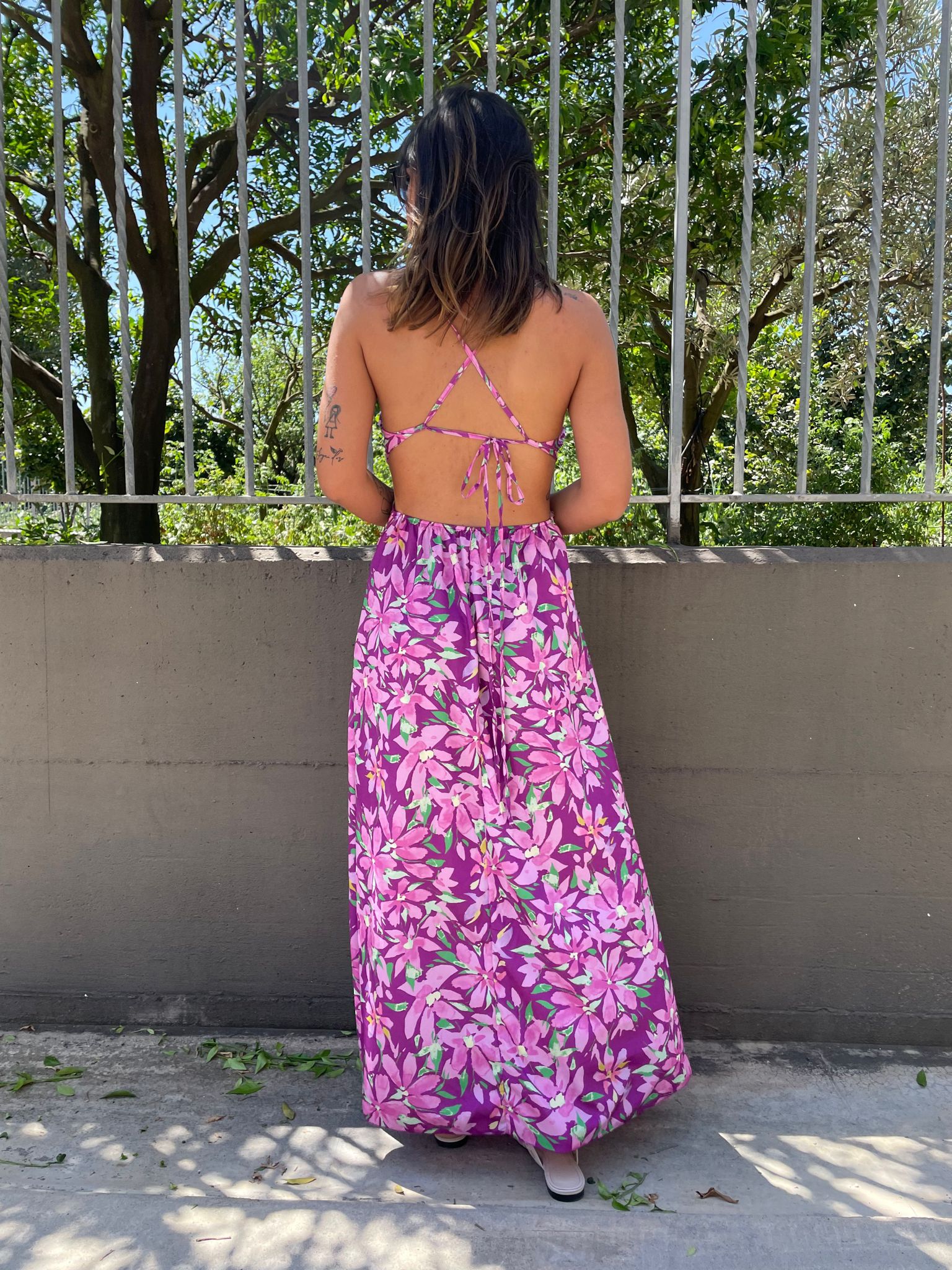 Vestito lungo a fantasia cut out con schiena scoperta