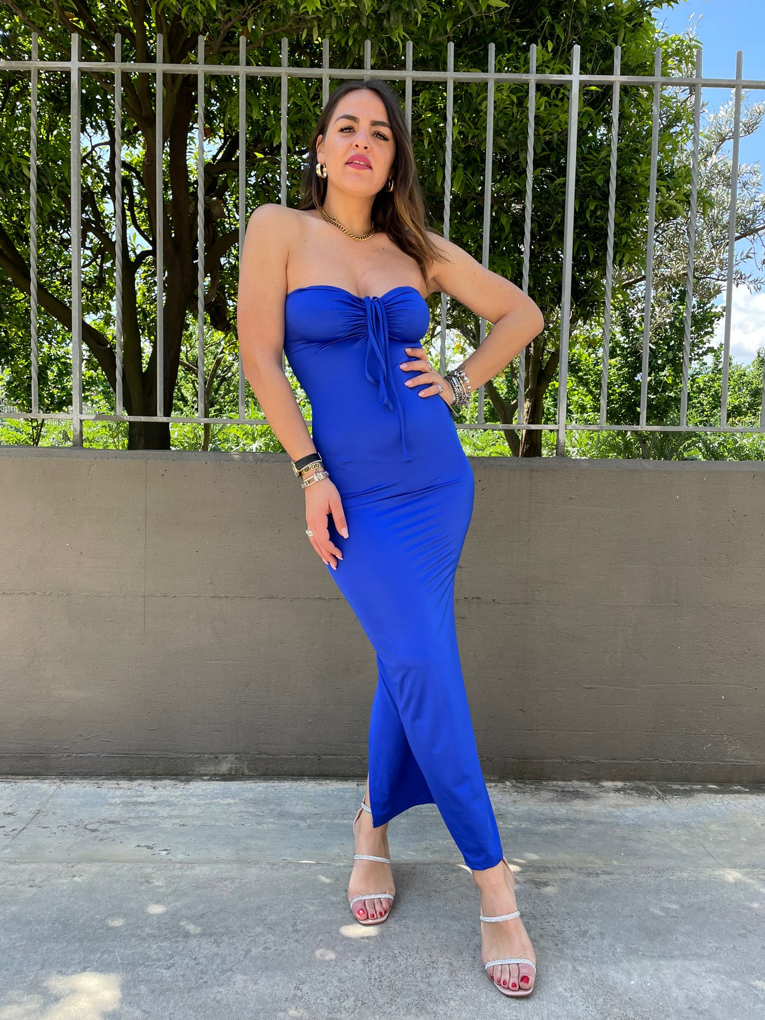 Vestito lungo a fascia tinta unita