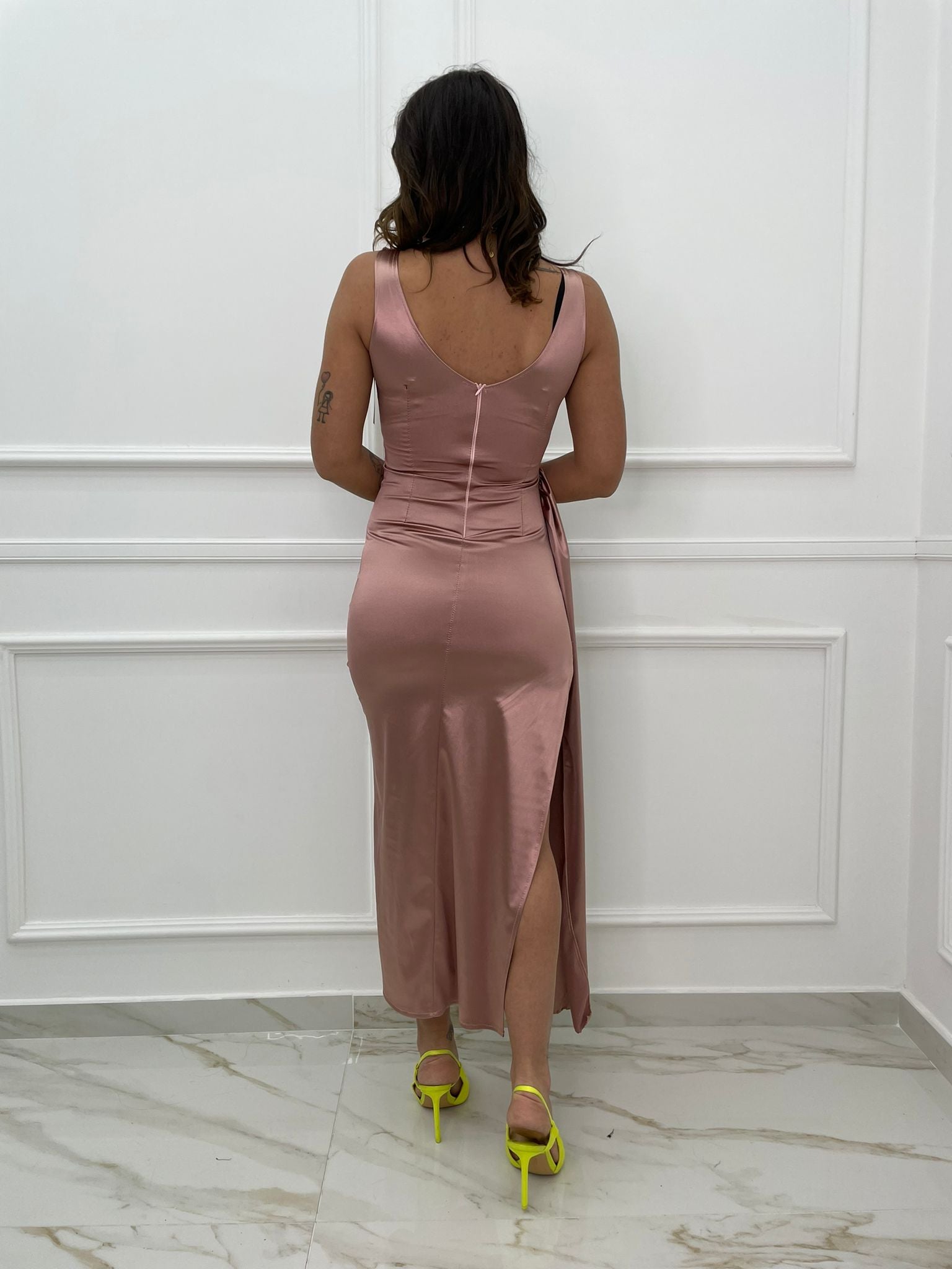 Vestito lungo con fusciacca laterale