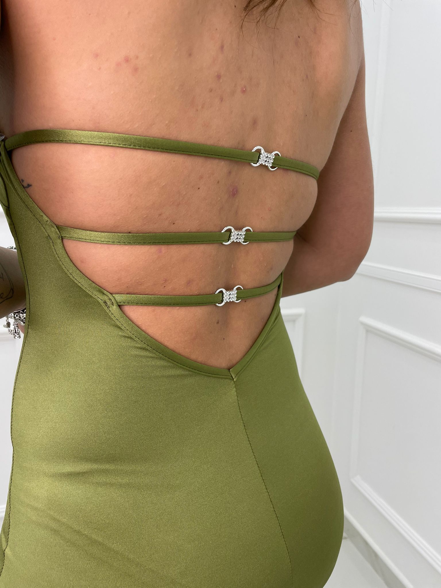 Vestito lungo con schiena scoperta e applicazioni swarovski