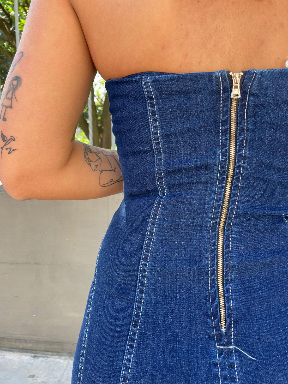 Vestito lungo di jeans con scollo a cuore