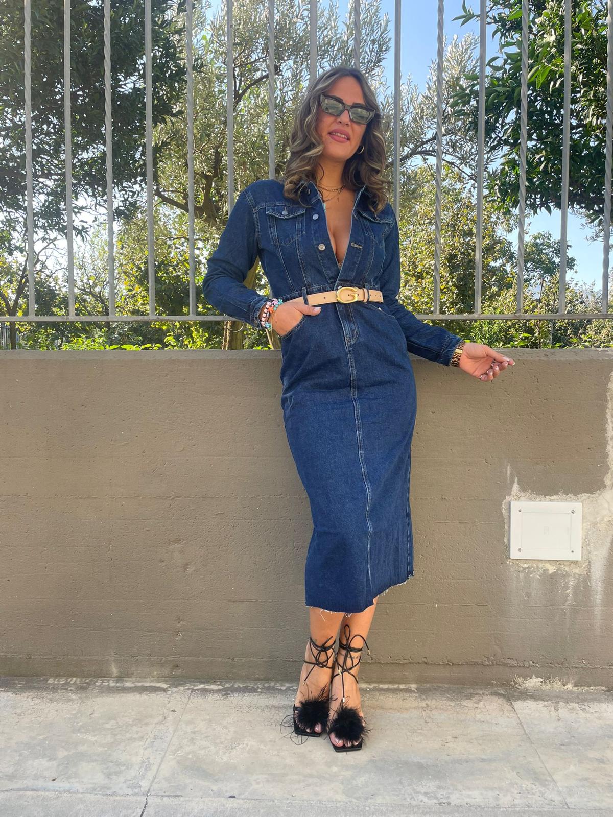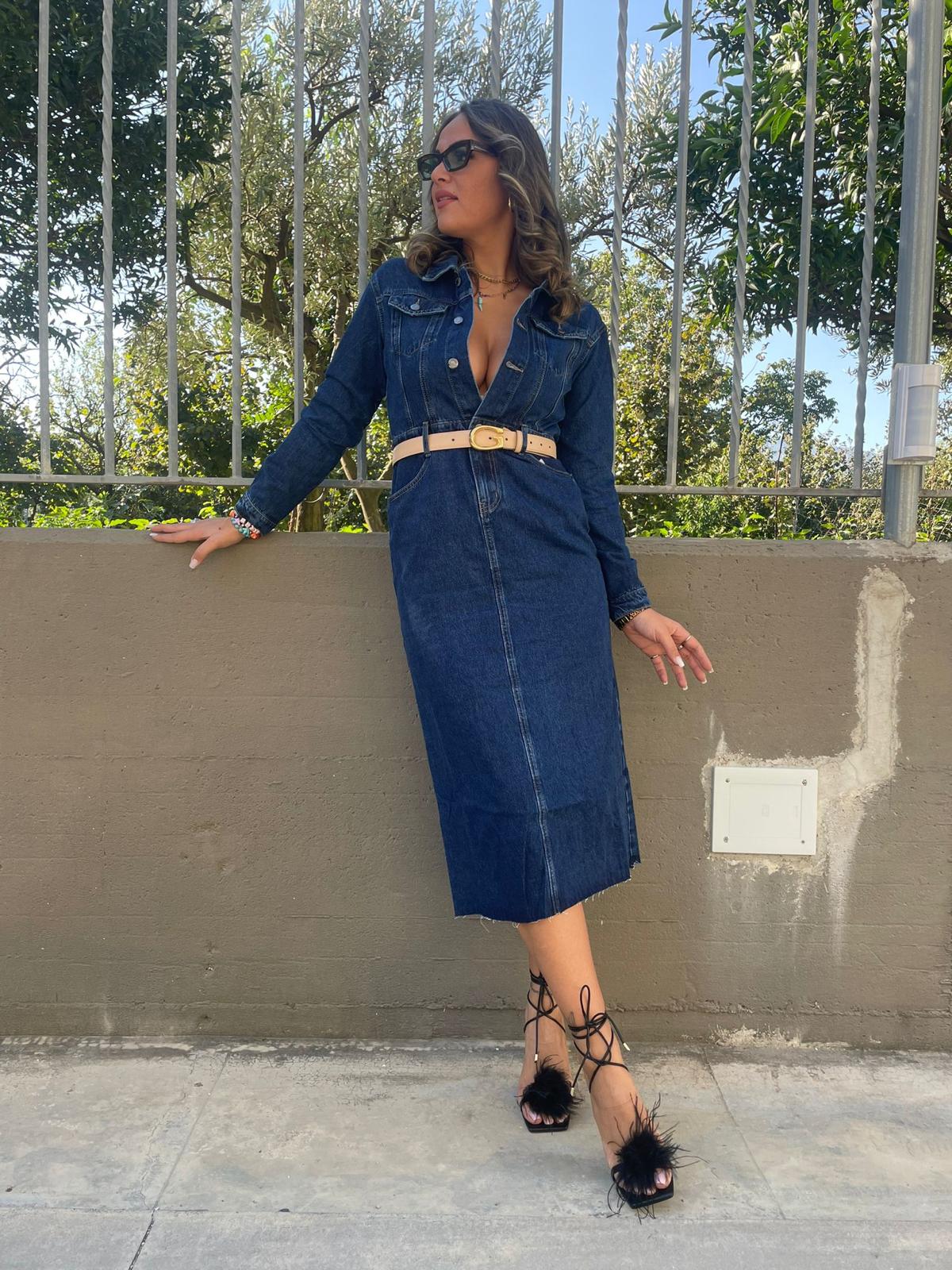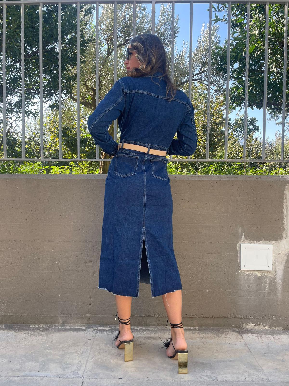 Vestito lungo di jeans lavaggio scuro con spacco dietro