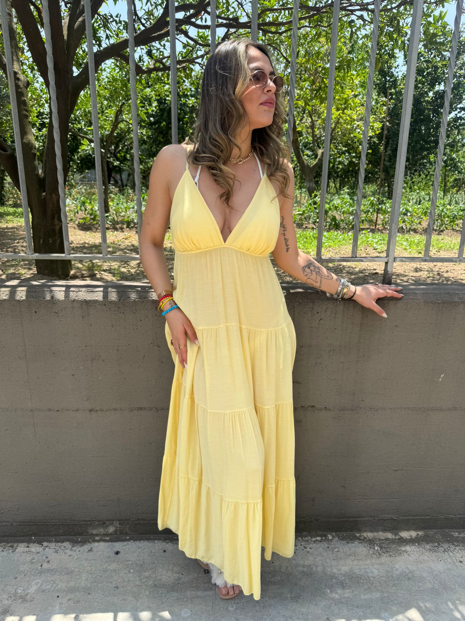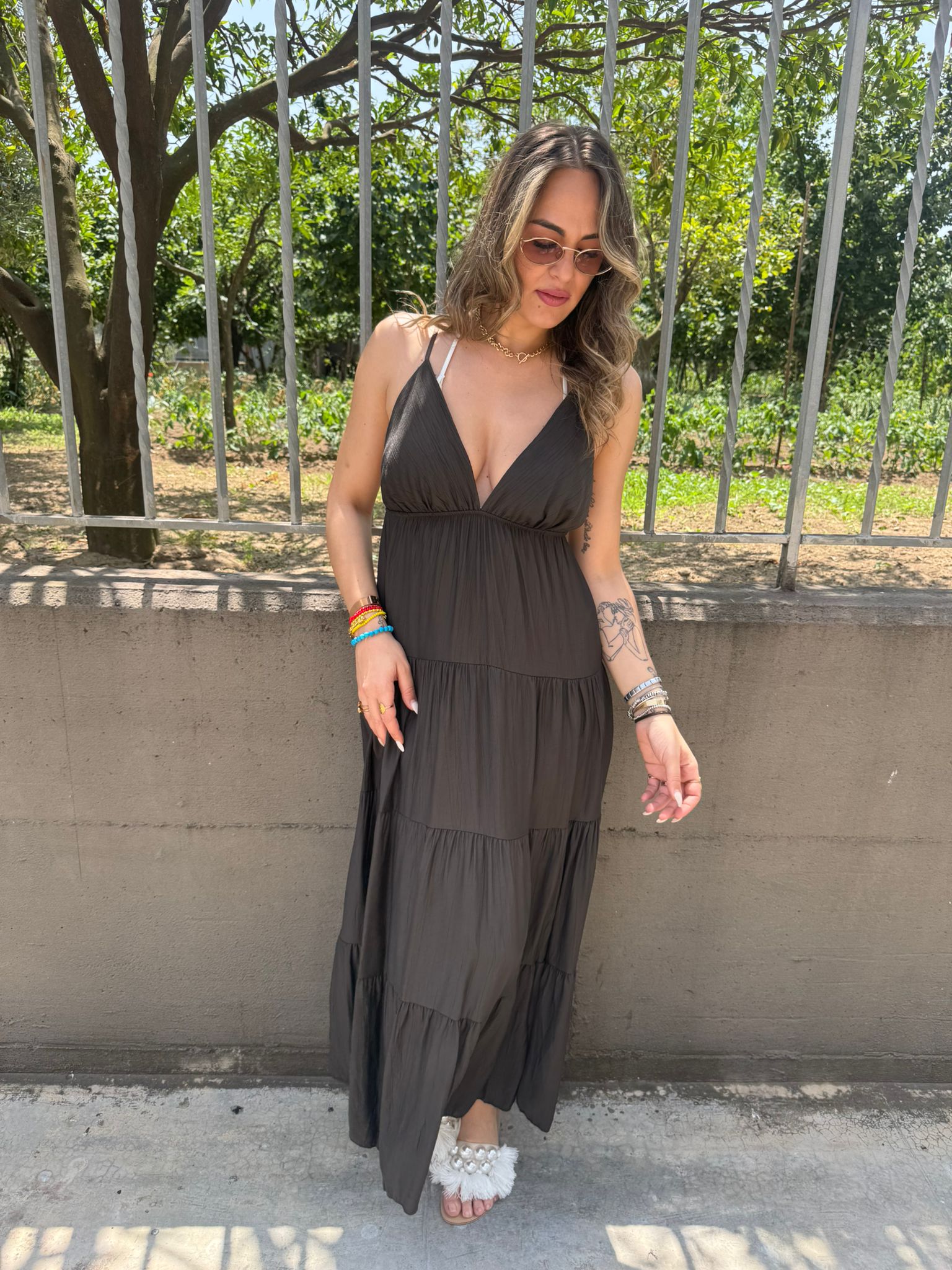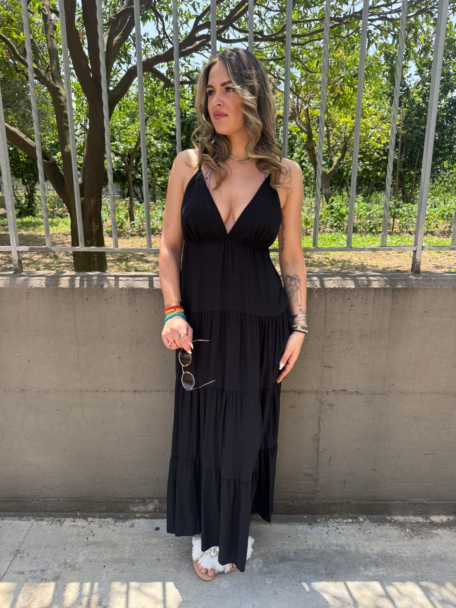 - Vestito lungo tinta unita