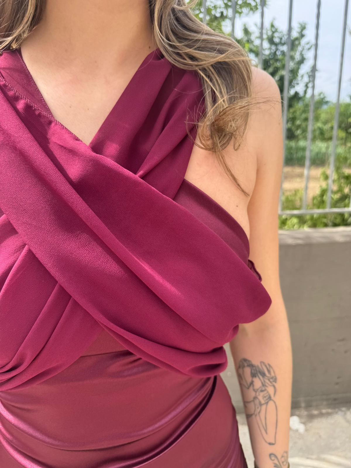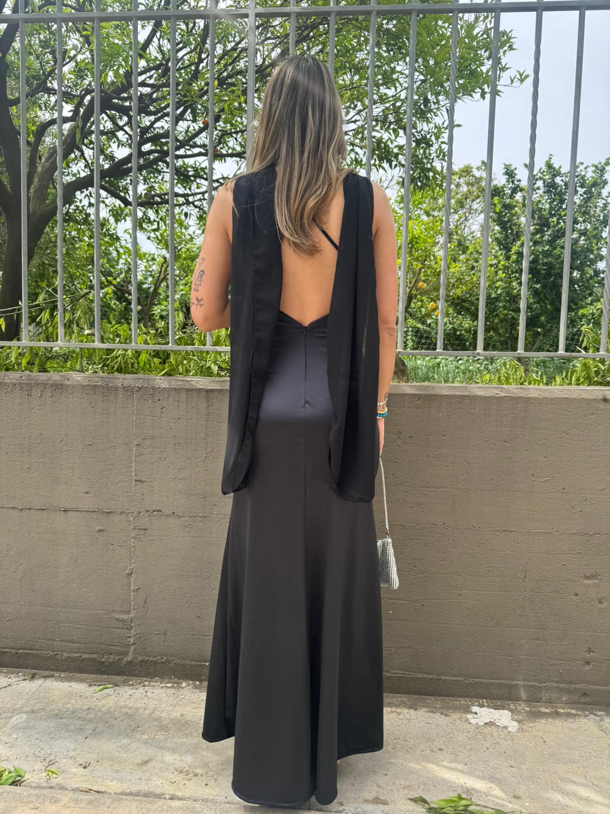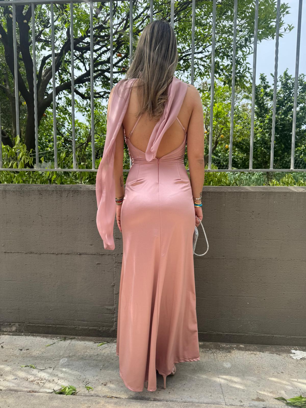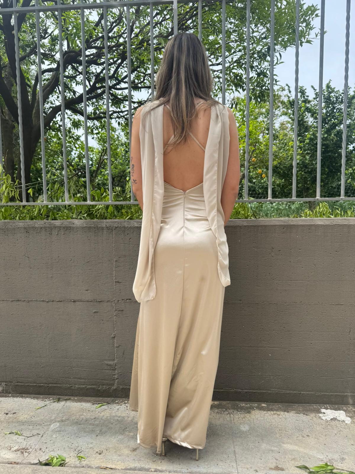 Vestito lungo effetto raso con fusciacca velata