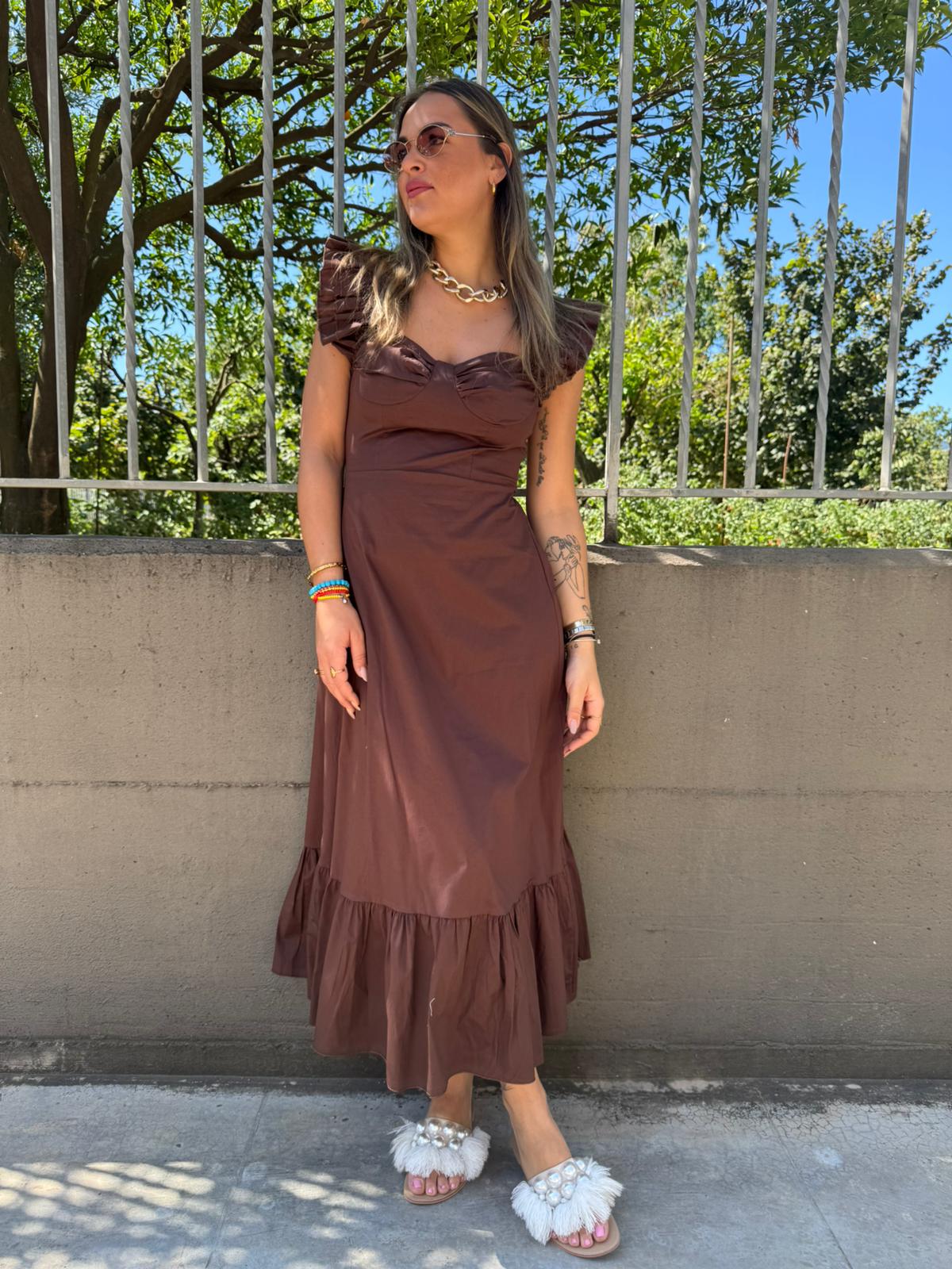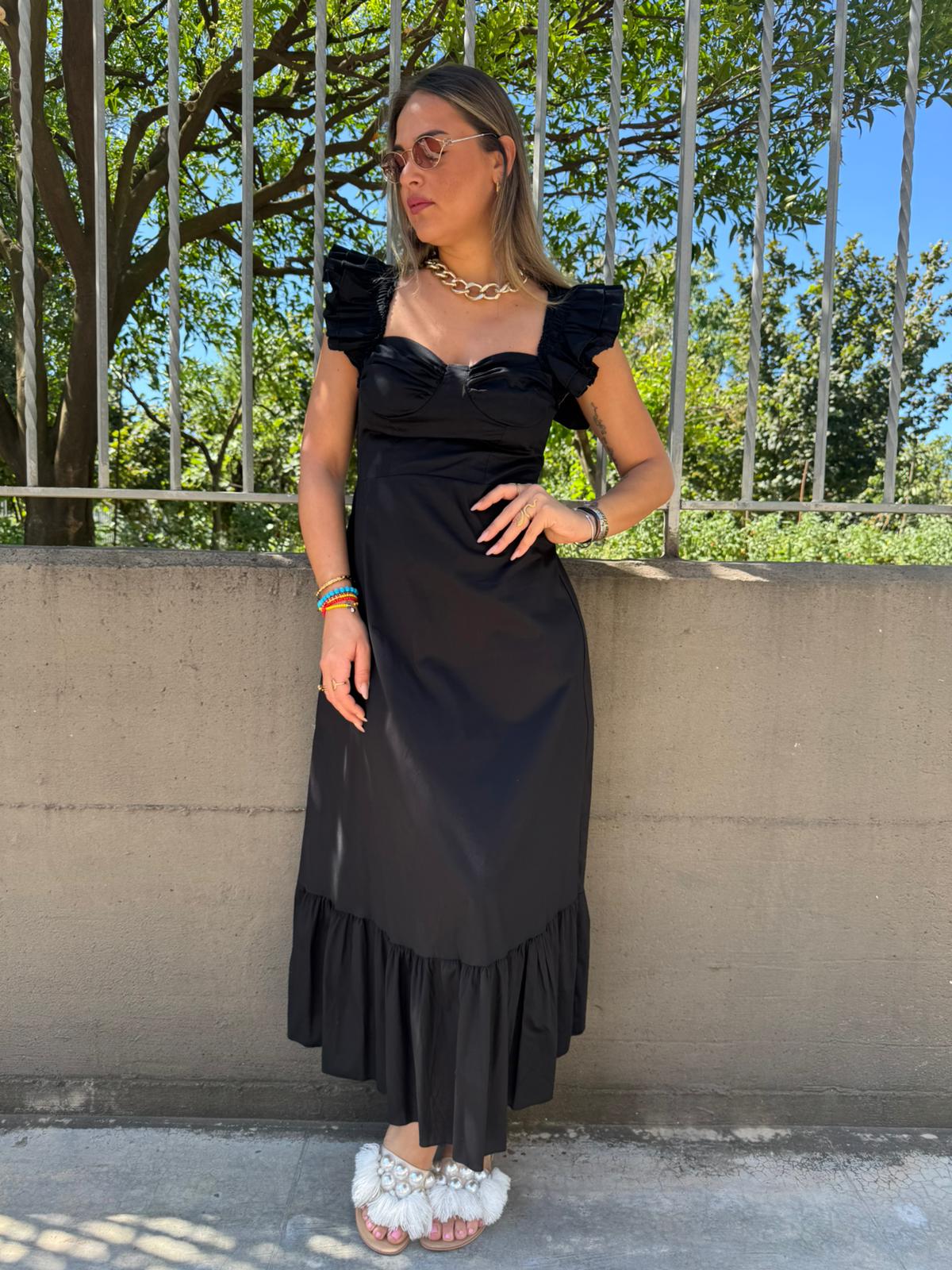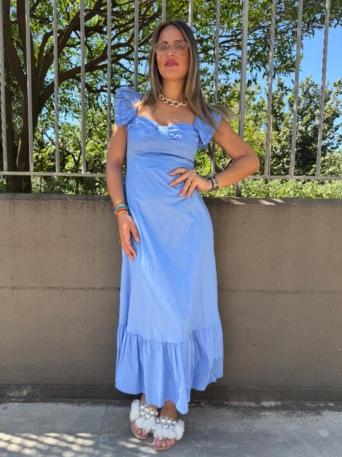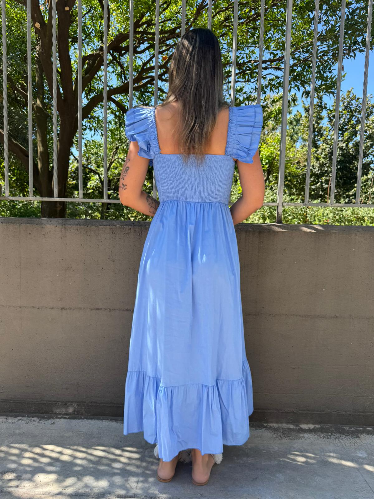 Vestito lungo in cotone con maniche volant