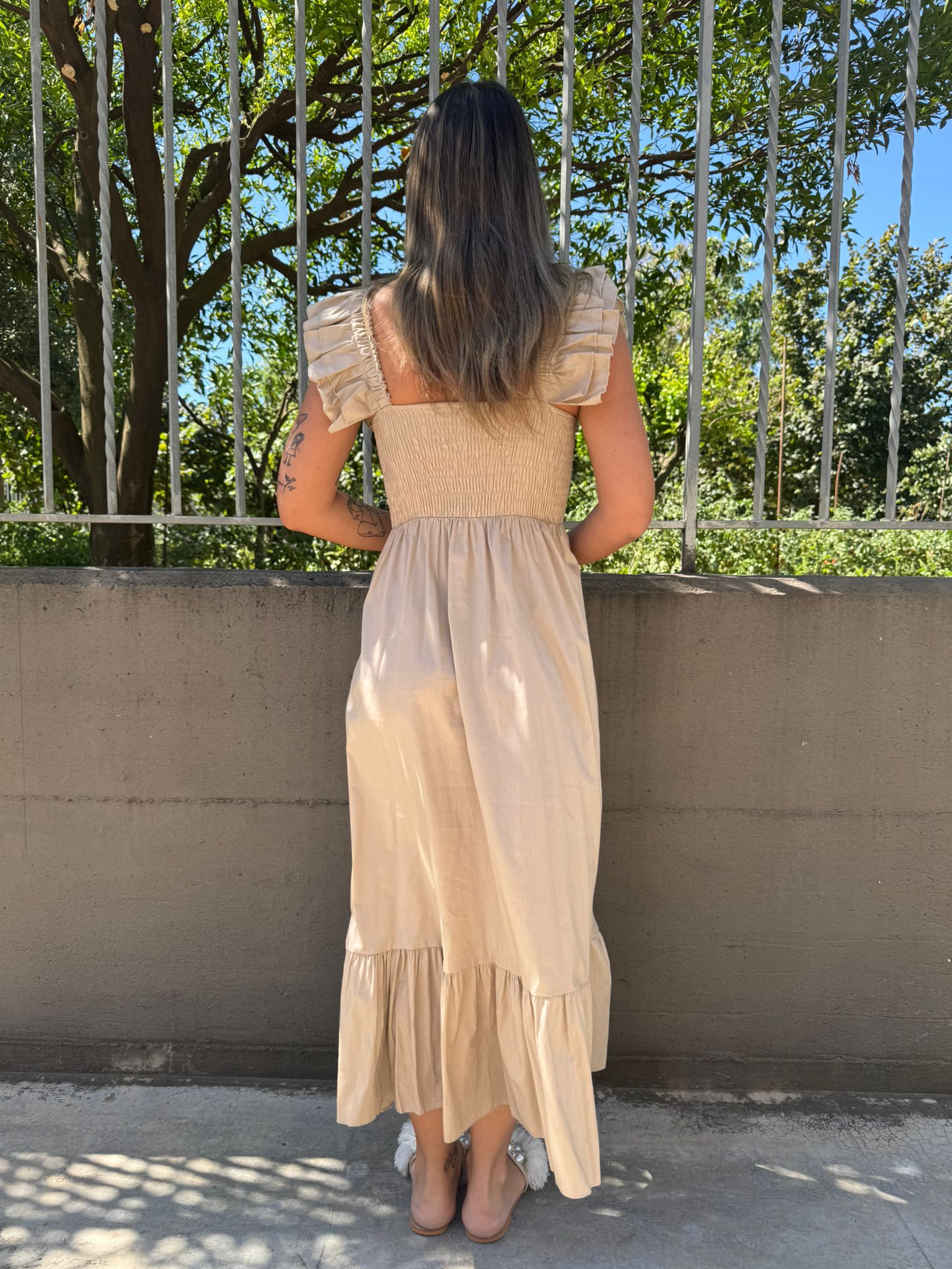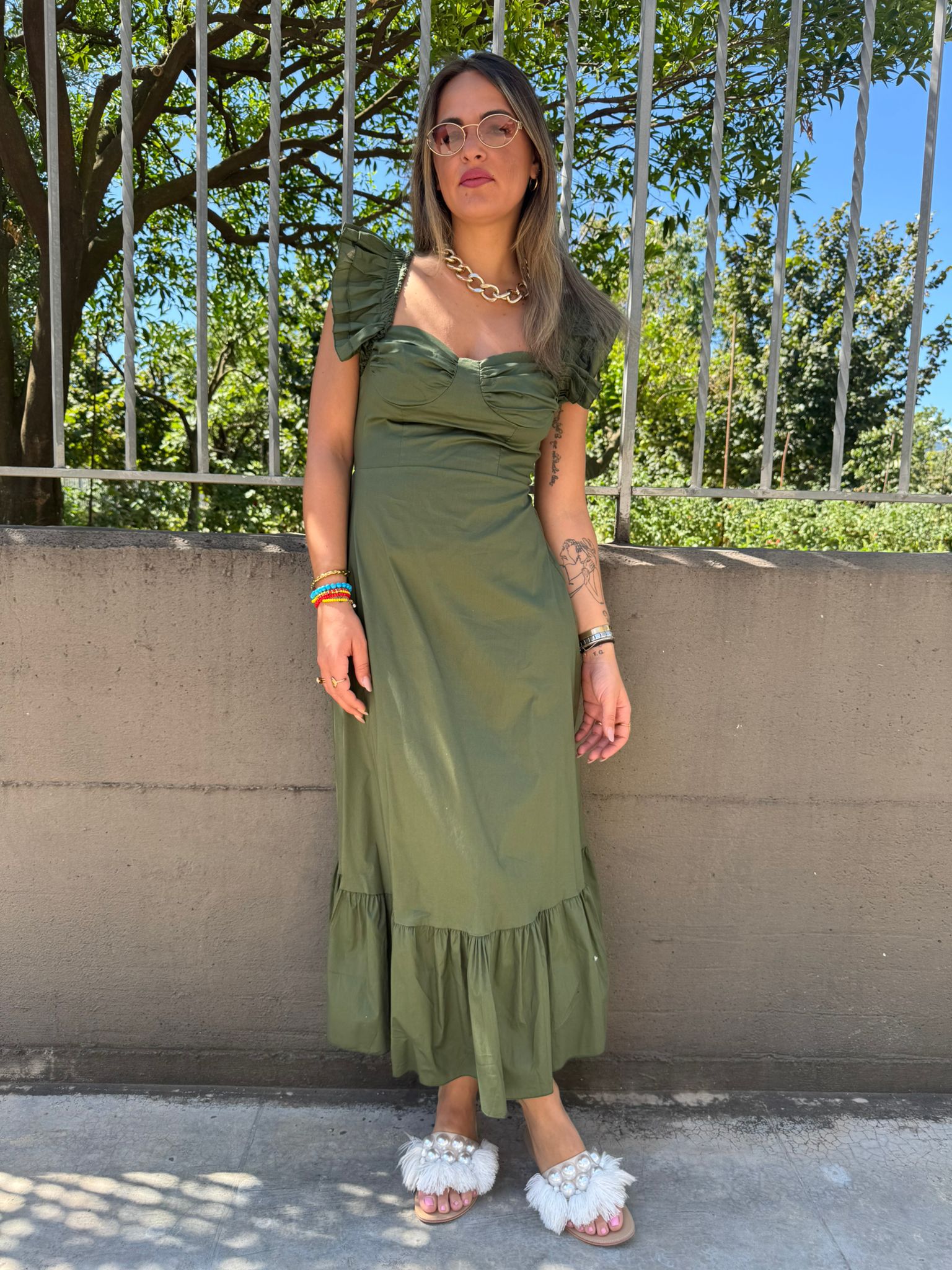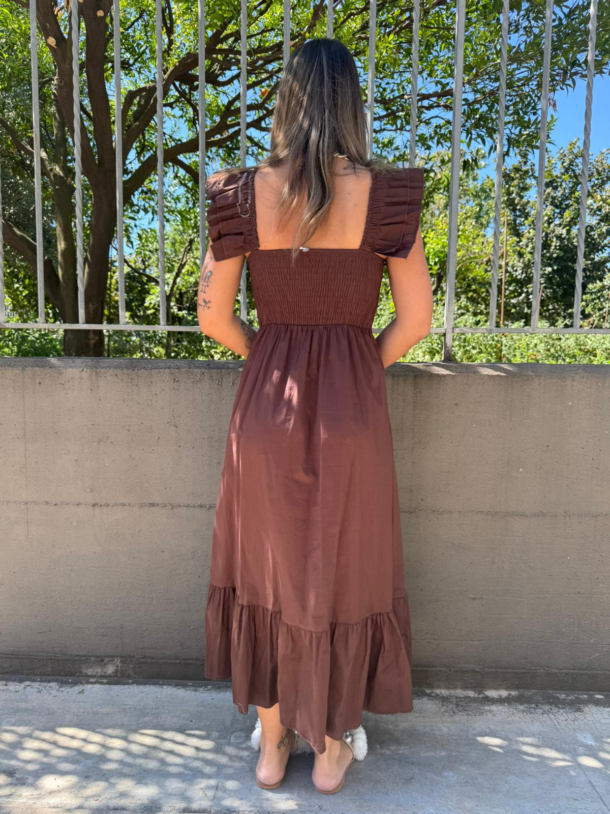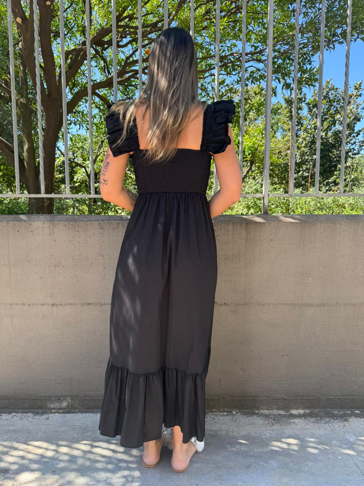 Vestito lungo in cotone con maniche volant
