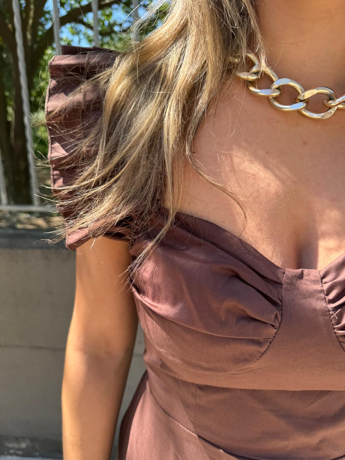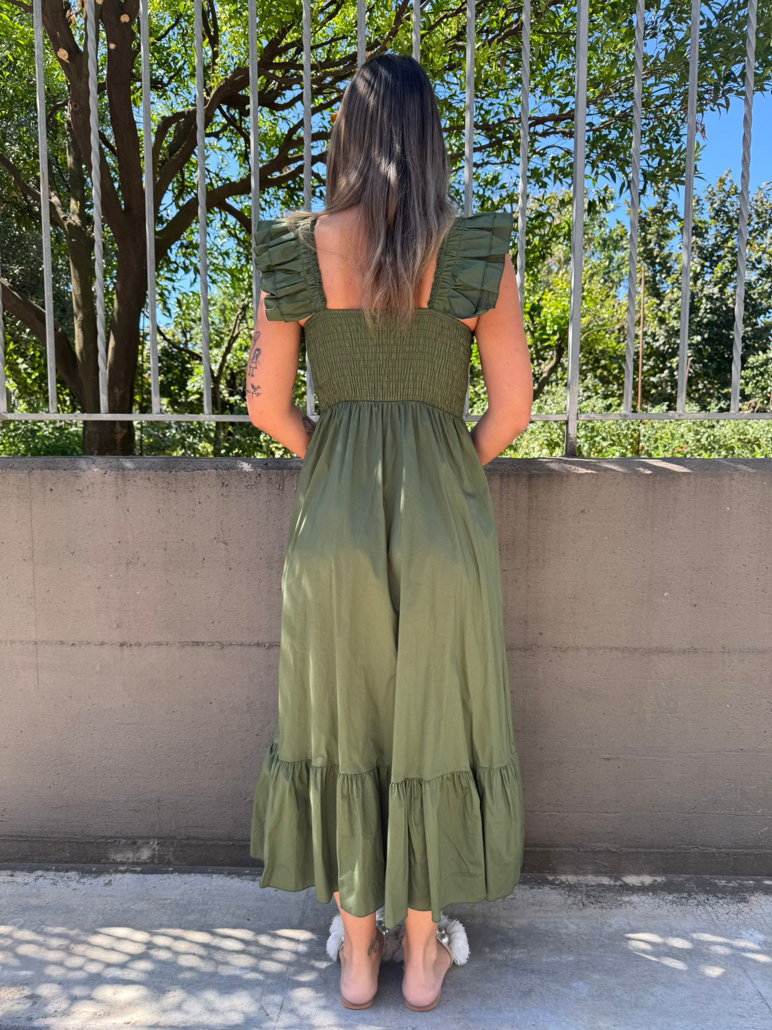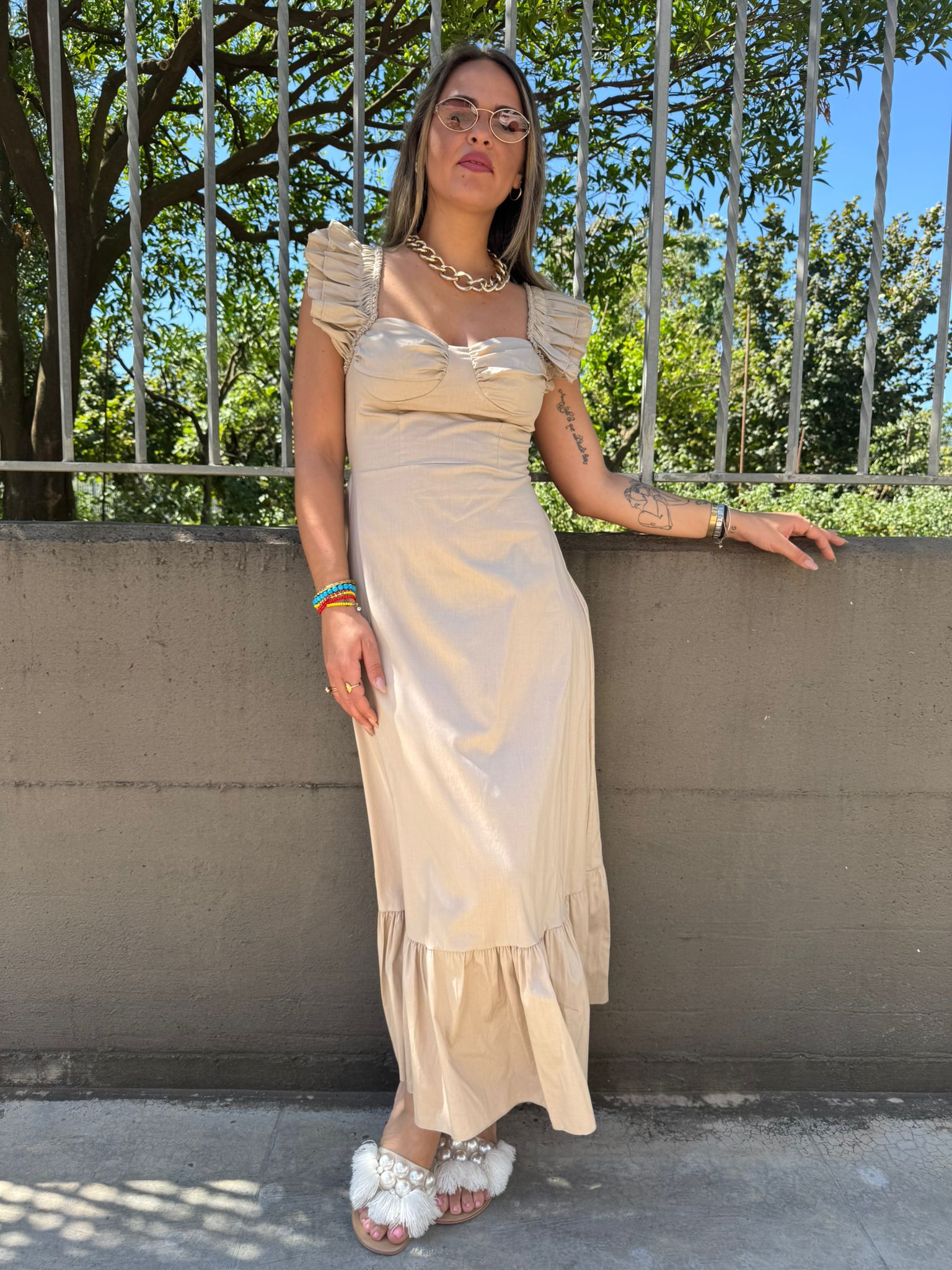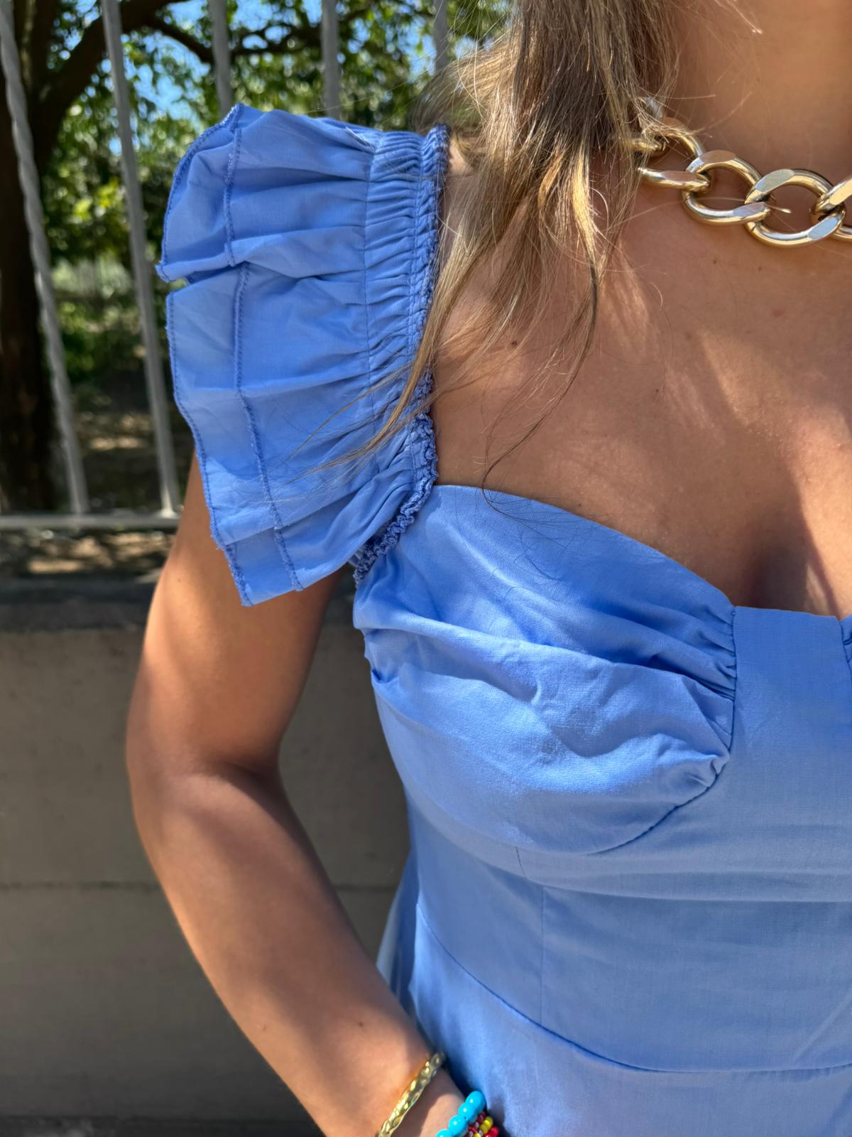 Vestito lungo in cotone con maniche volant