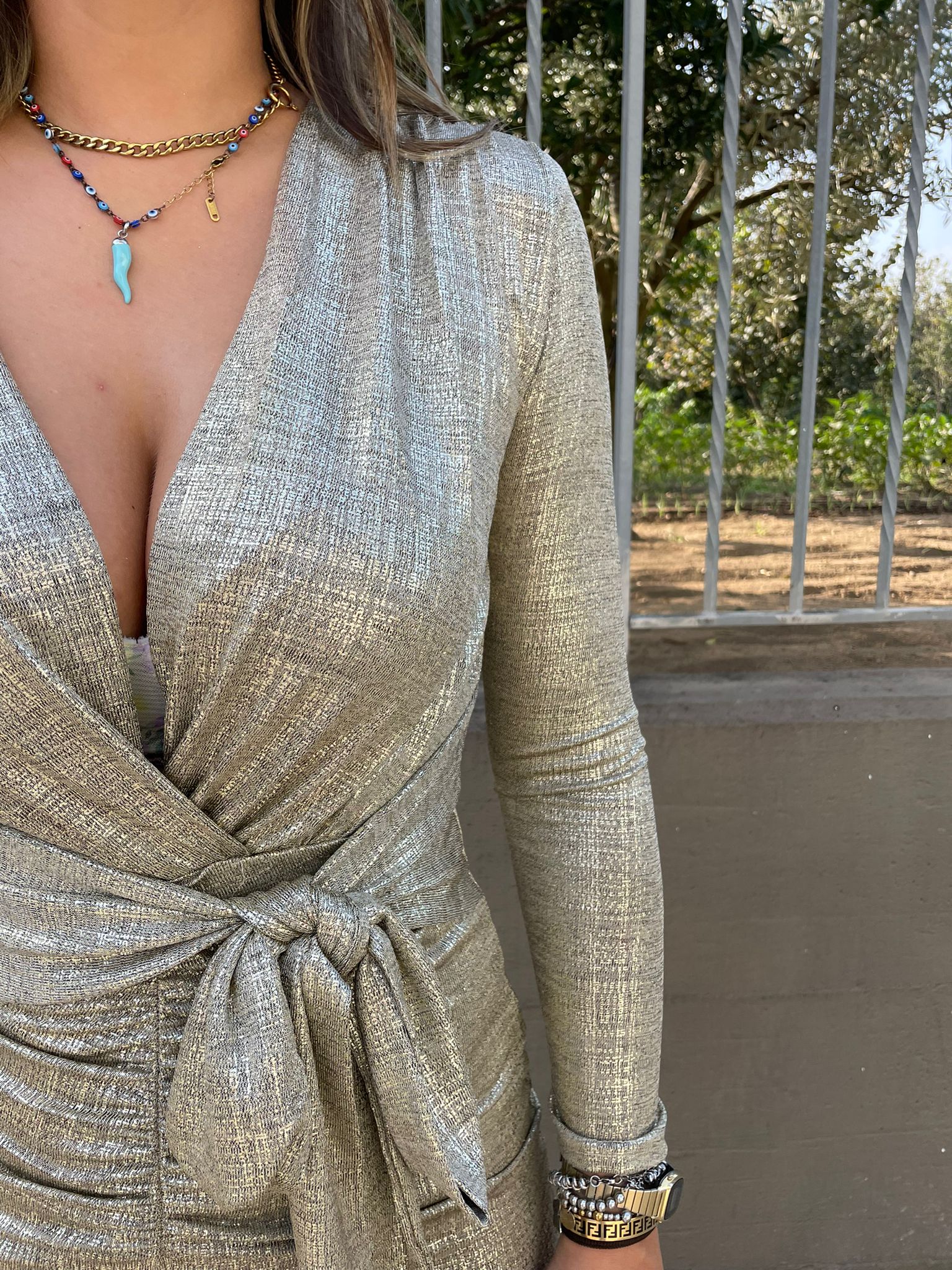 Vestito lungo satinato con nodo in vita