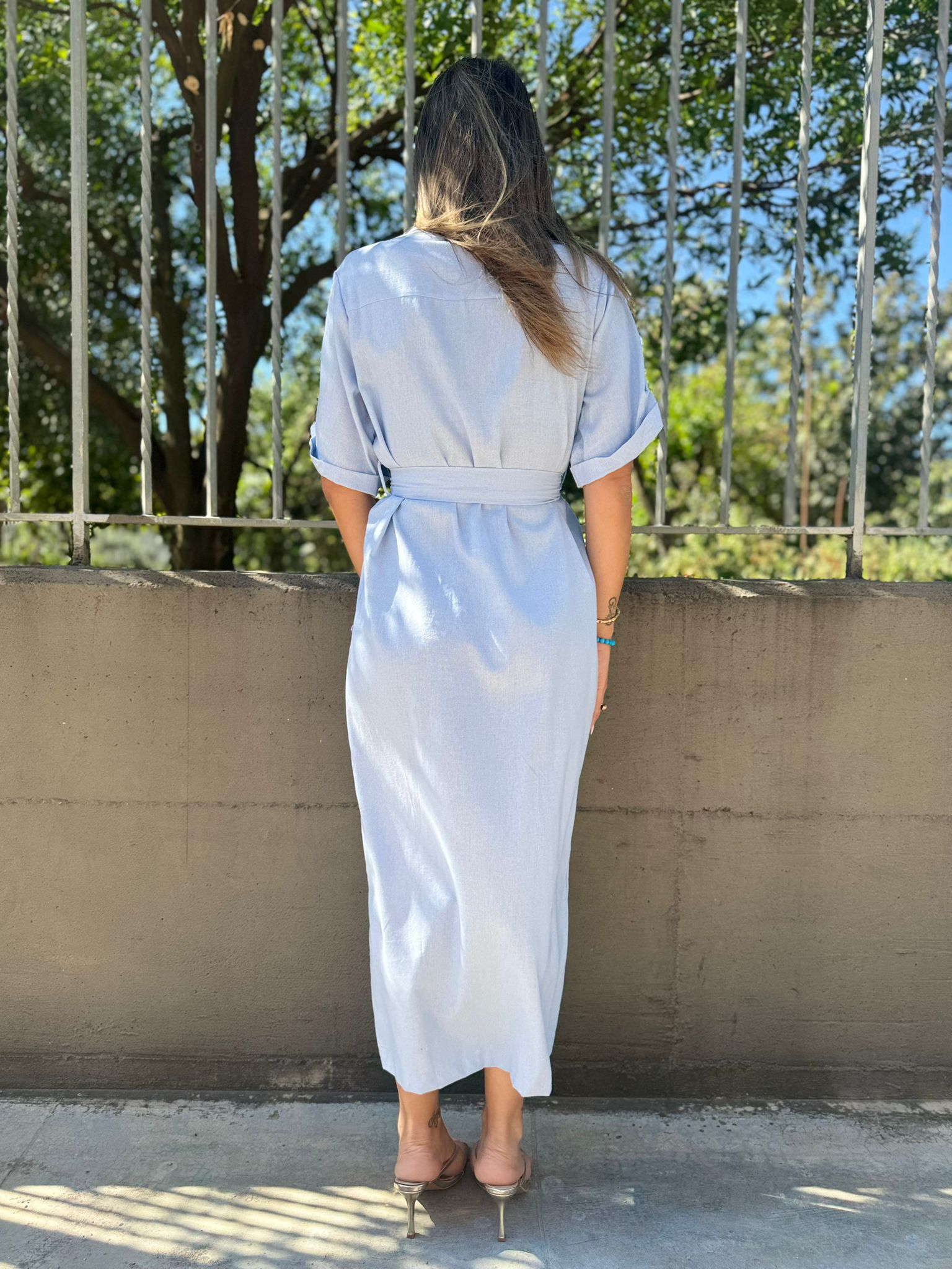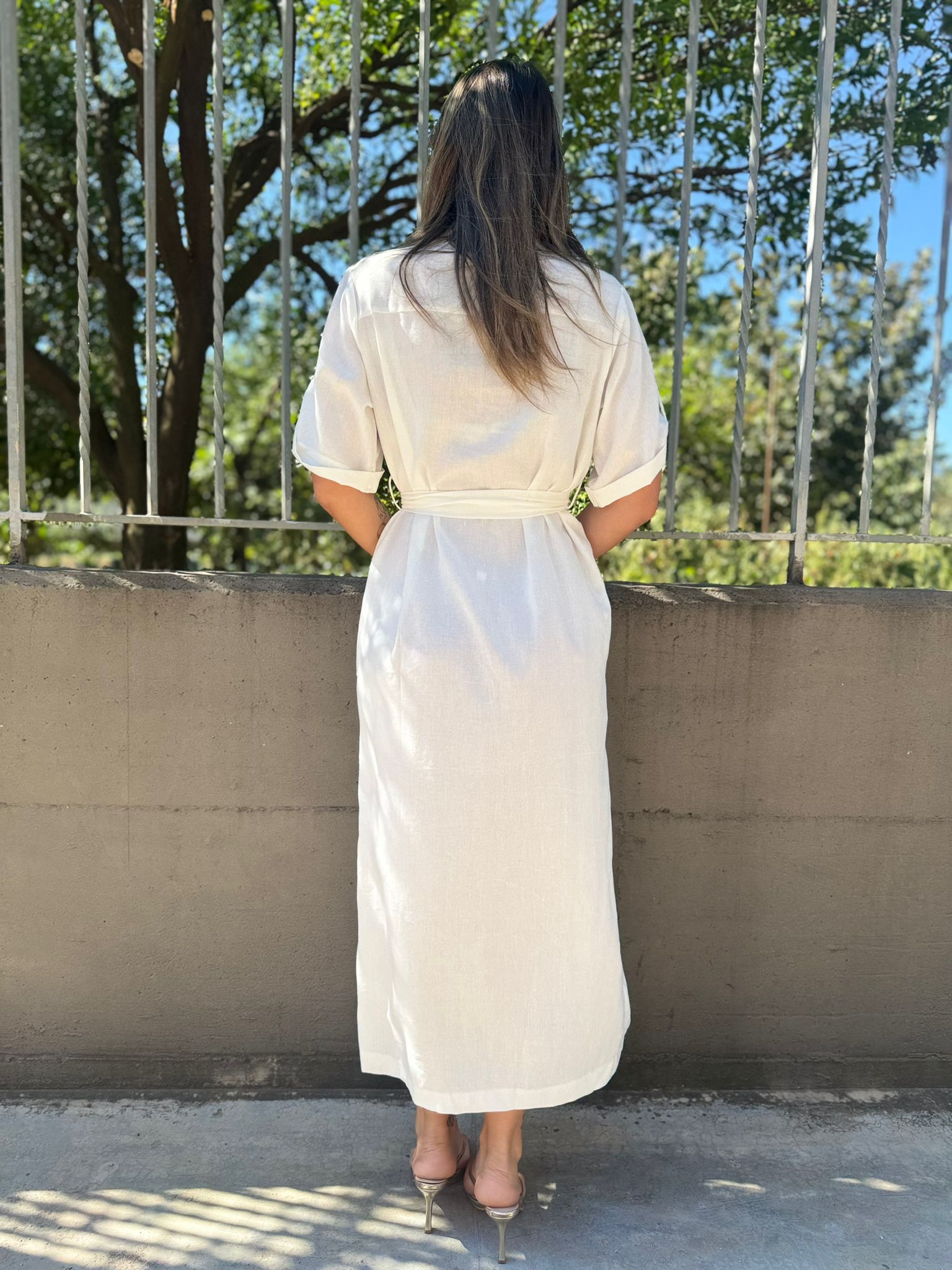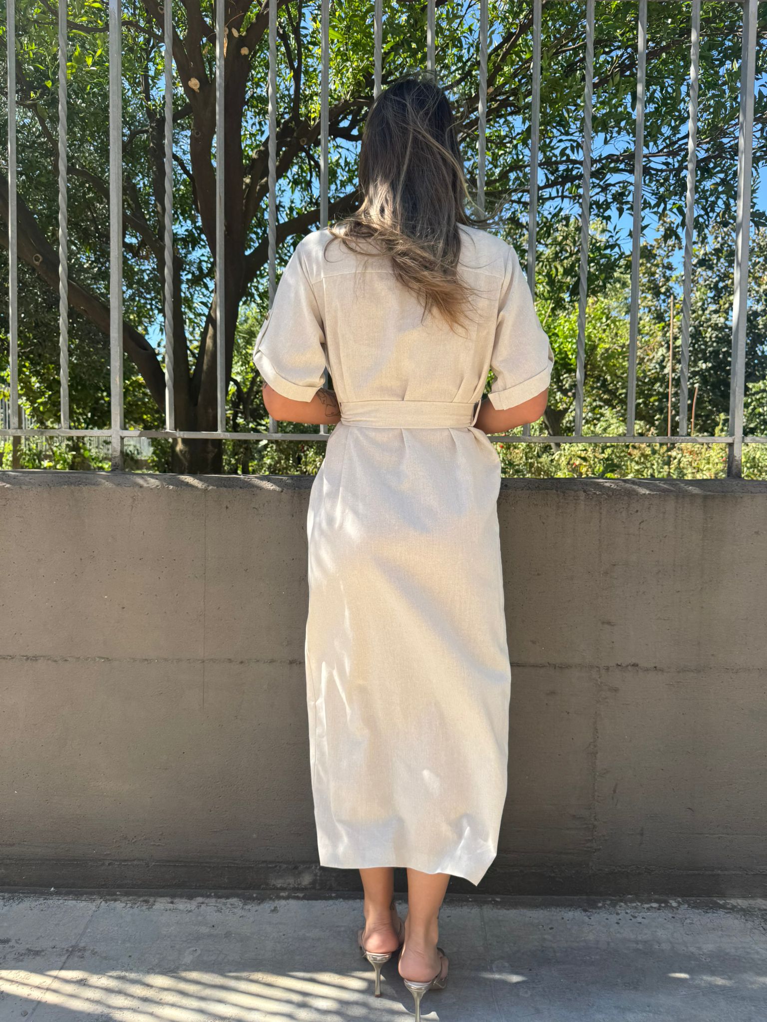 Vestito mezza manica effetto lino con cintura