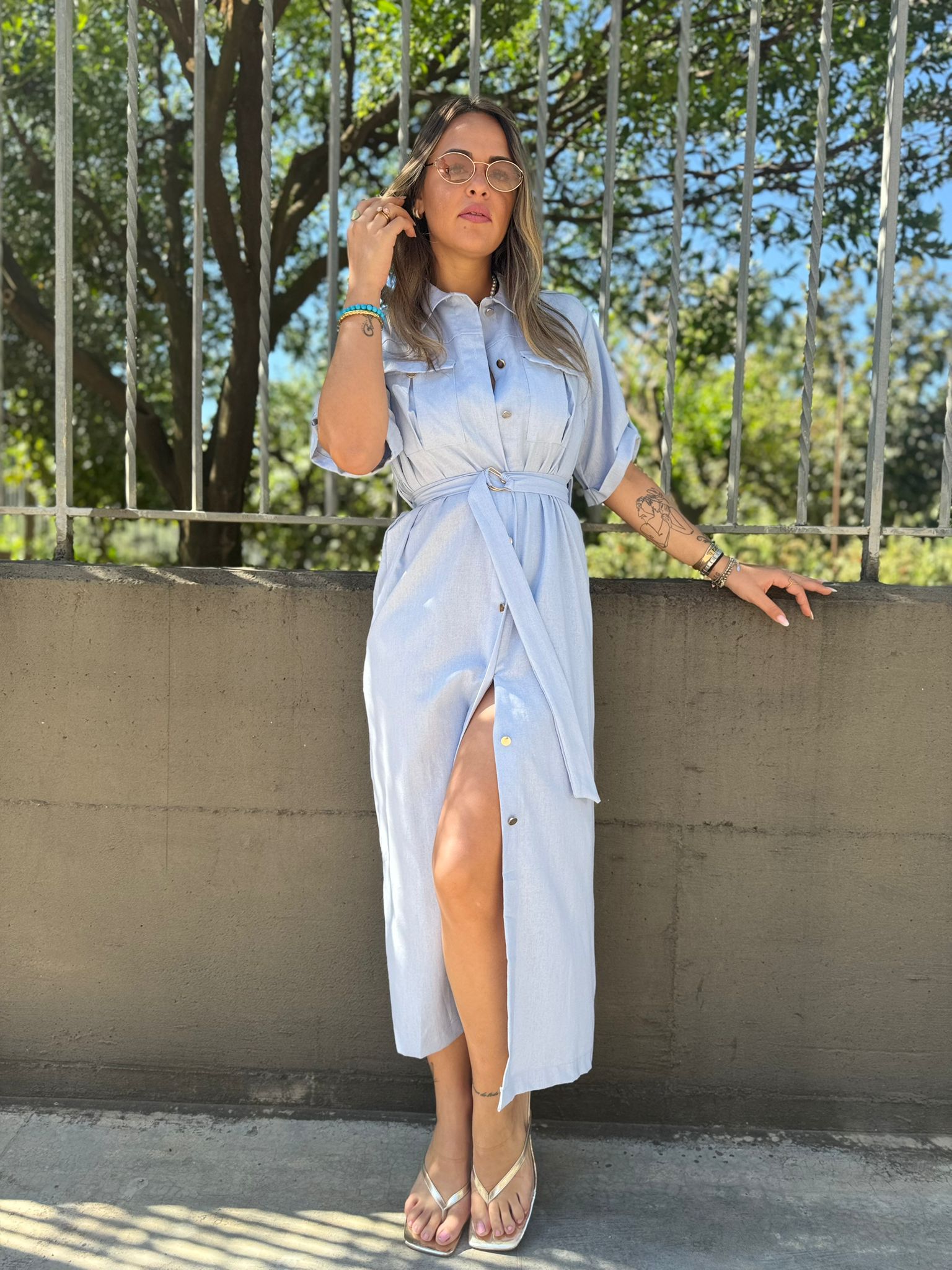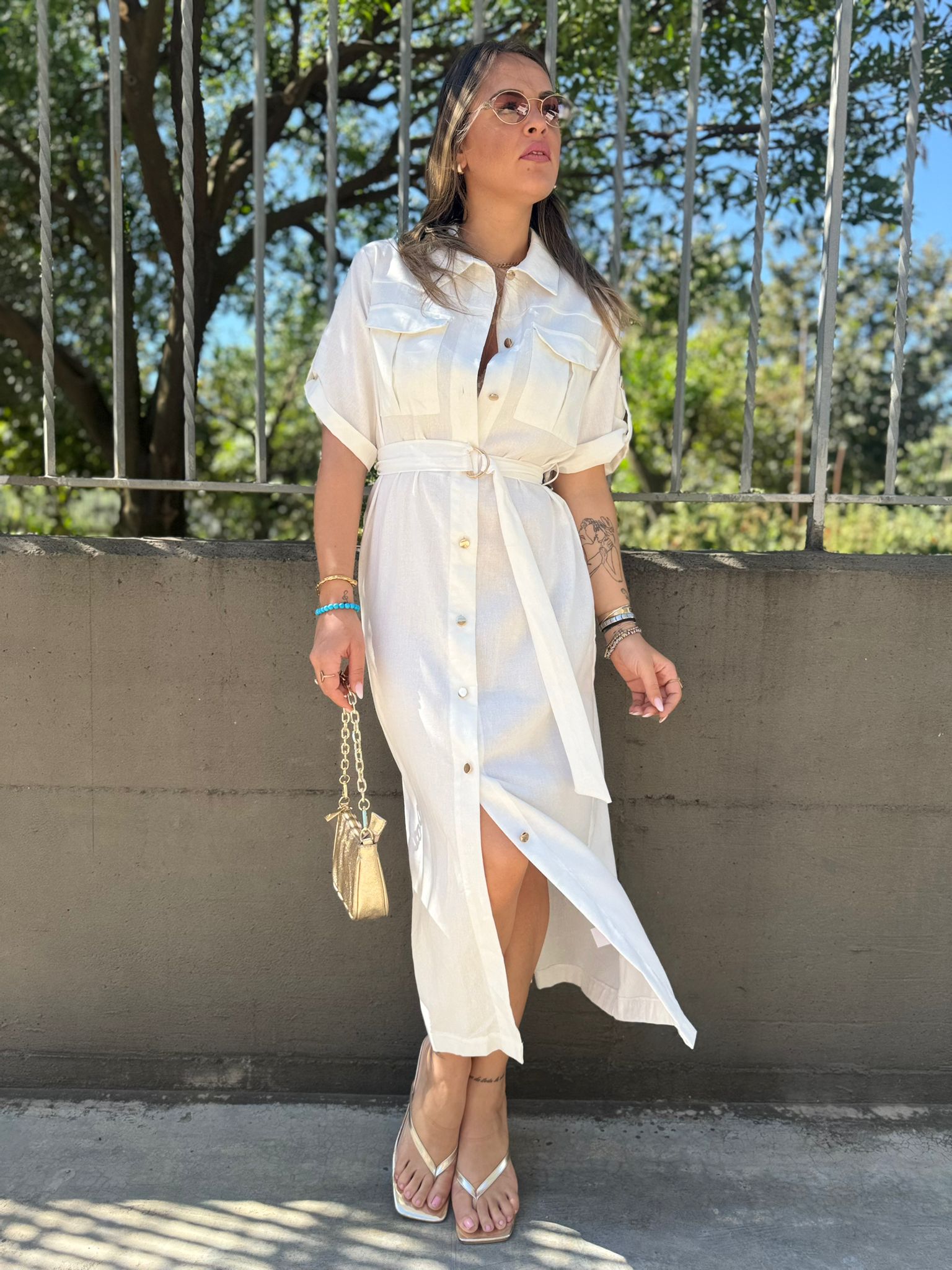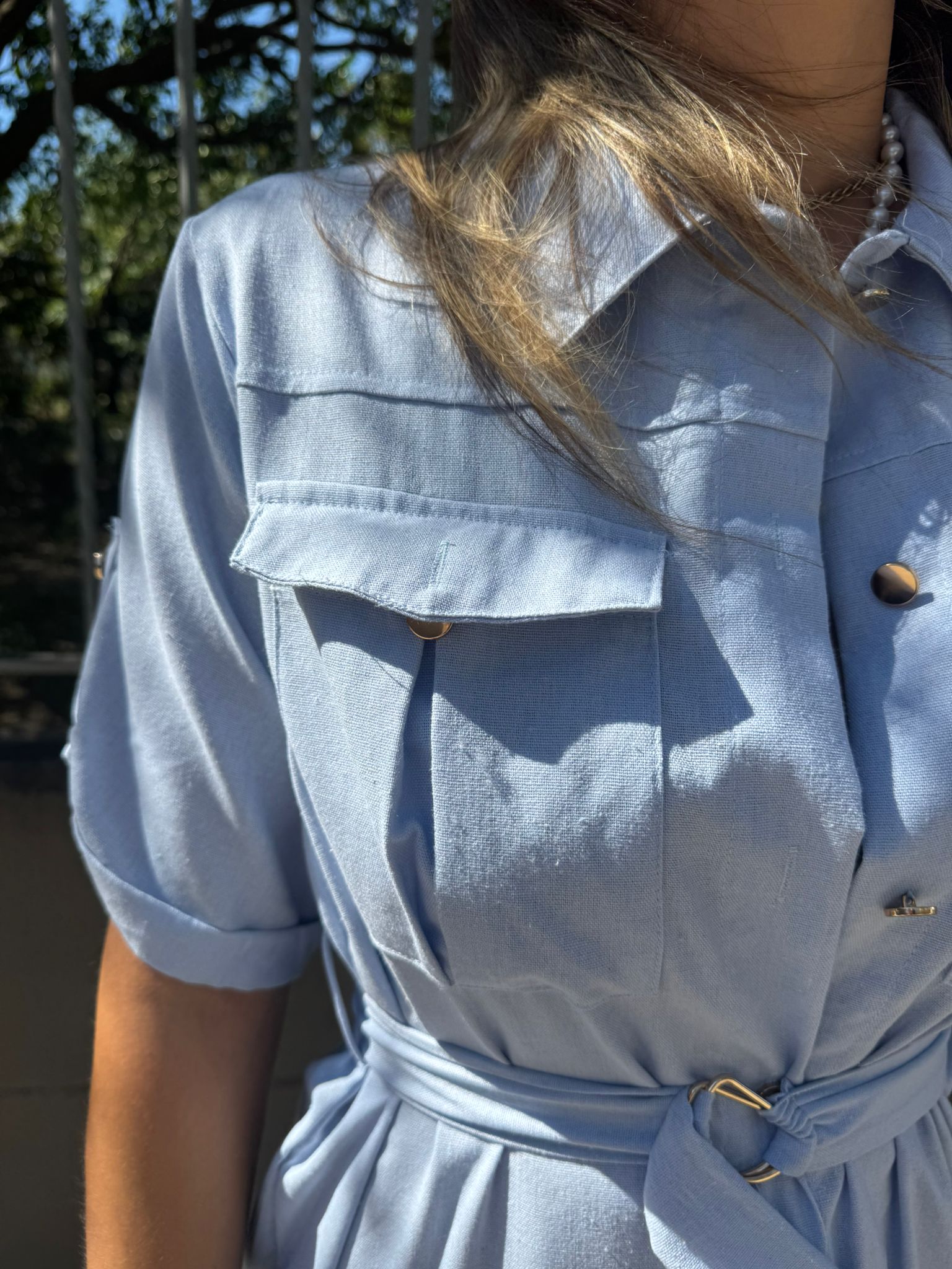 Vestito mezza manica effetto lino con cintura