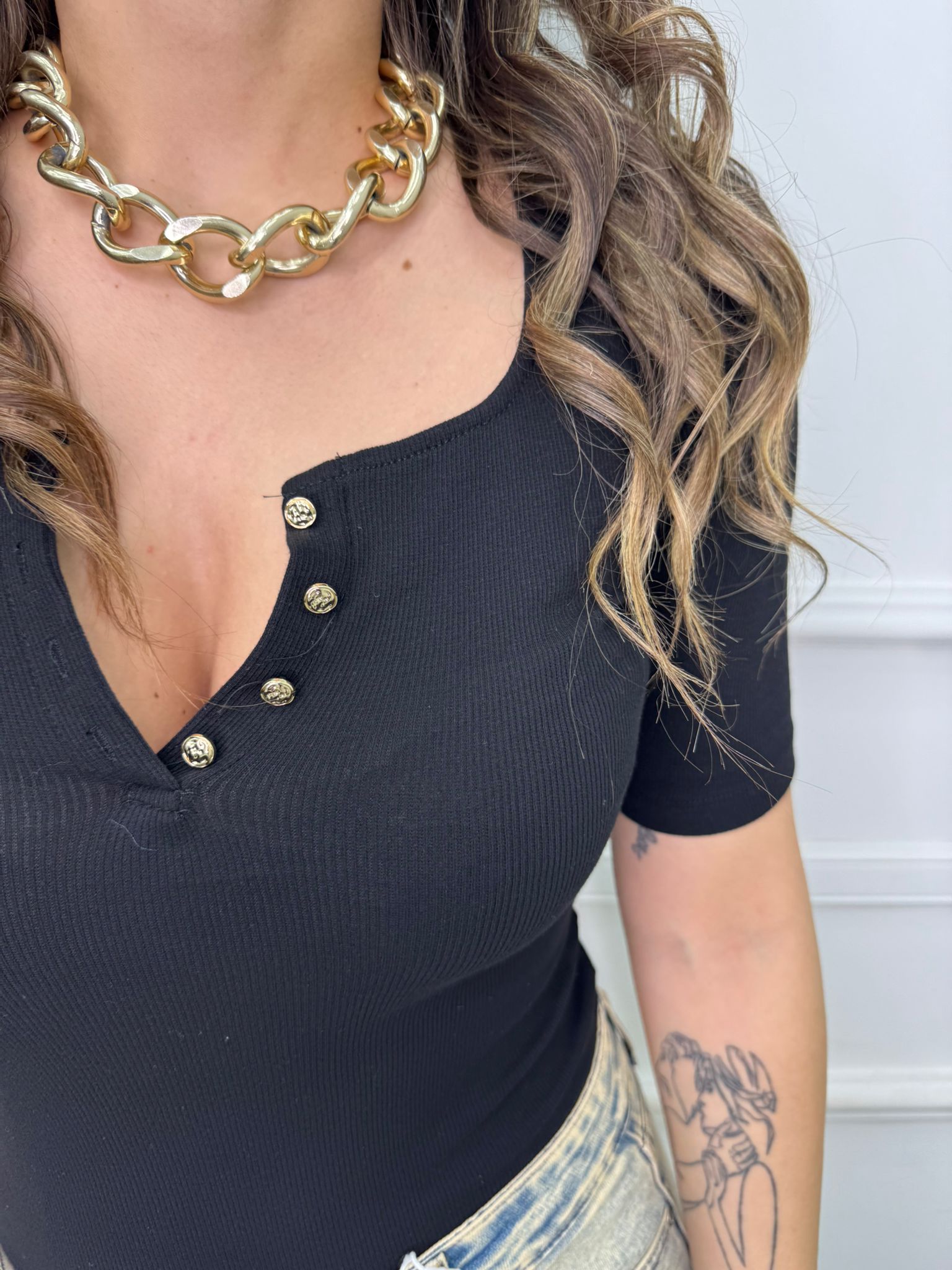 Body a costine mezza manica con bottoni oro