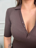 Body a polo in cotone tinta unita