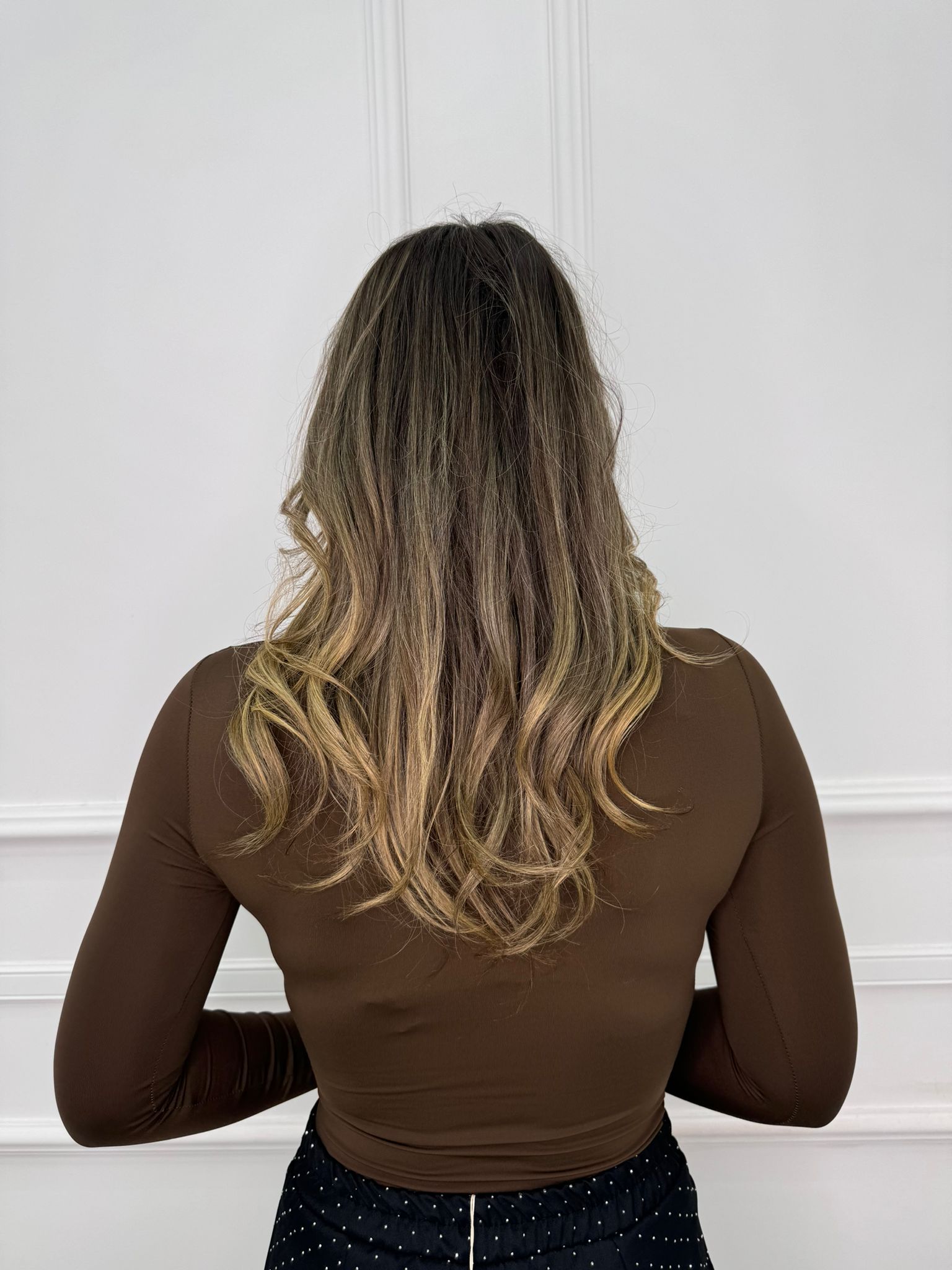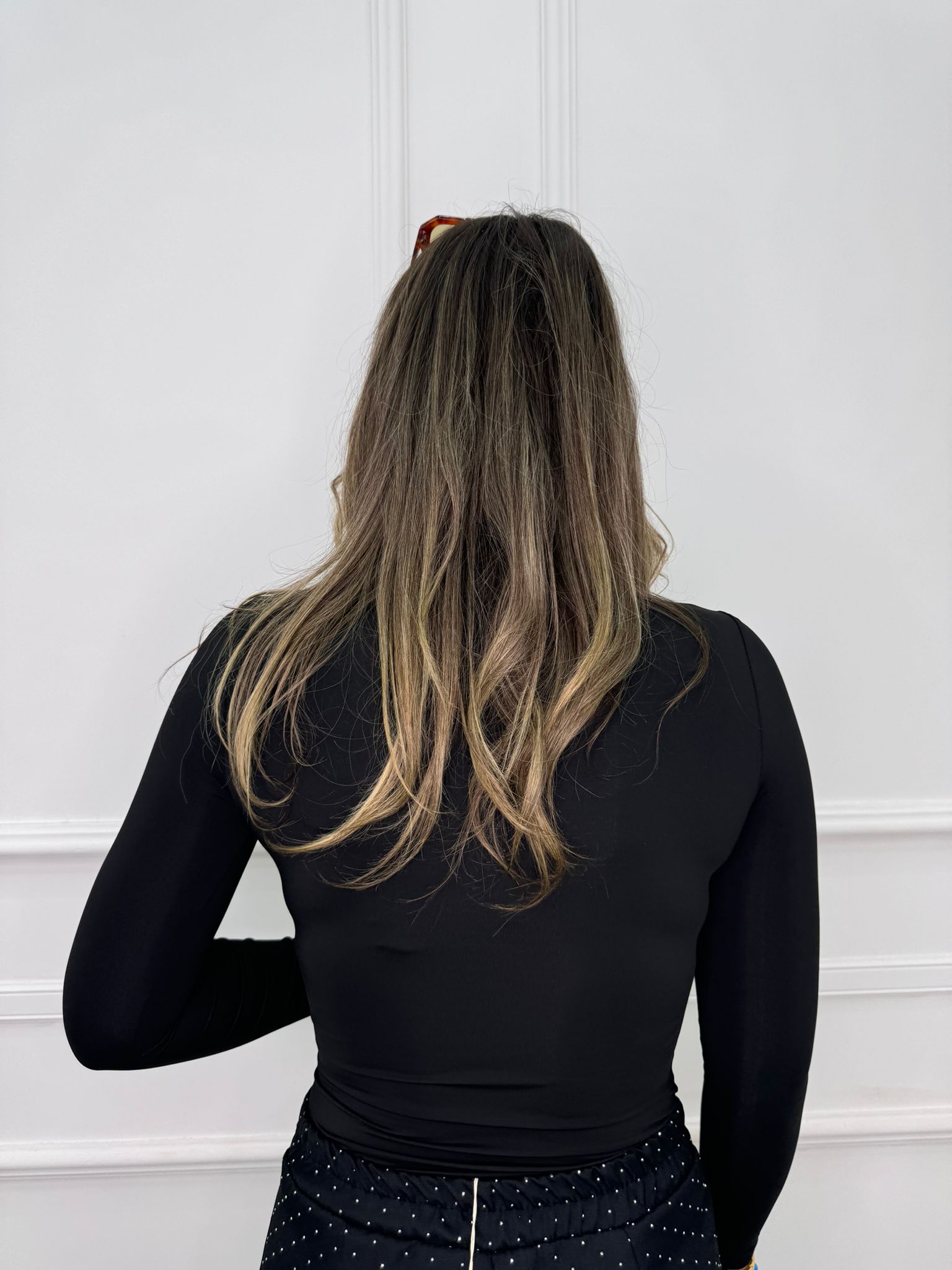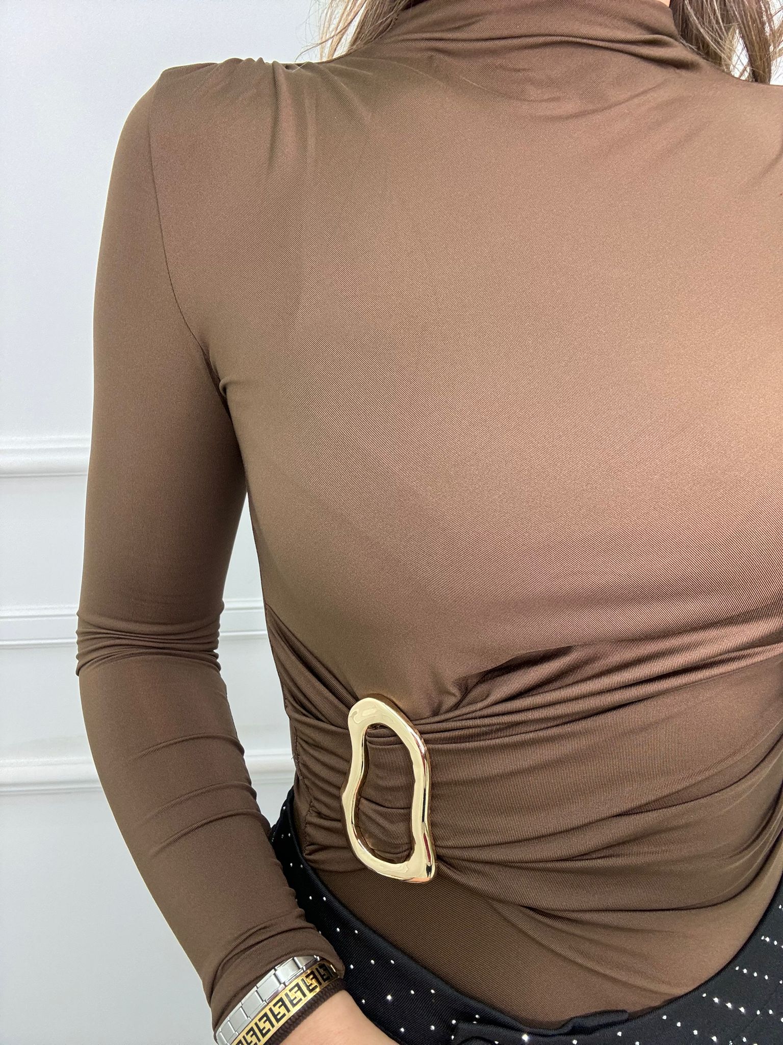 Body in lycra con applicazioni oro