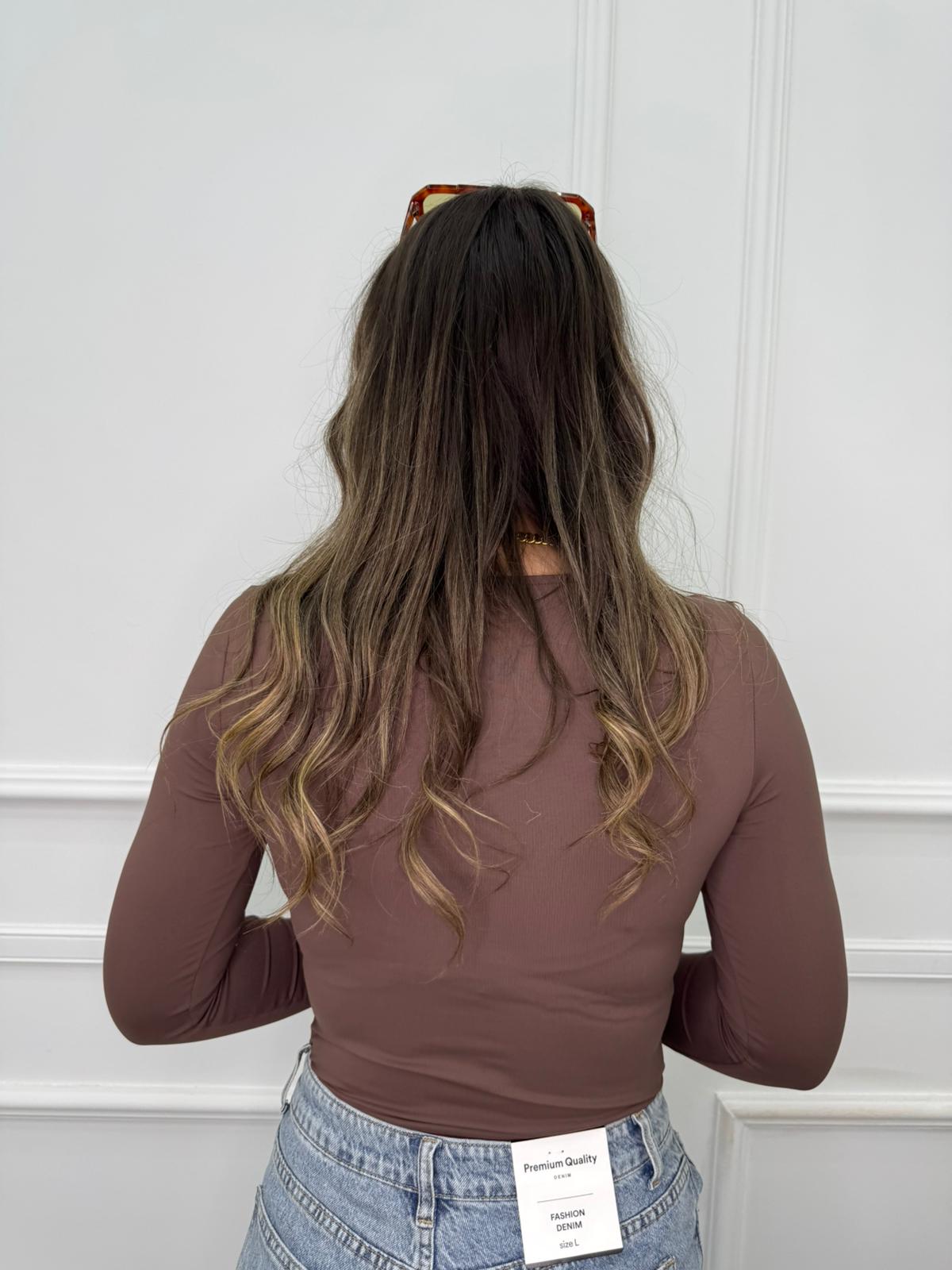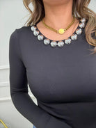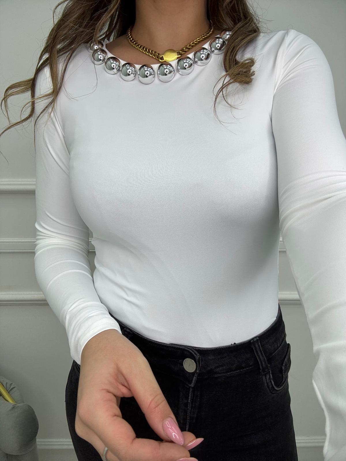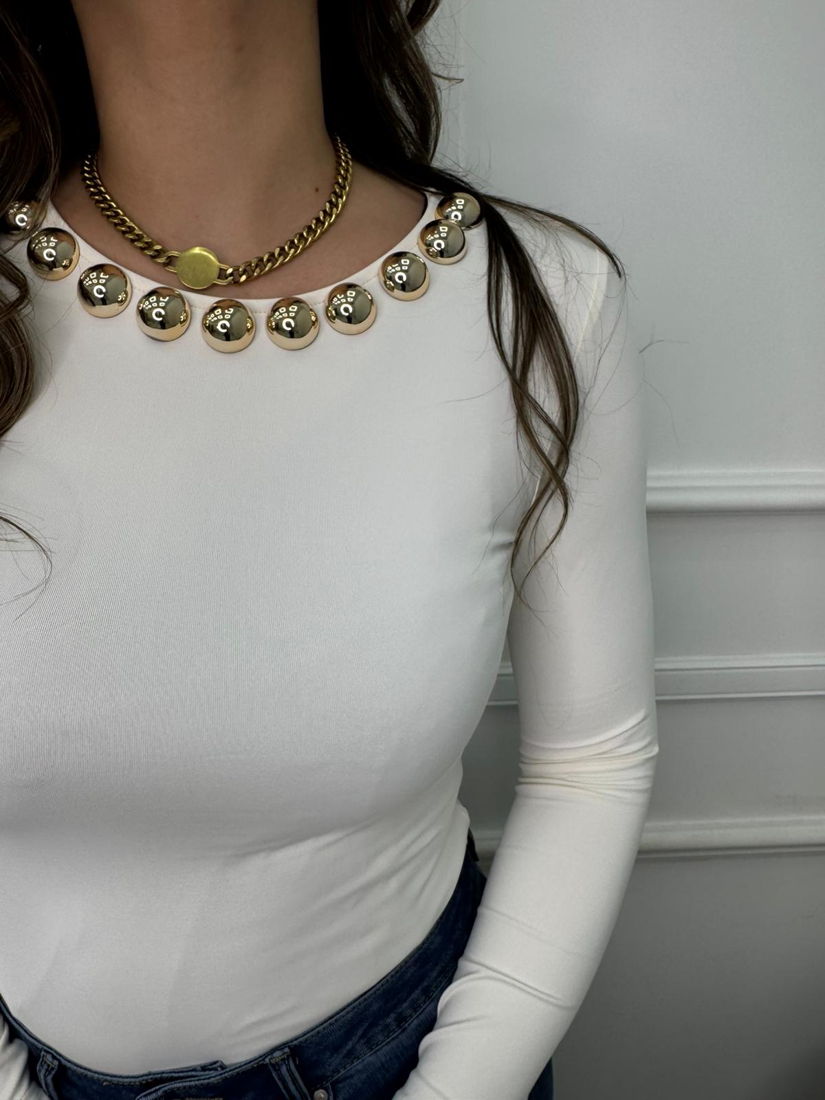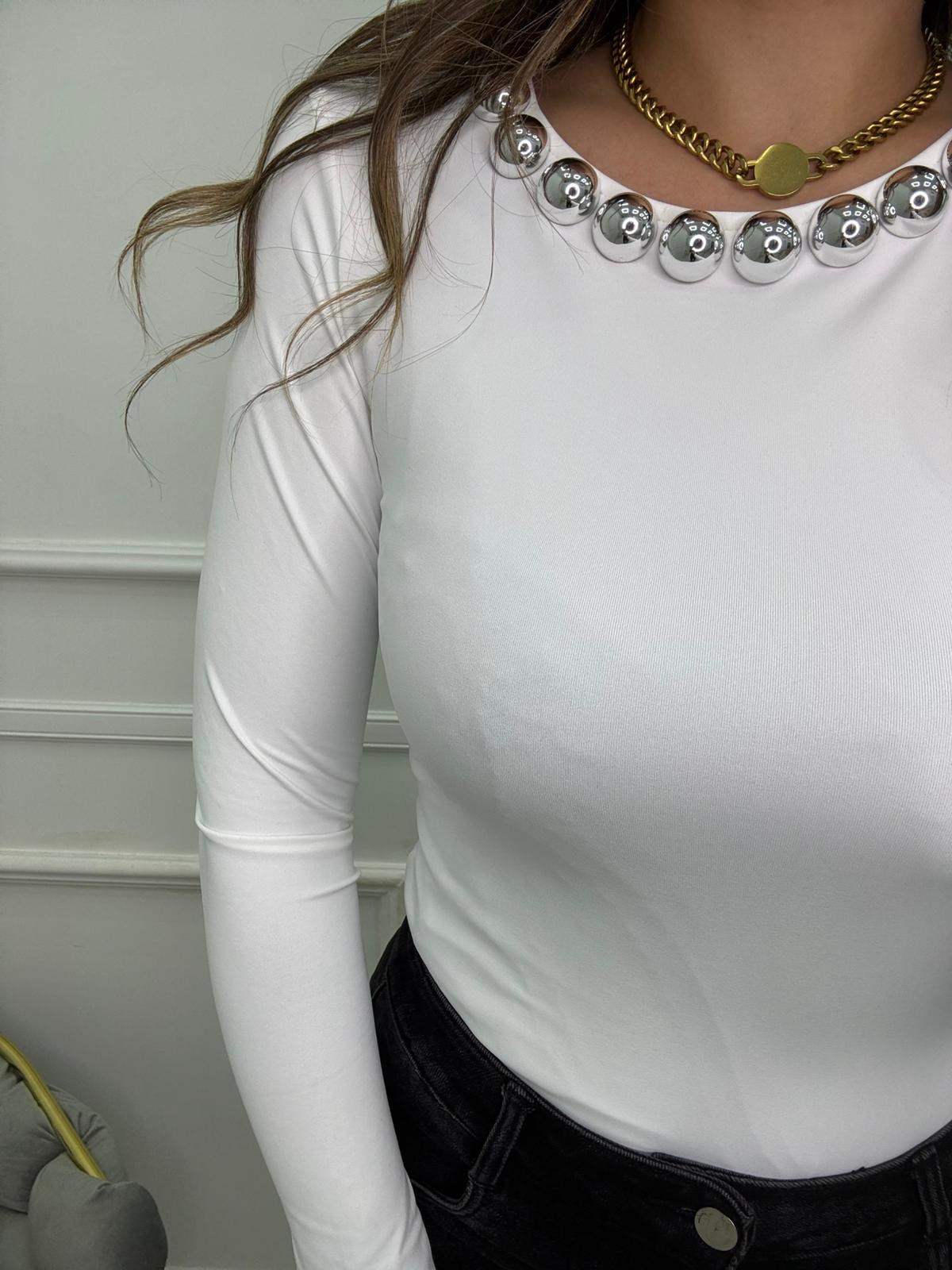 Body in lycra con borchie al collo