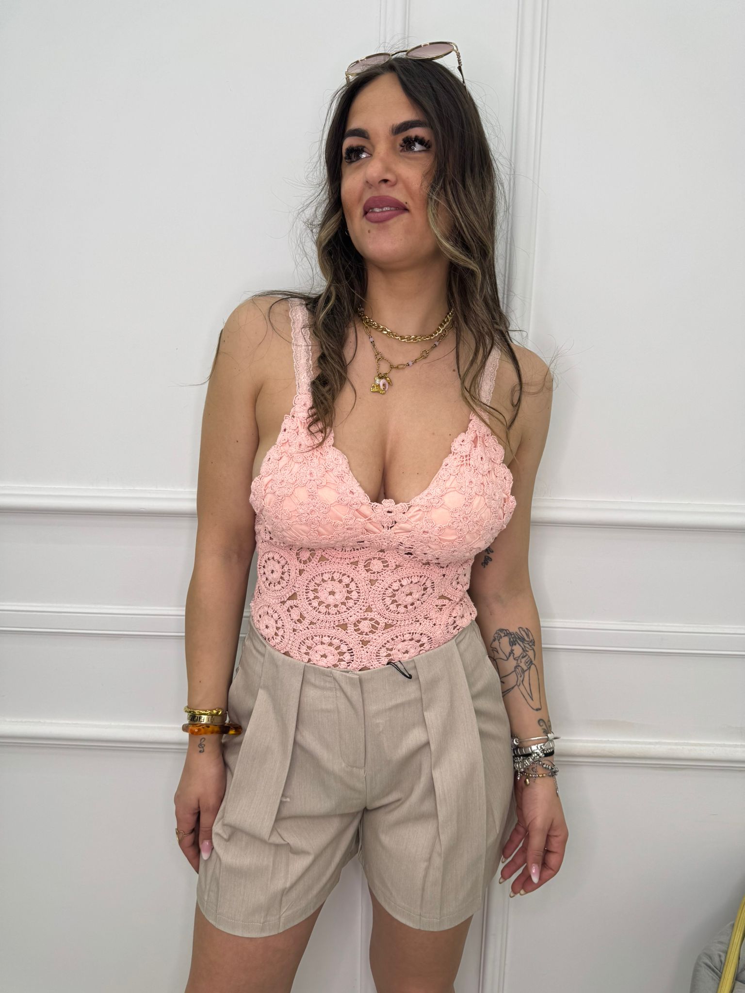 Body manica lunga ricamato