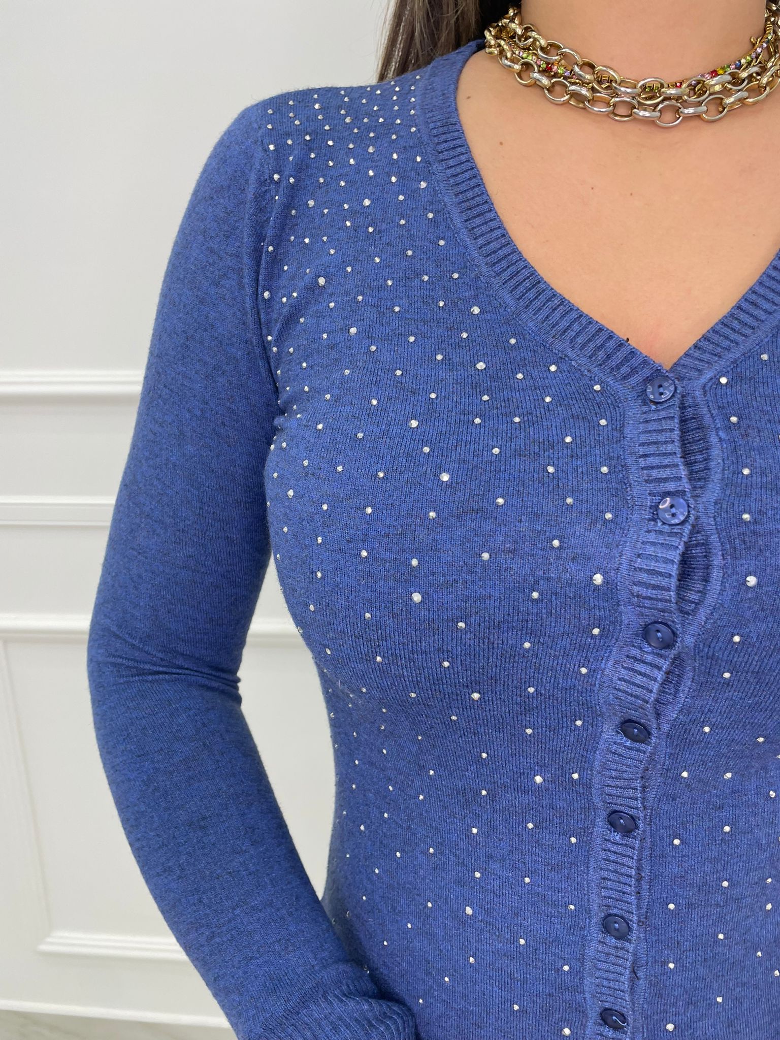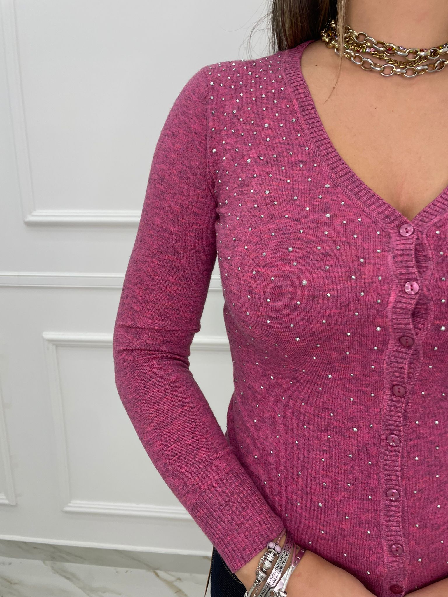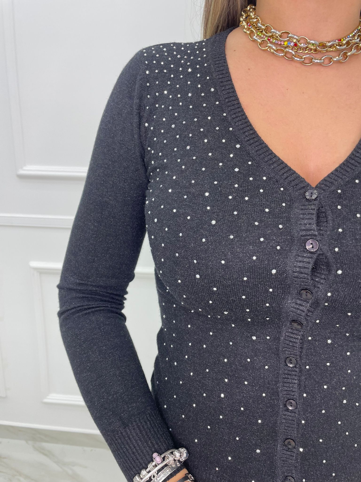 Cardigan scollo a V con brillantini