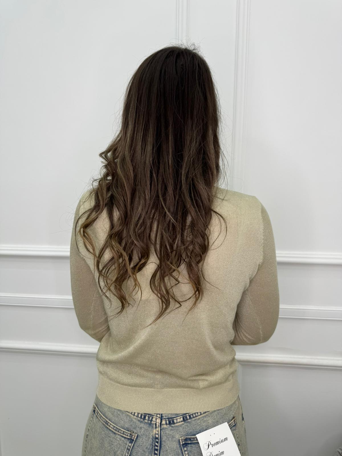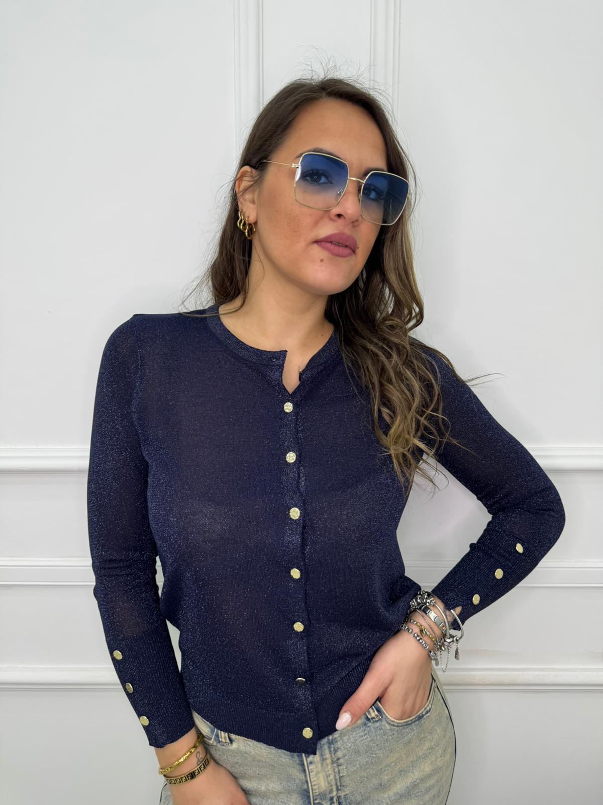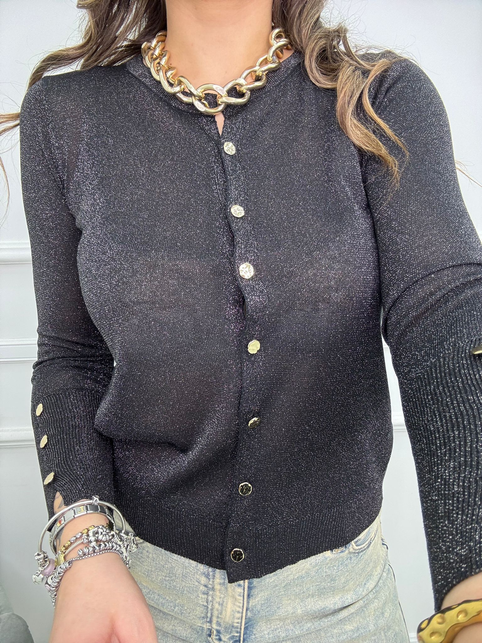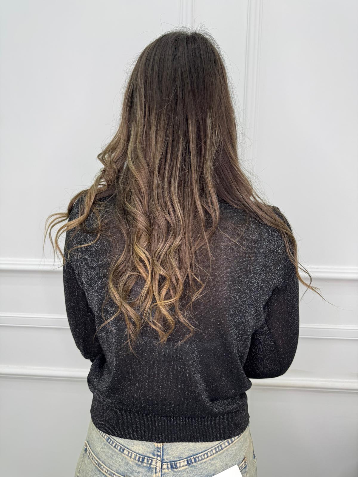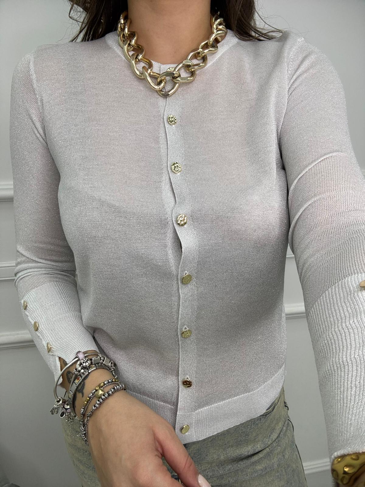 Cardigan velato laminato