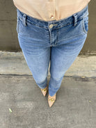 Jeans a zampa lavaggio chiaro con tasca america