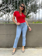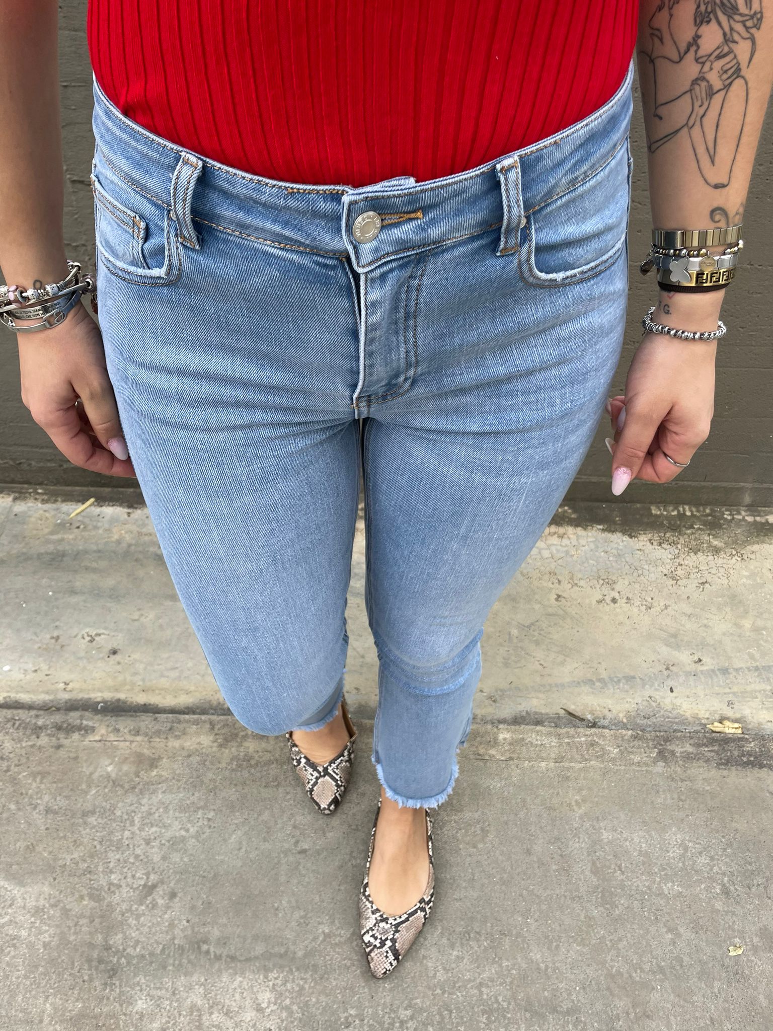 Jeans lavaggio chiaro a zampetta sfrangiato sotto