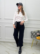 - La modella è una taglia 44, alta 1,79m e indossa la taglia "M"