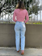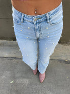 Jeans palazzo lavaggio chiaro con perle