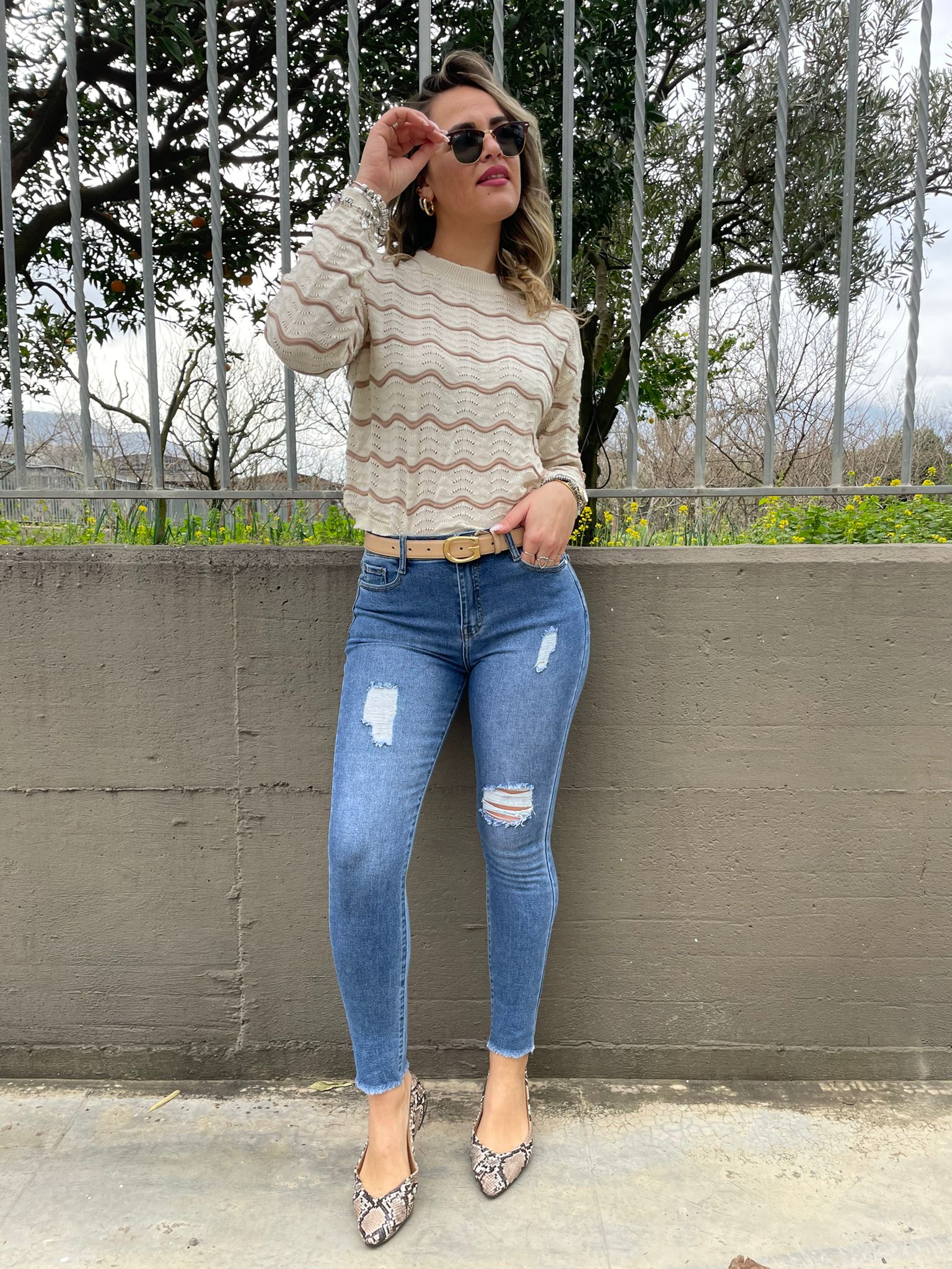 - La modella è una taglia 44, alta 1,79m e indossa la taglia "M"