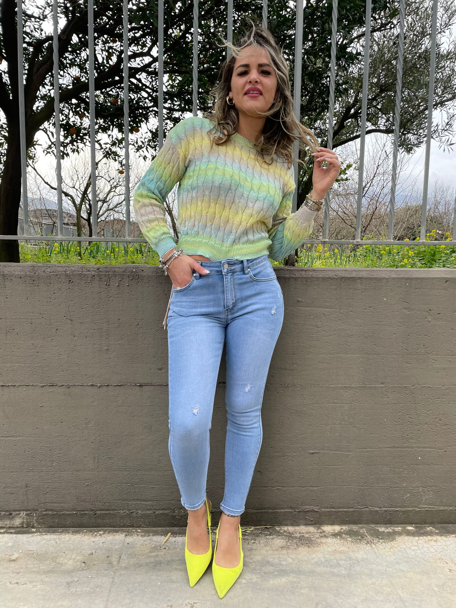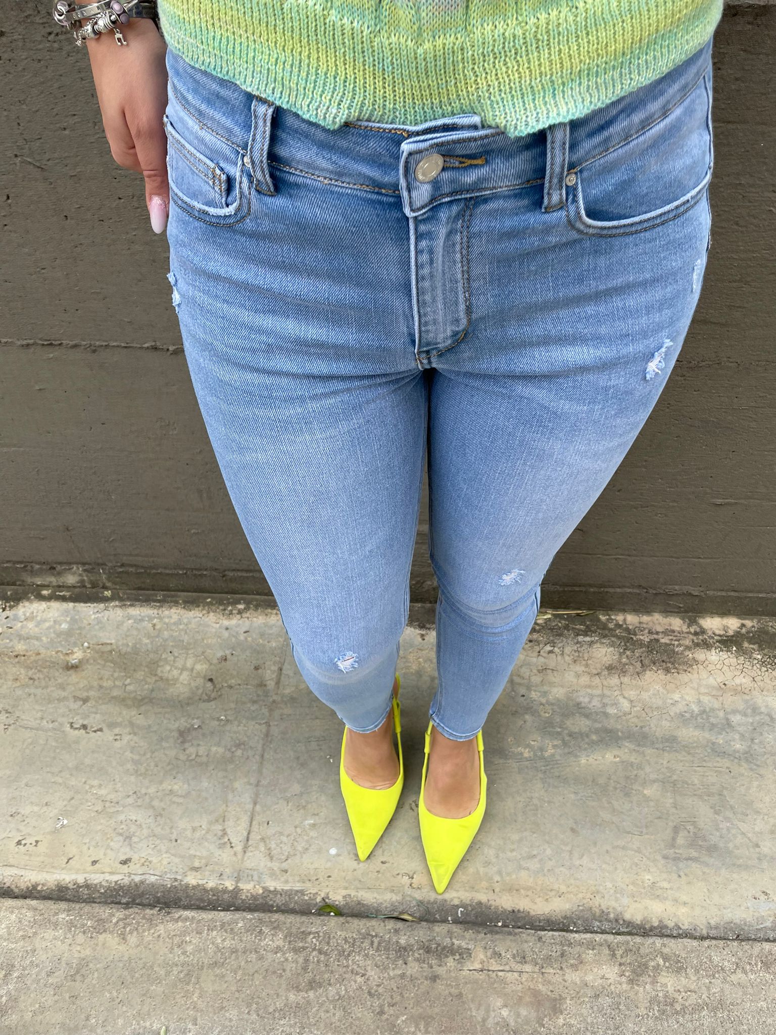 Jeans skinny lavaggio chiaro con piccoli strappi