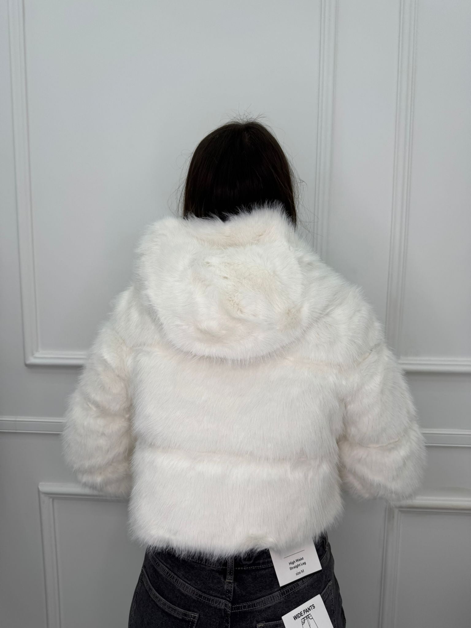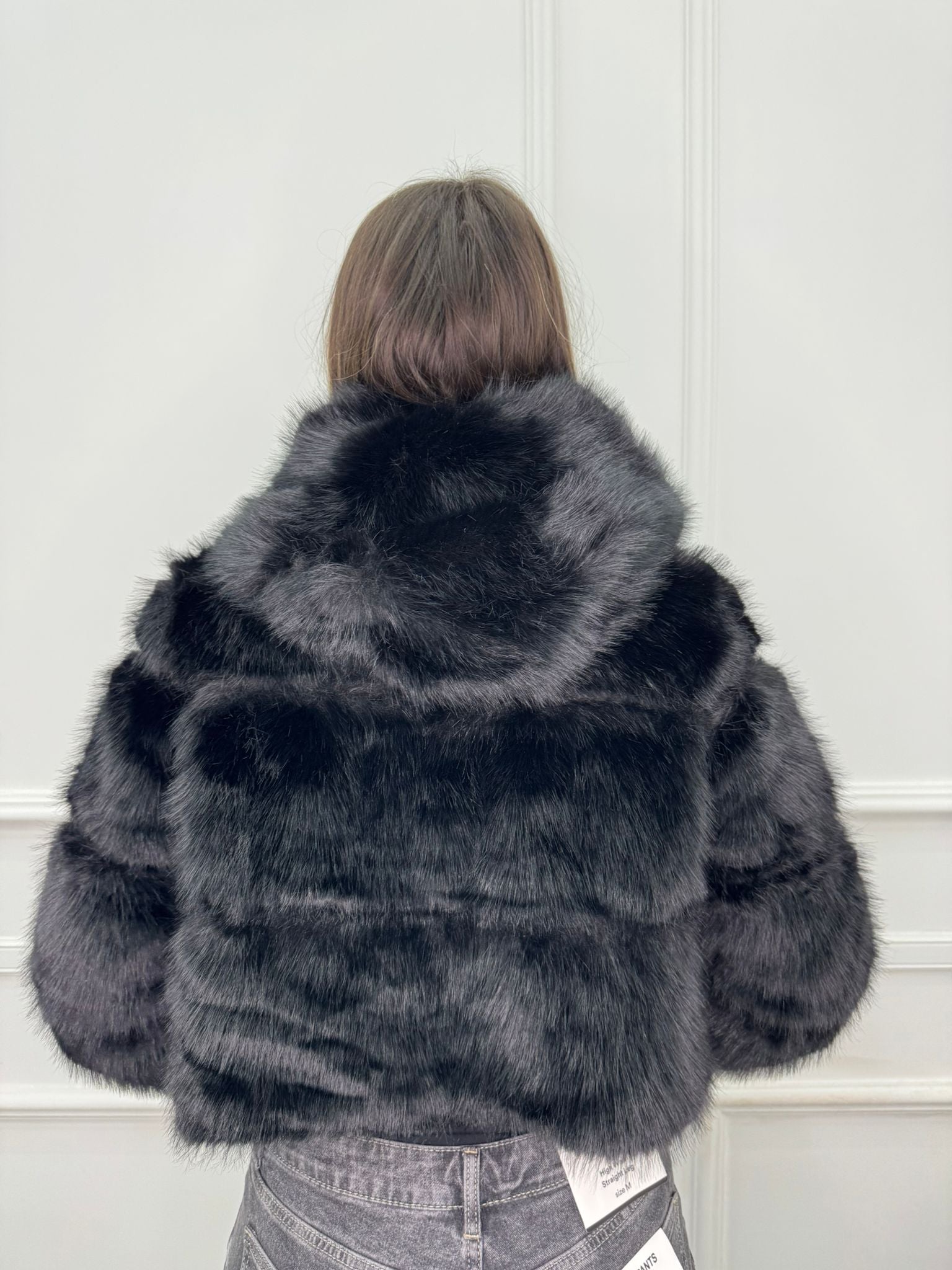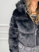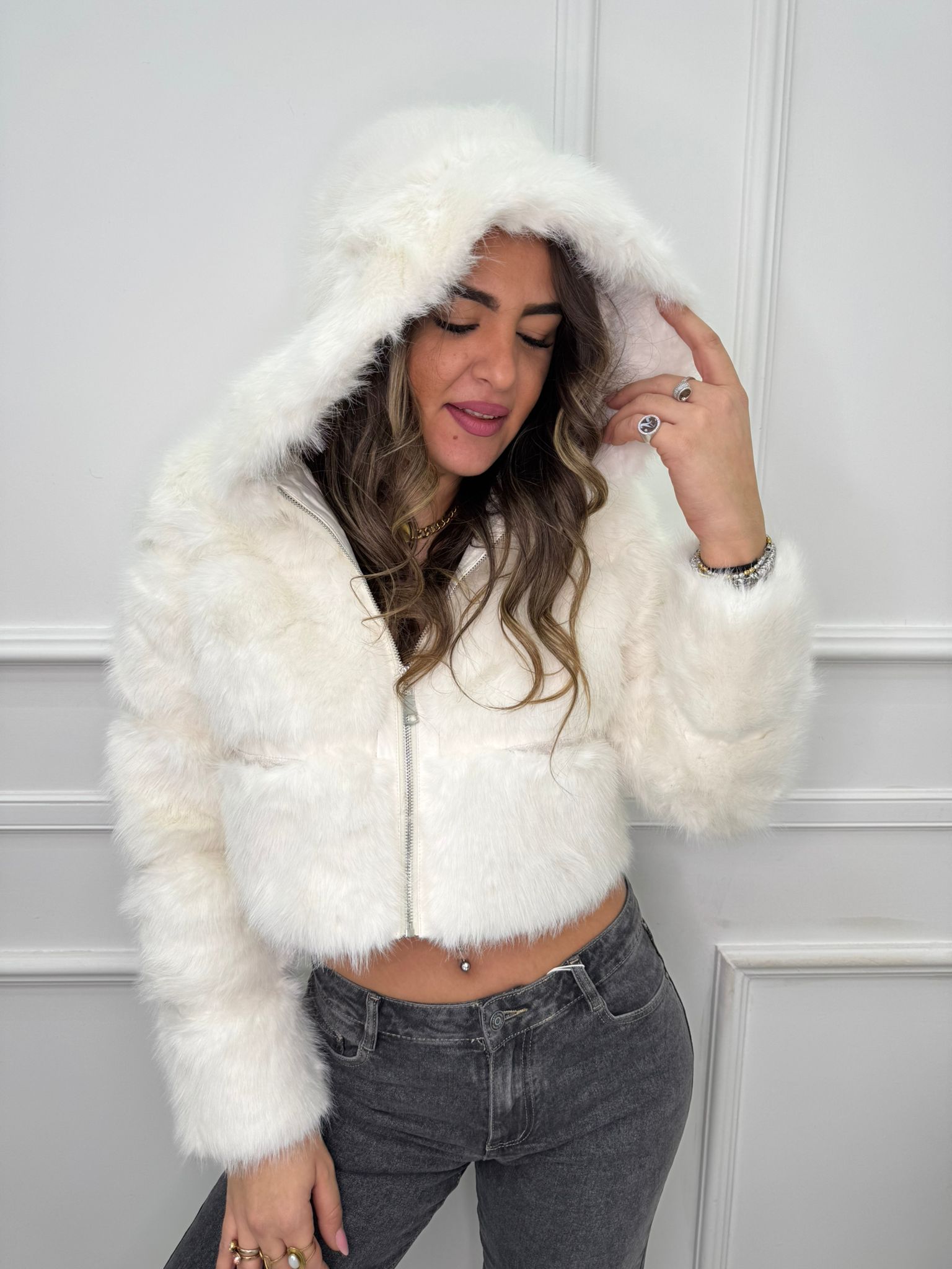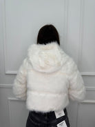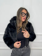 Pelliccia crop tinta unita con zip e cappuccio