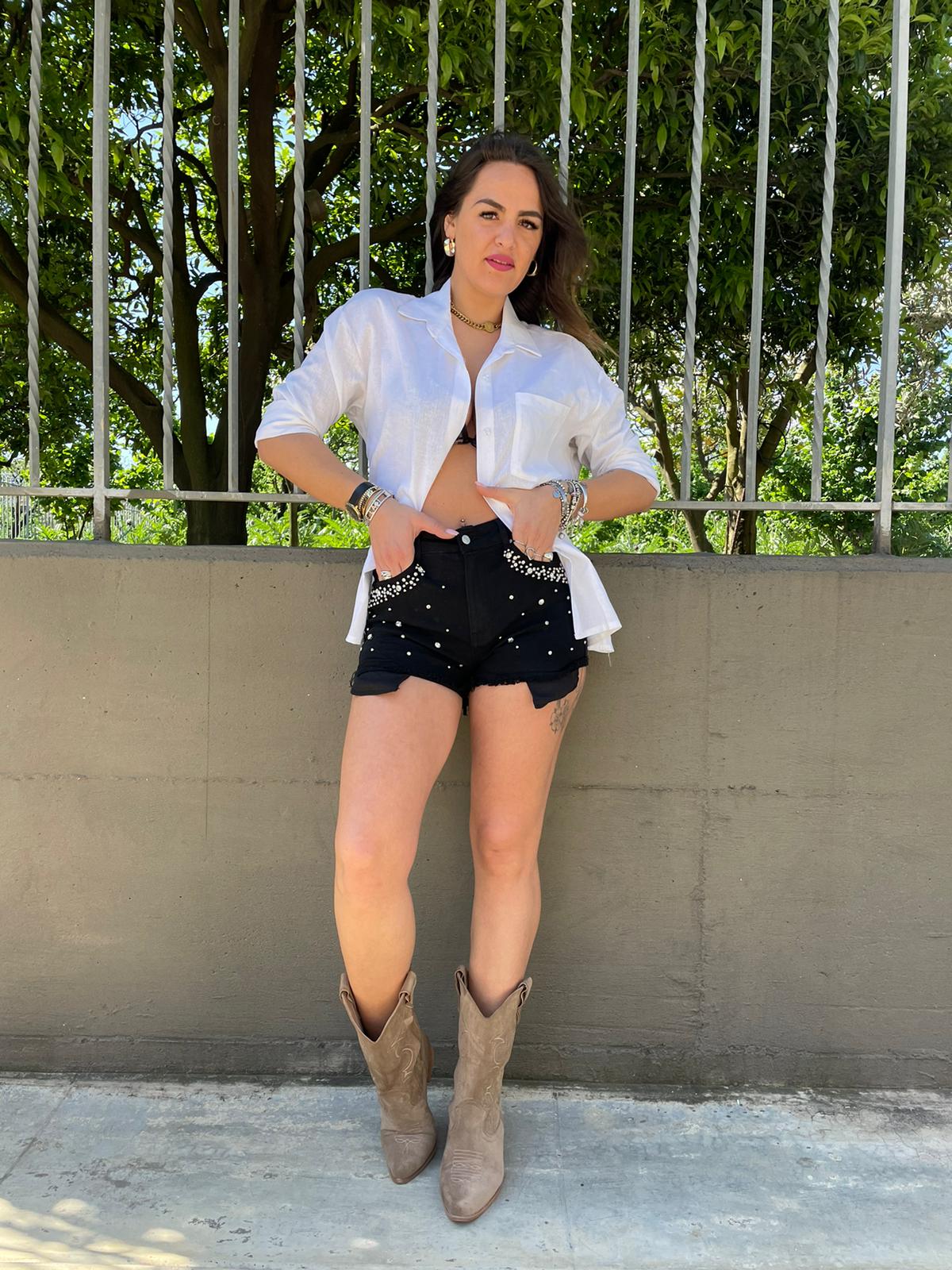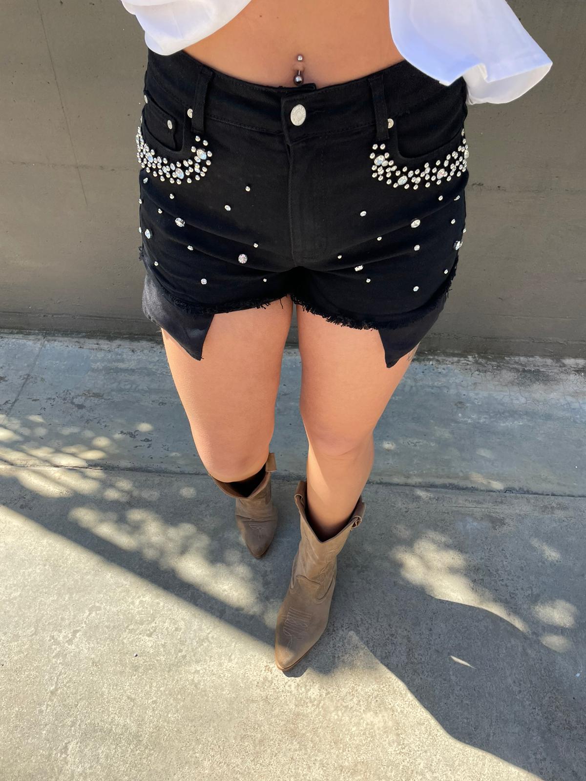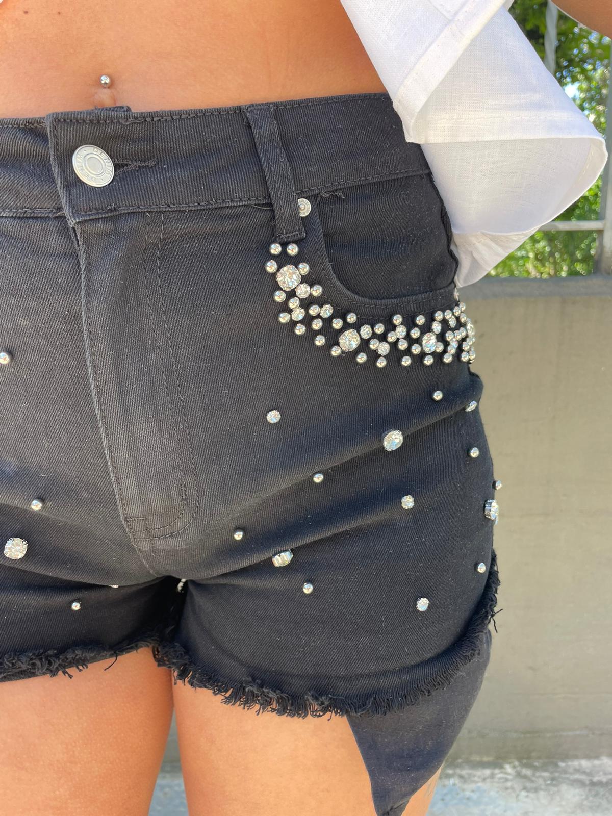 Shorts di jeans nero con swarovski