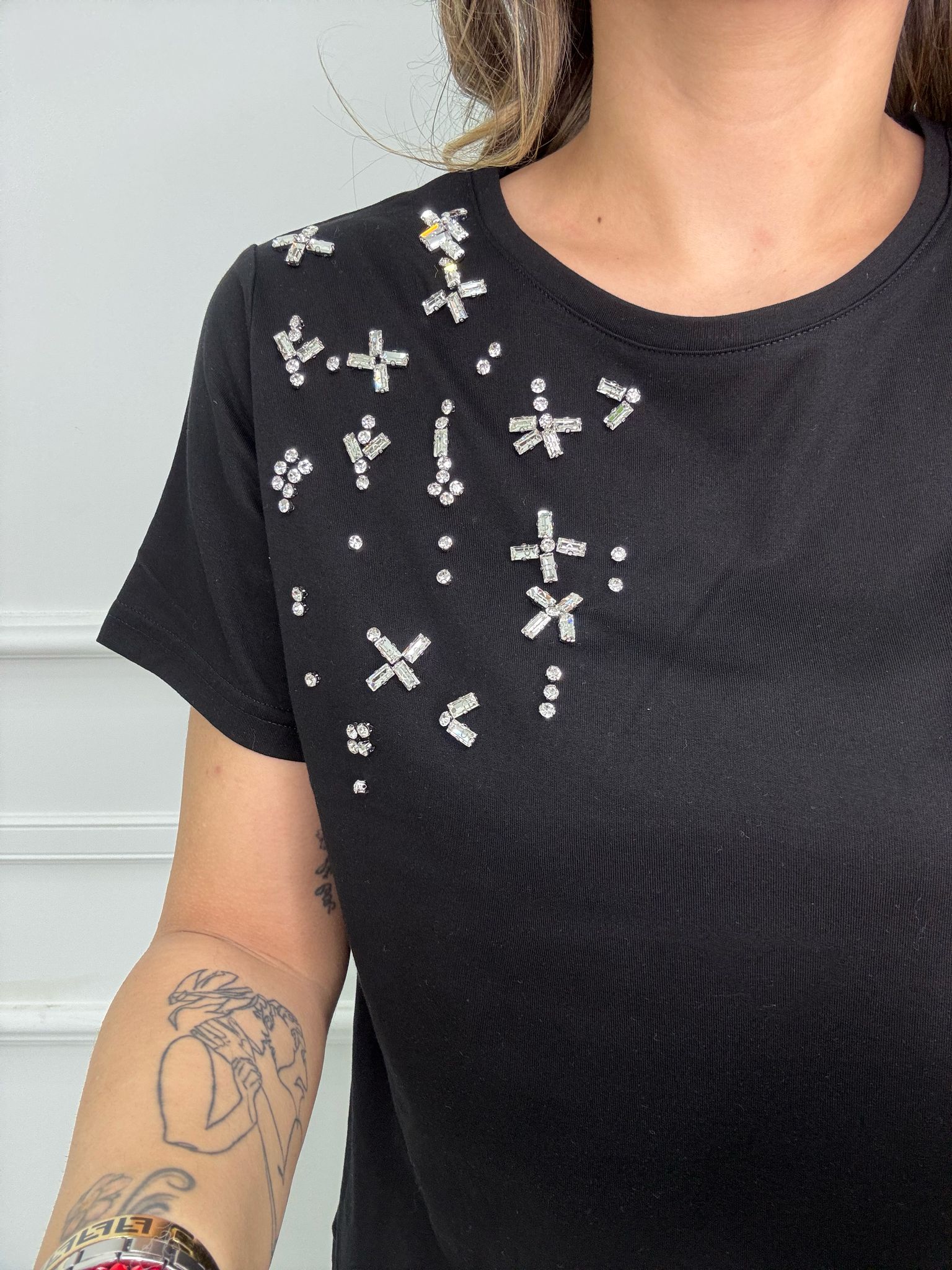 T-shirt con applicazioni alla spalla